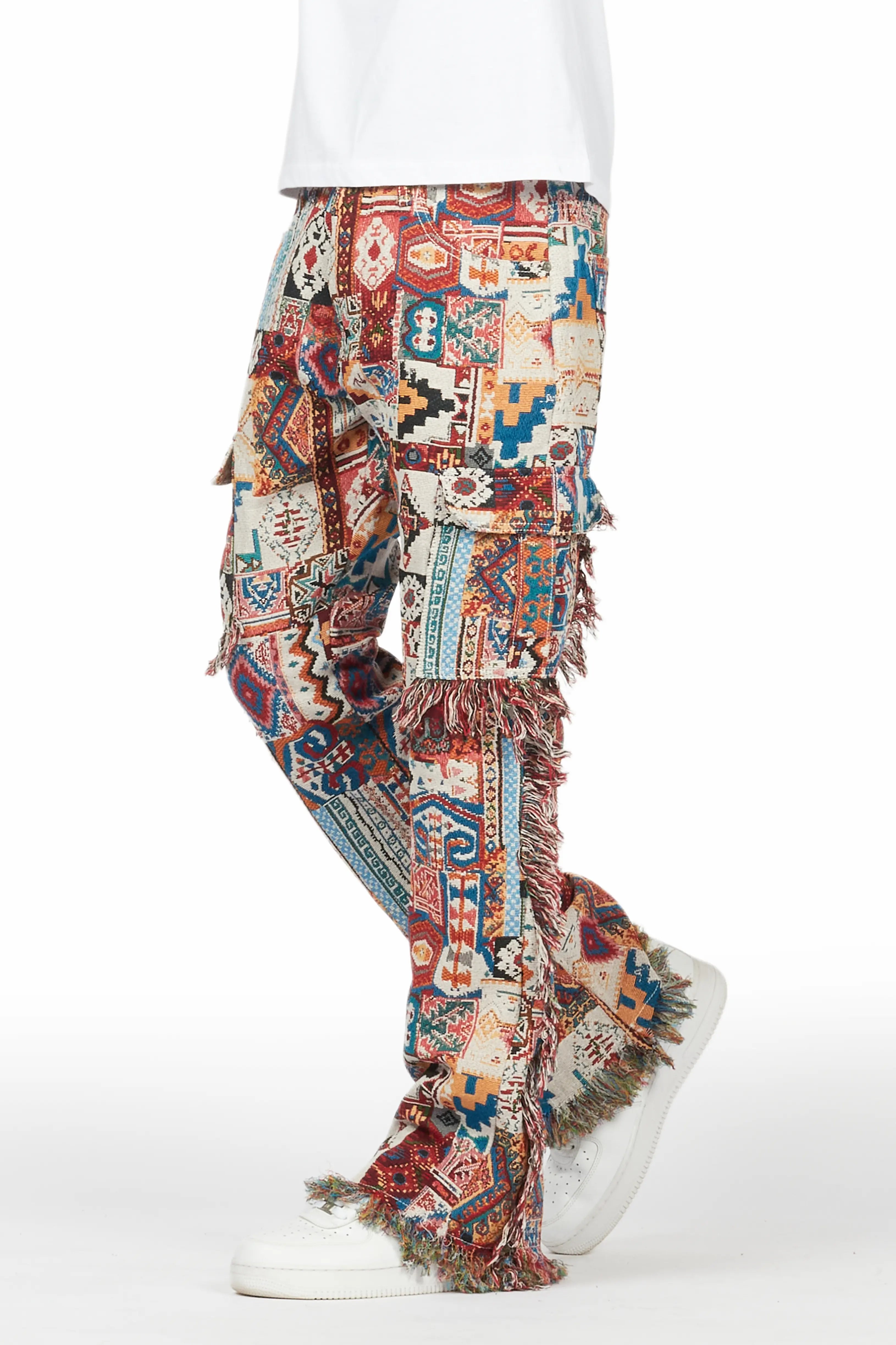 Tayami Tapestry Blue Cargo Stacked Flare Jean