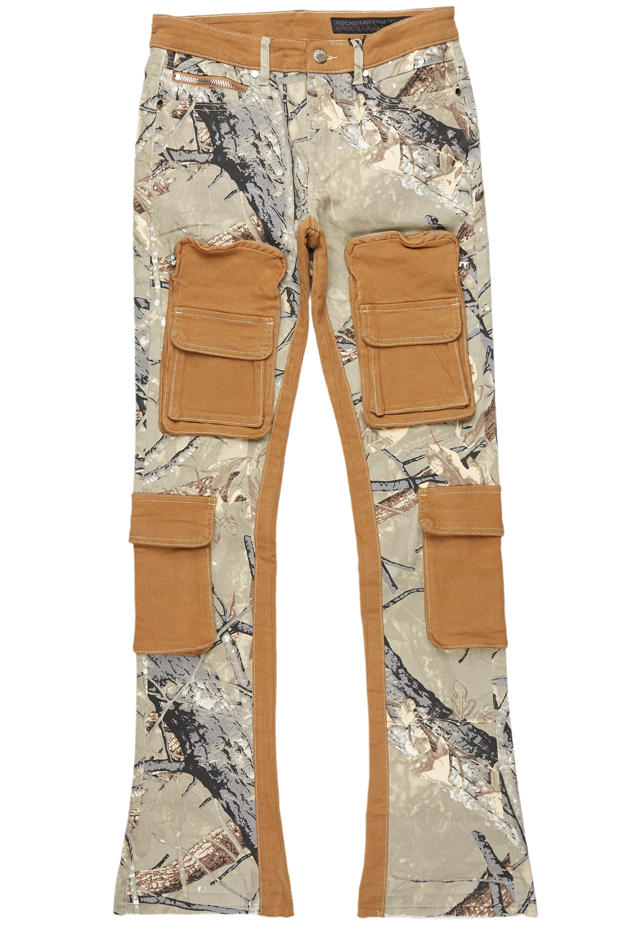 Helios Beige Patchwork Stacked Flare Jean