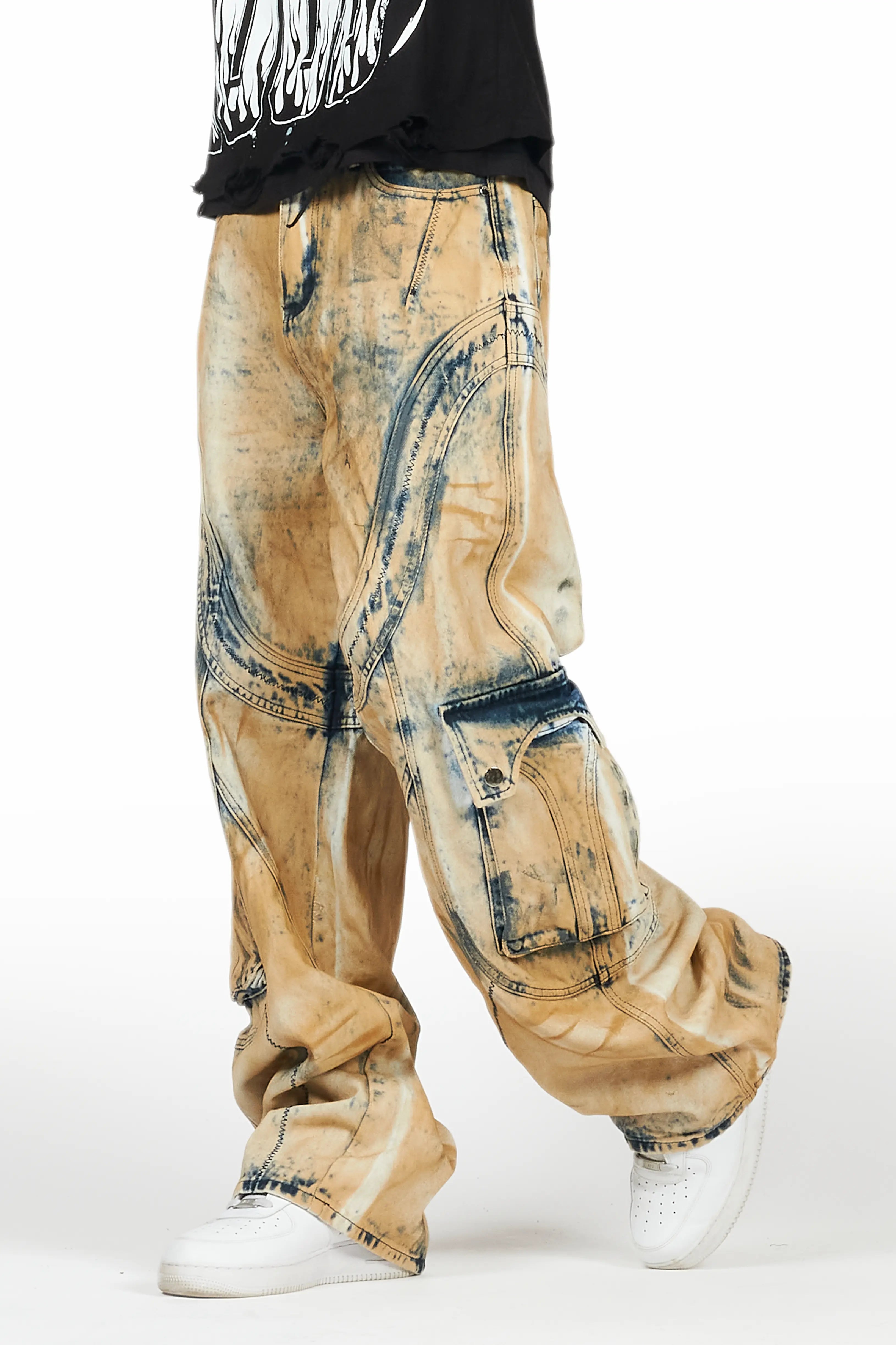 Gabin Beige Long Sleeve T-Shirt/Stacked Flare Cargo Jean Bundle