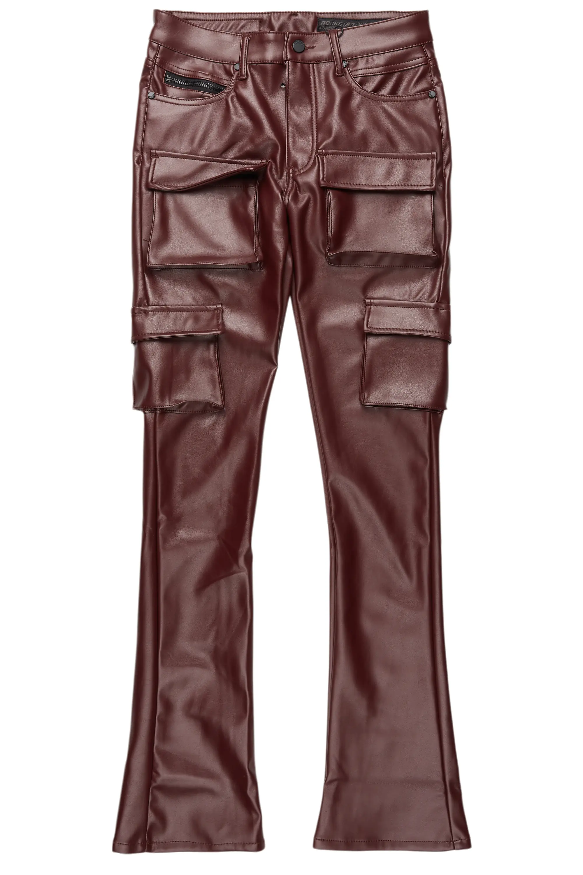 Kap Burgundy Stacked Flare Faux Leather Jean