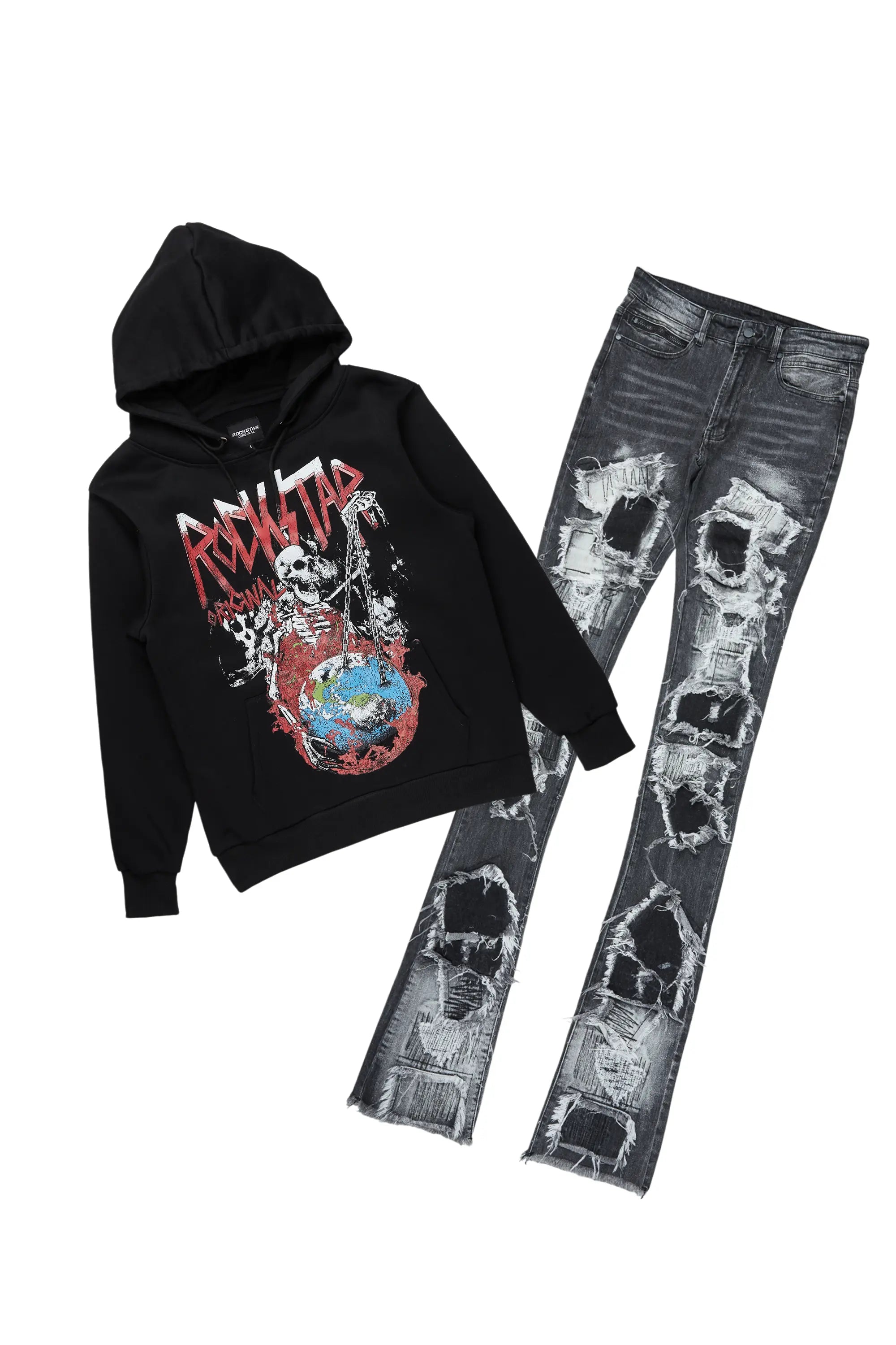 Grill Black Hoodie/Stacked Jean Bundle