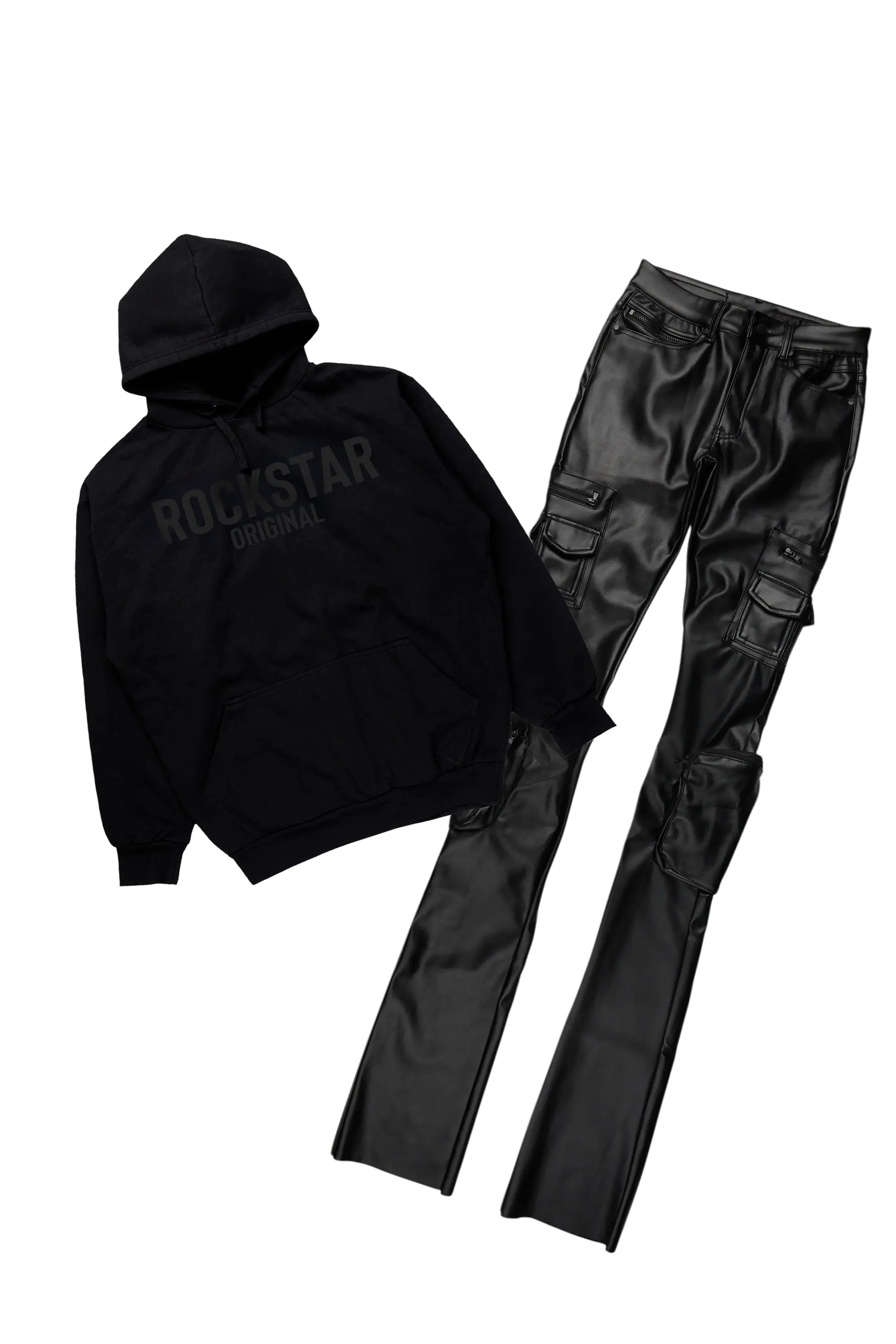 Darken Black Hoodie & Kap Stacked Flare PU Jean Bundle