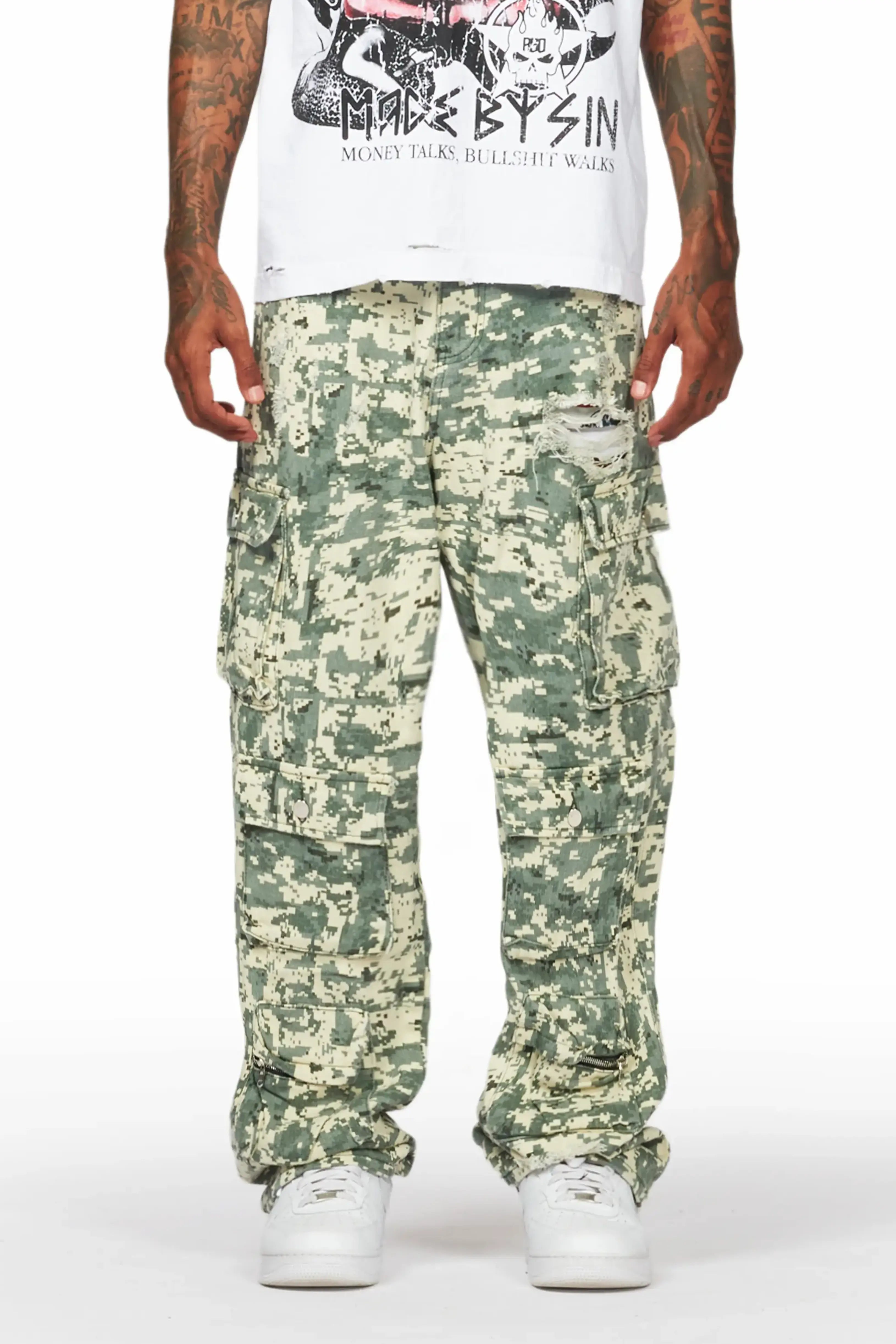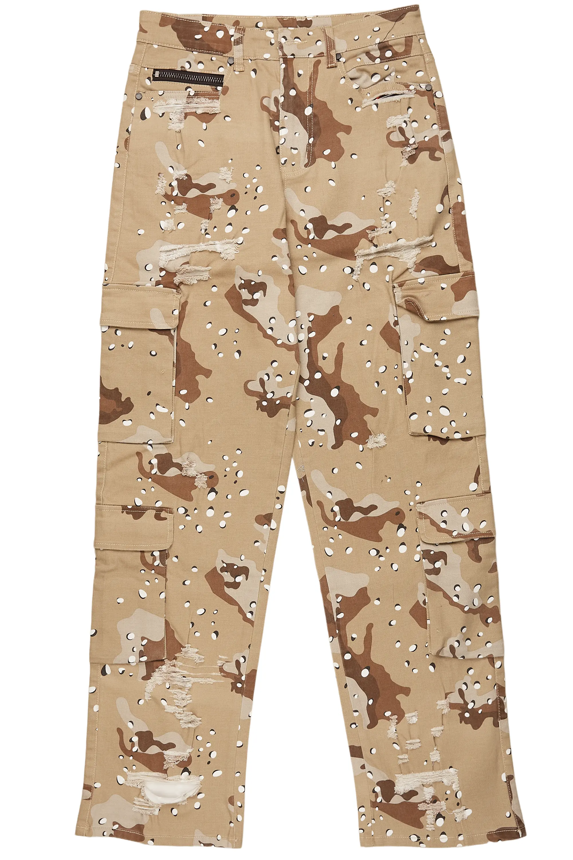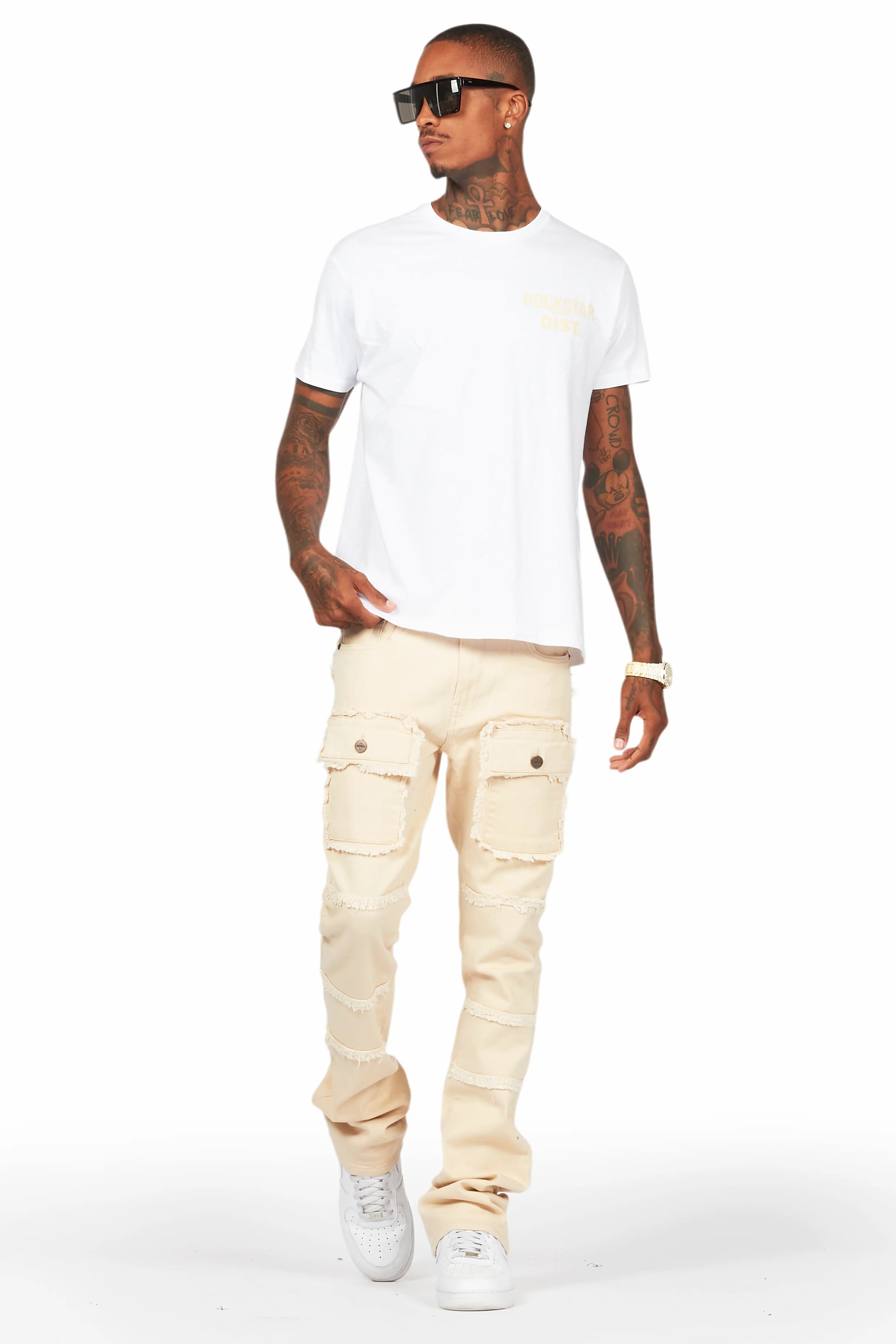 Lake White/Beige T-Shirt/Stacked Flare Cargo Jean Bundle