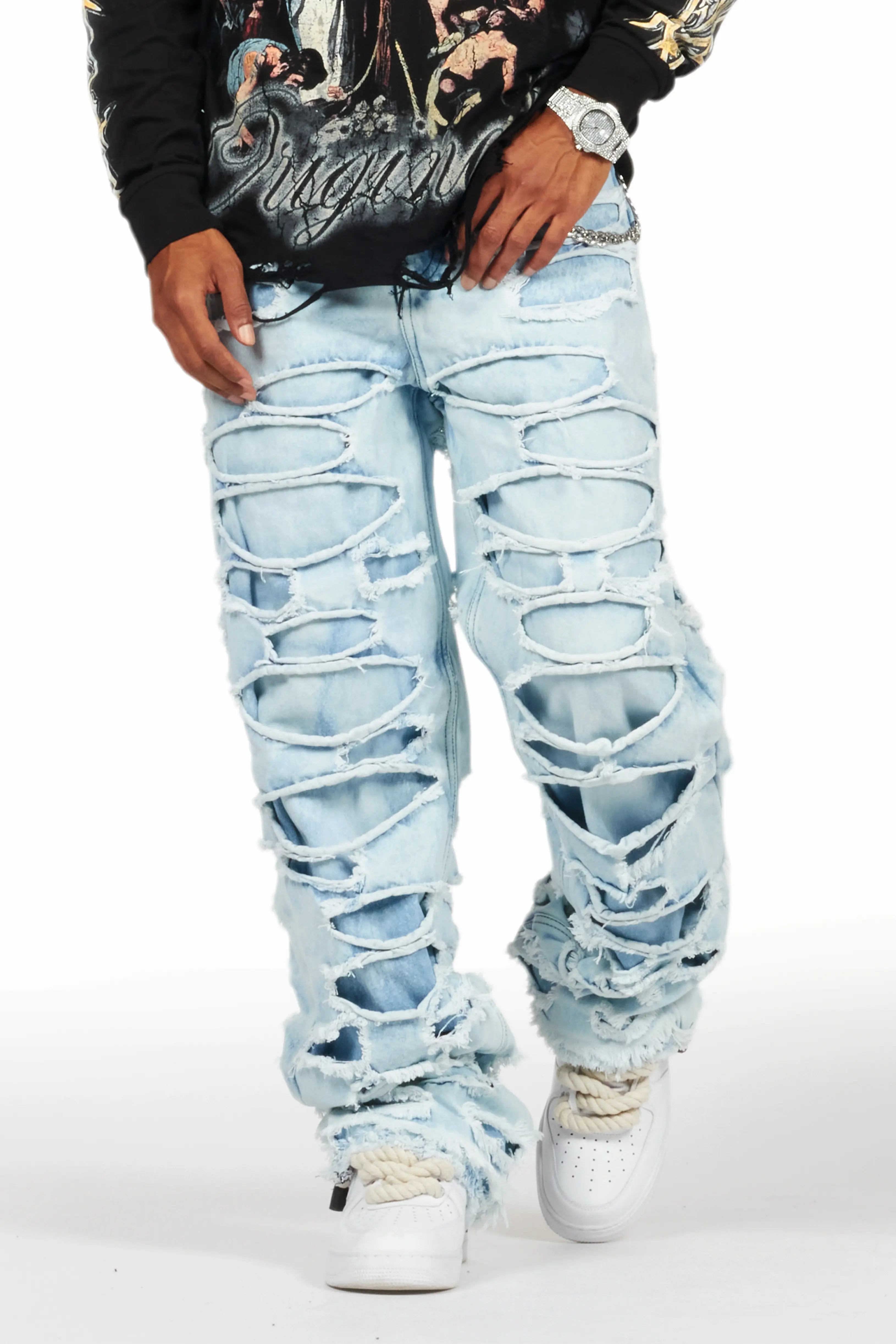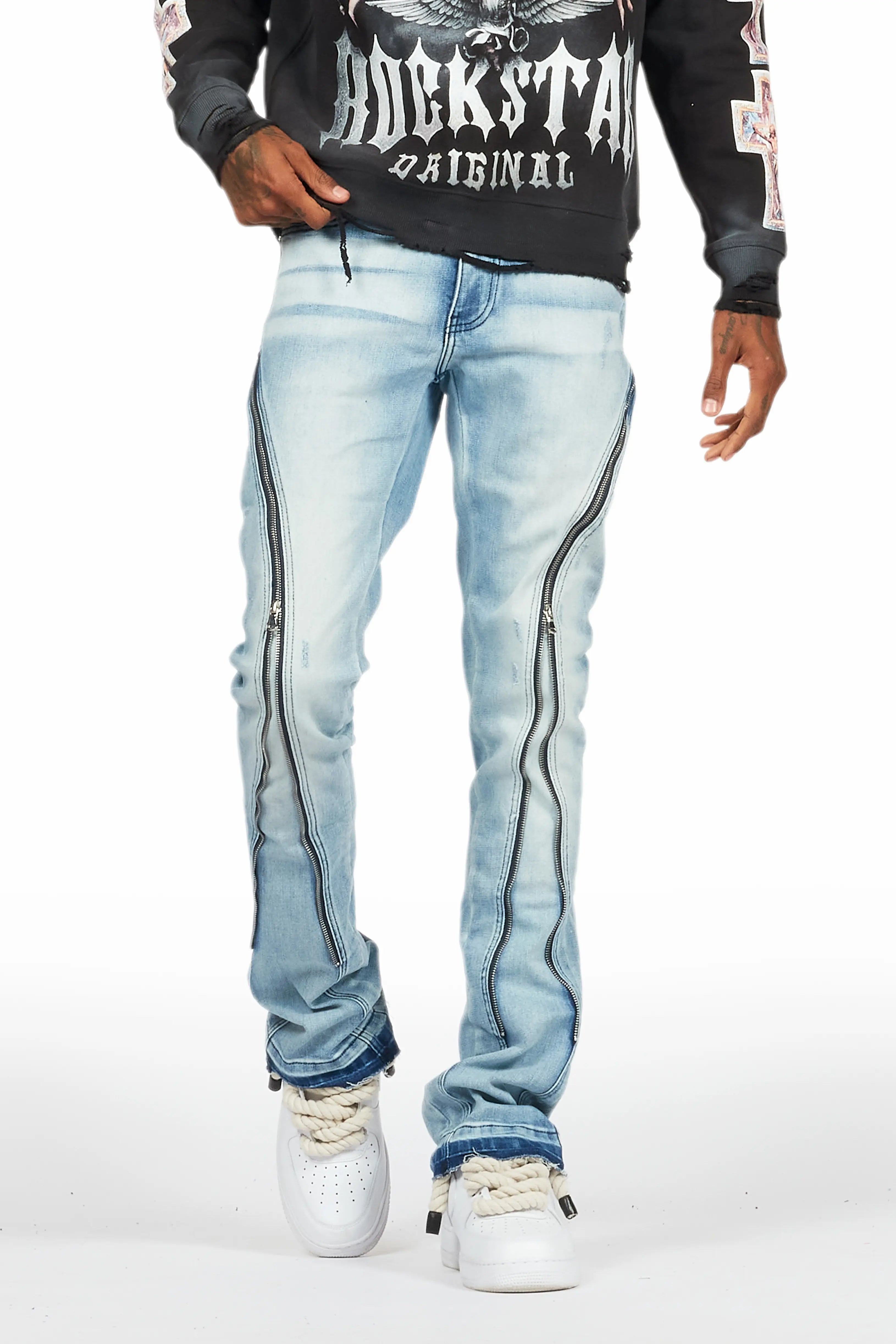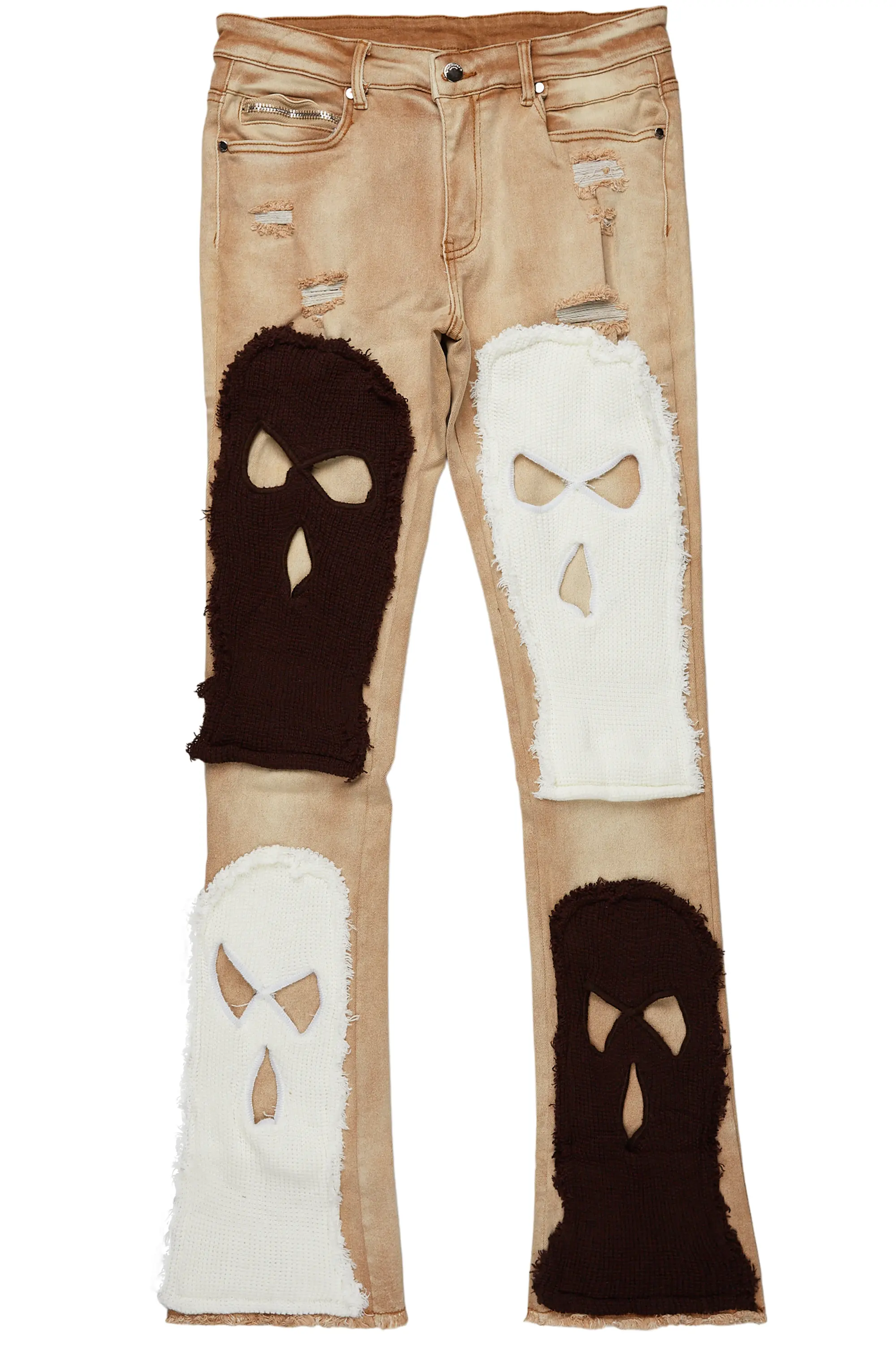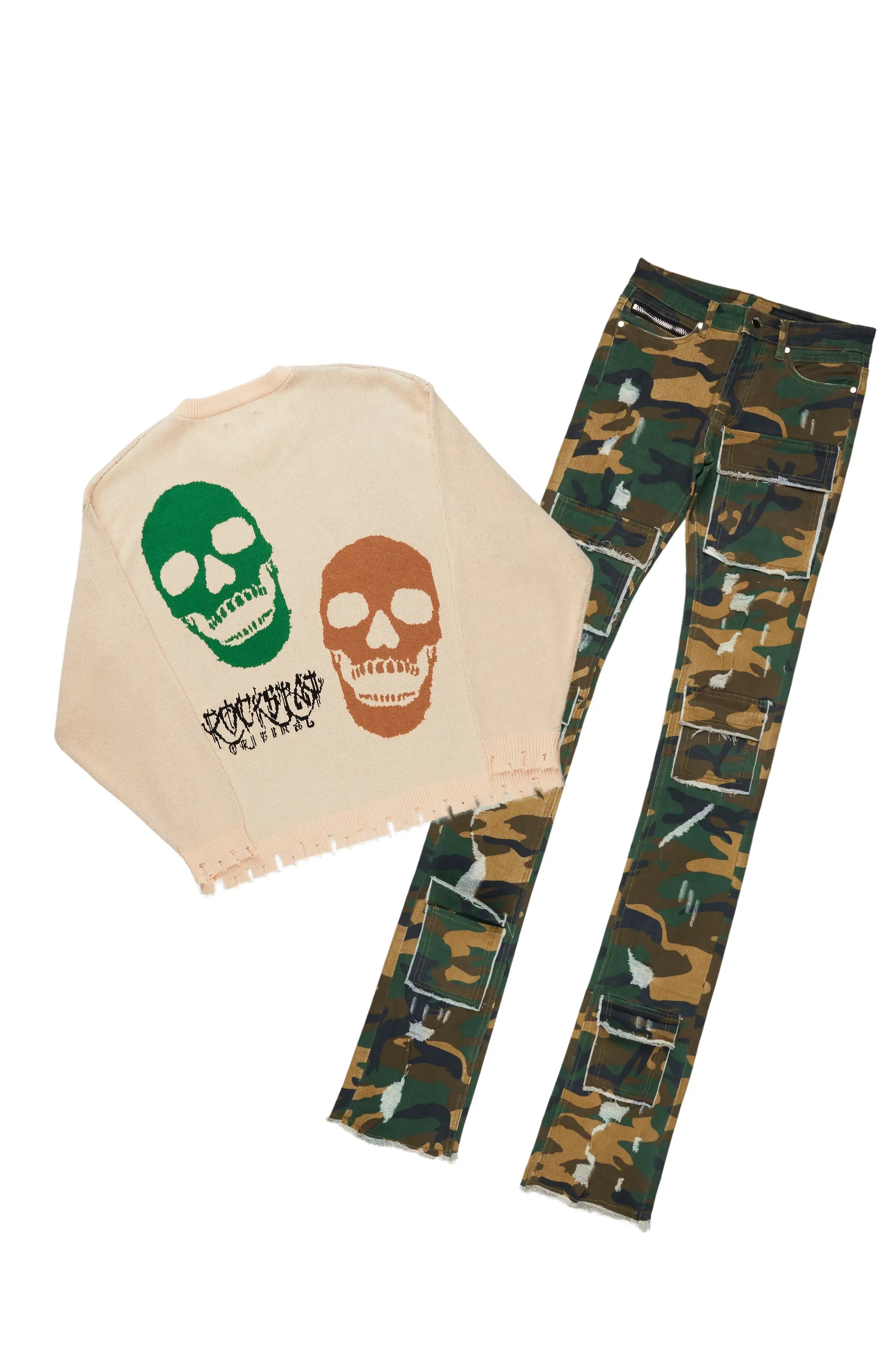 Kaleb Beige Knit Sweater & Petrus Super Stacked Flare Jean Bundle