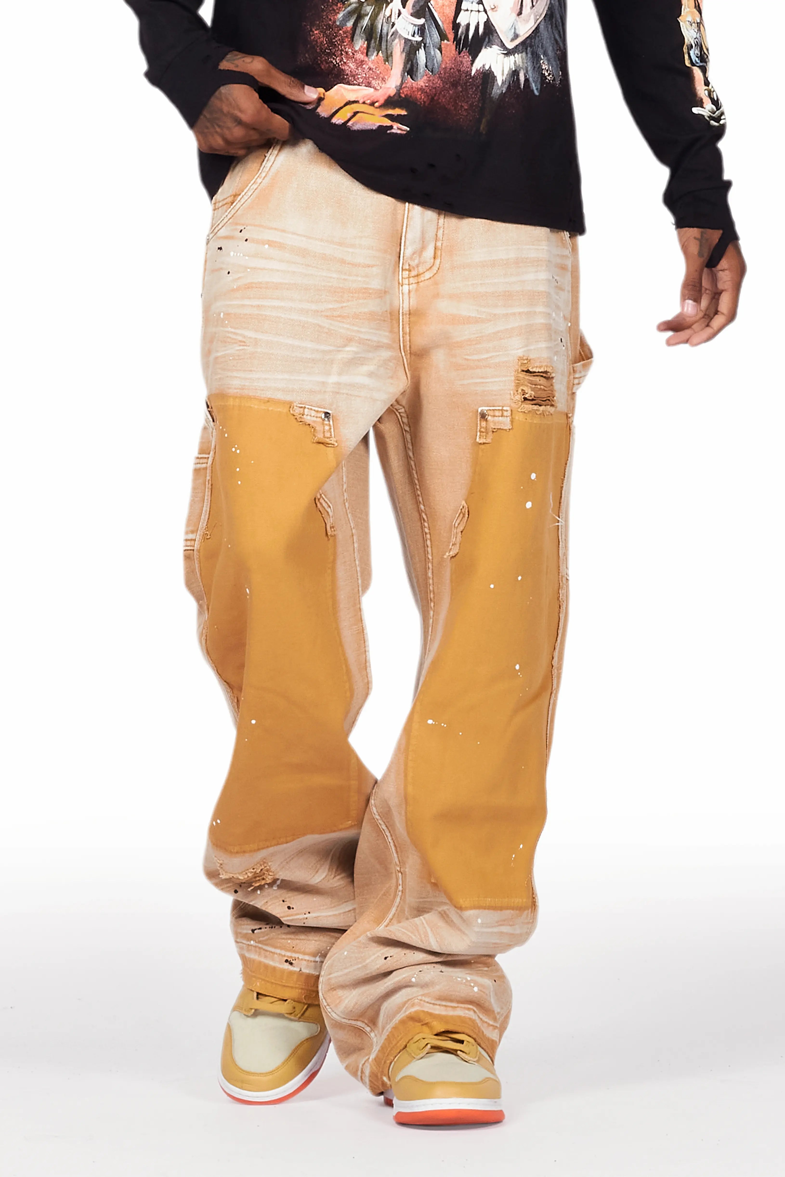 Omer Beige Hoodie/Stacked Flare Cargo Jean Bundle
