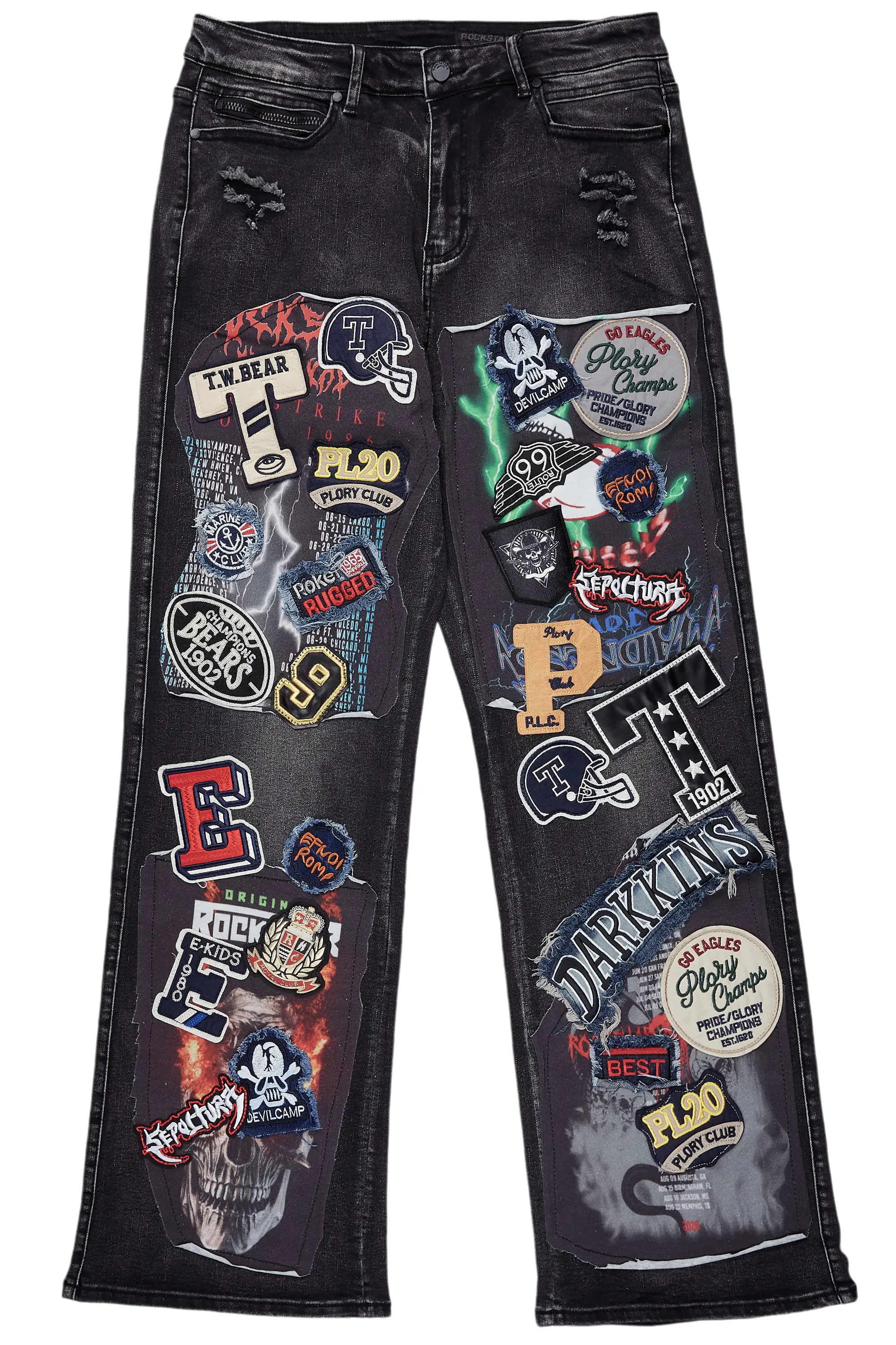 Eppy Black/Blue Long Sleeve T-Shirt/Stacked Flare Cargo Jean Bundle