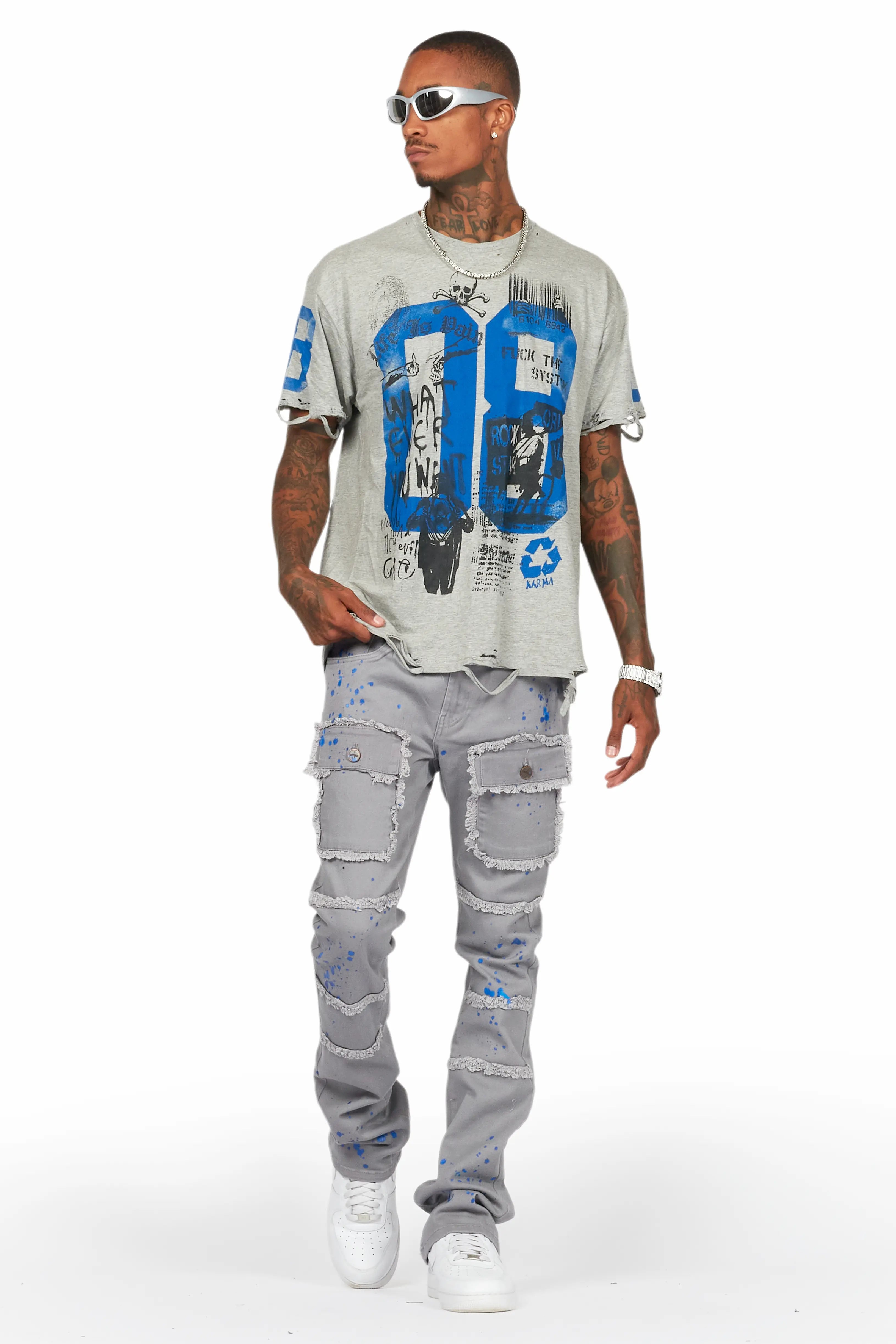 Grill Grey Oversize T-Shirt/Stacked Flare Cargo Jean Bundle