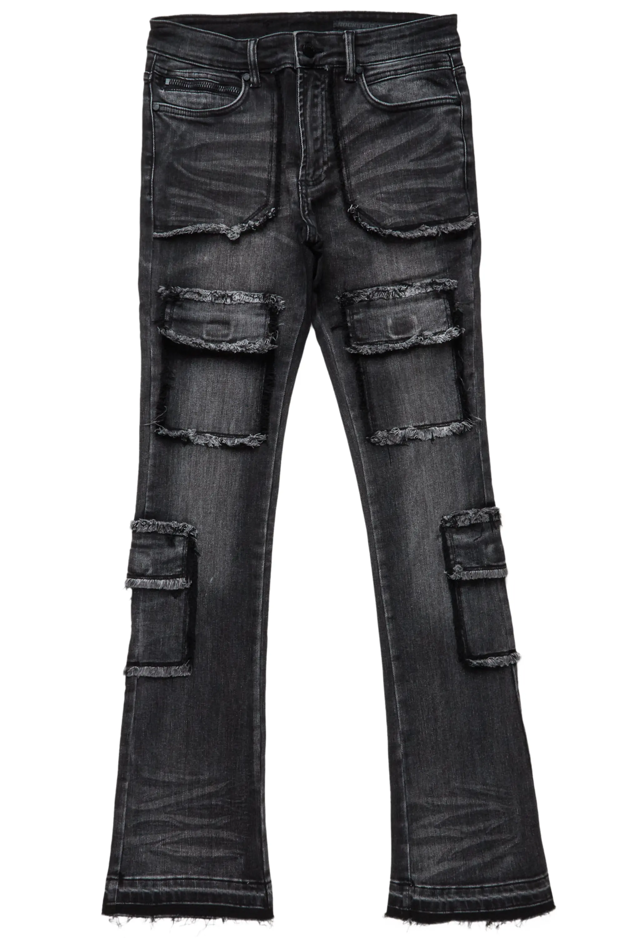 Tyrell Grey Wash Stacked Flare Cargo Jean
