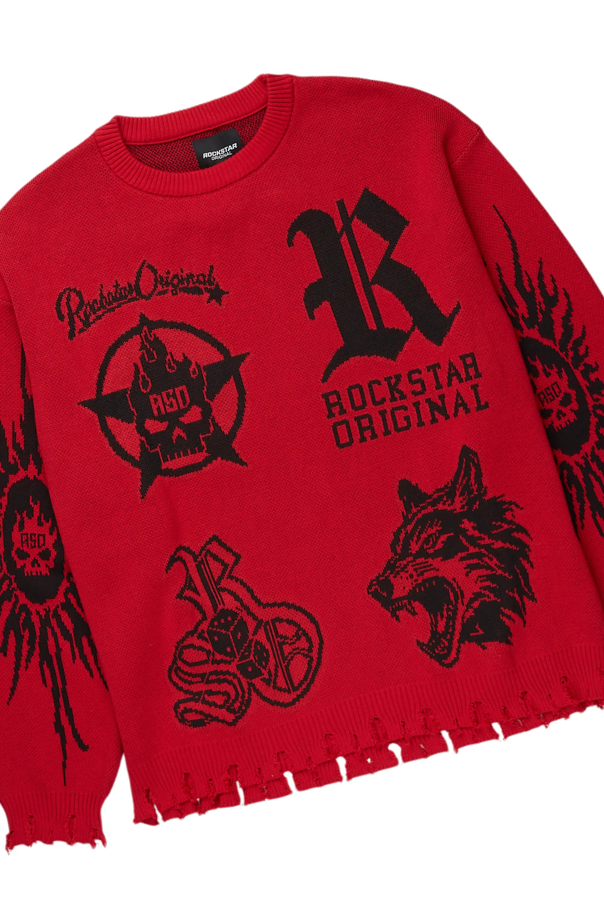 Fagan Red Knit Sweater & Tyrell Stacked Flare Jean Bundle
