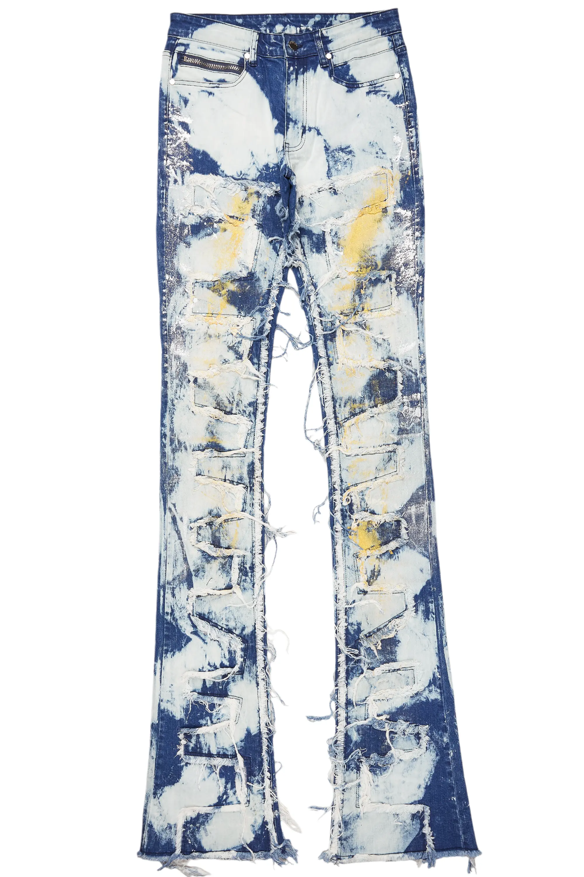 Zaire Blue Multi Tapestry Stacked Flare Jean