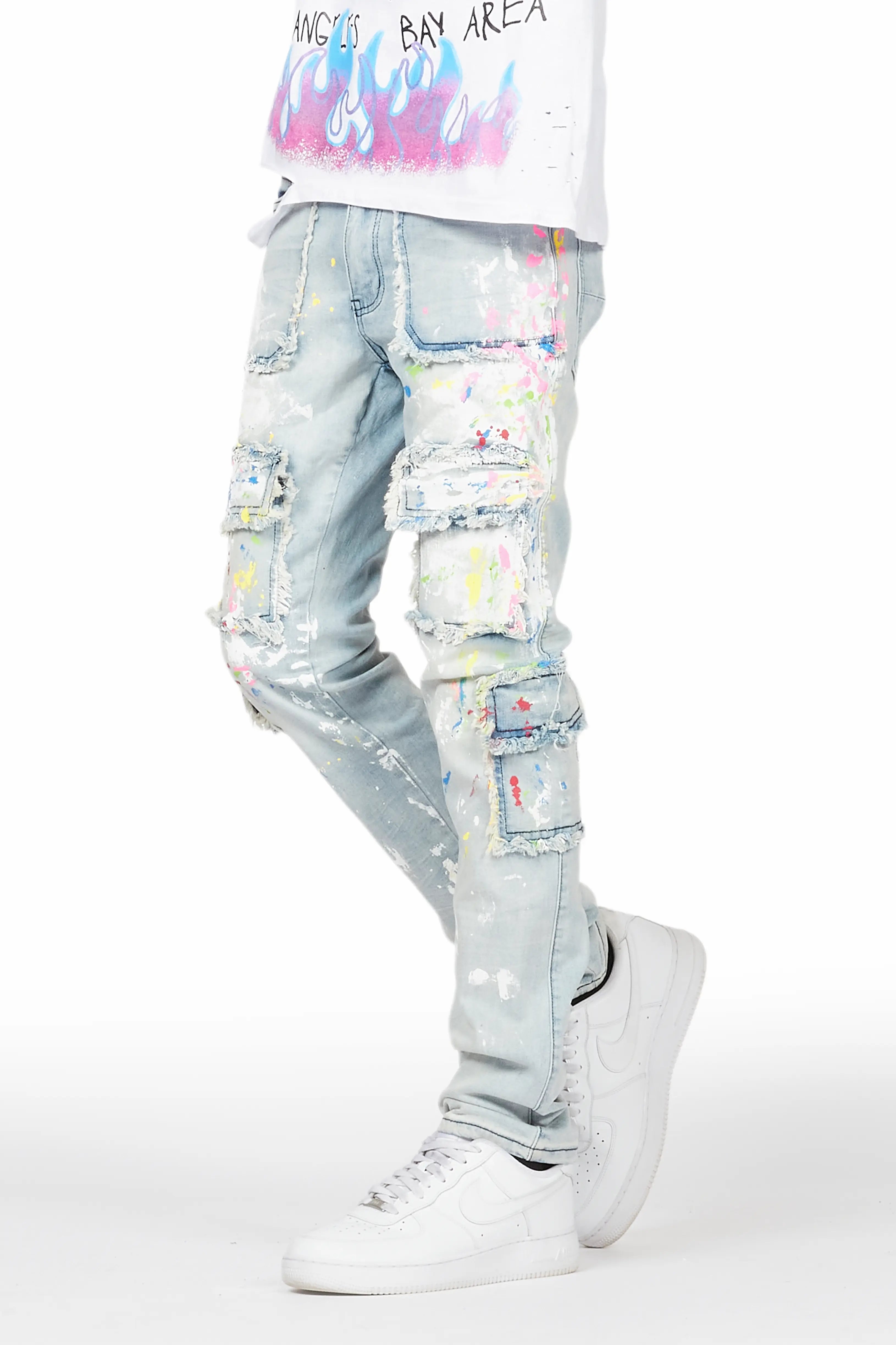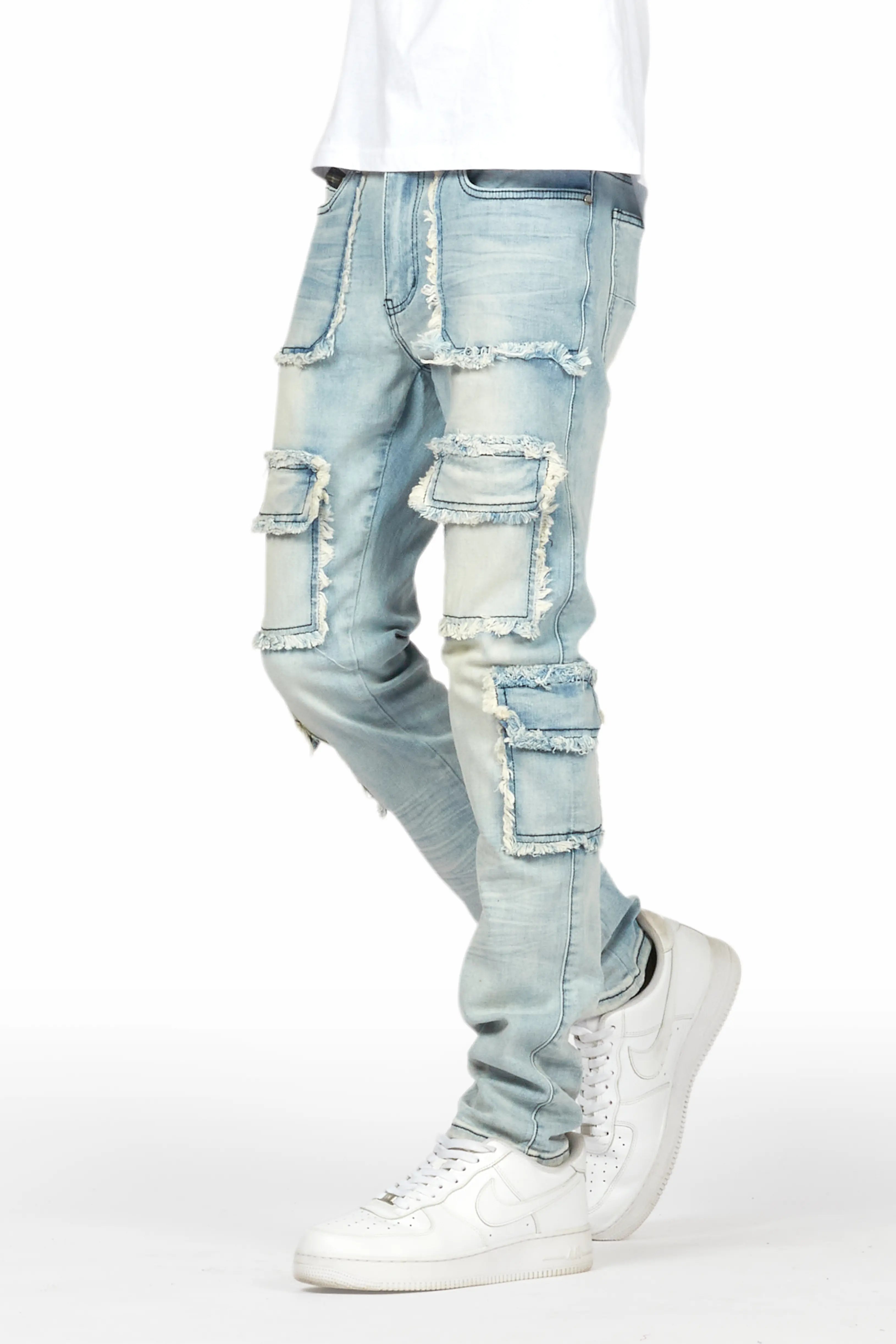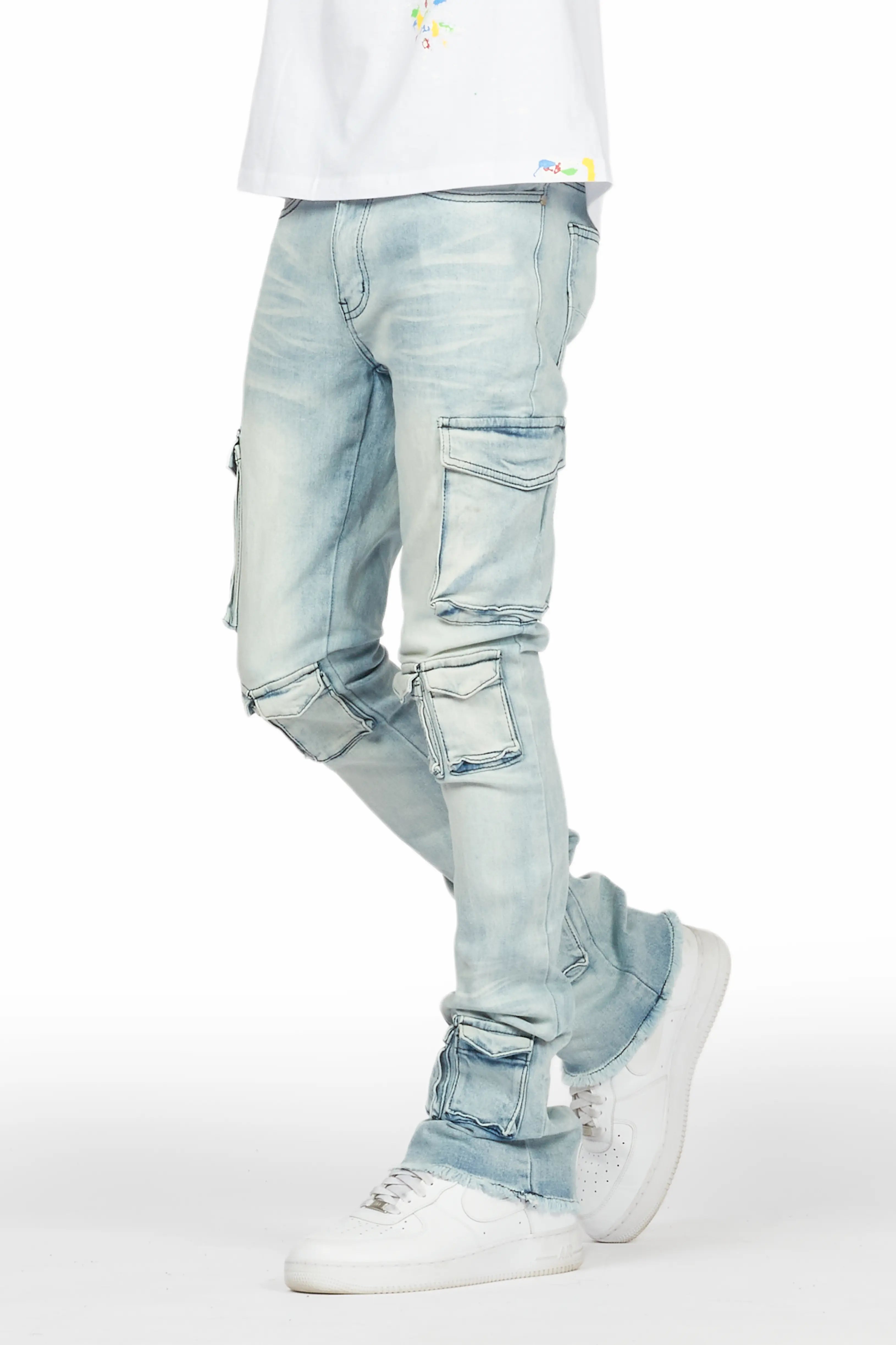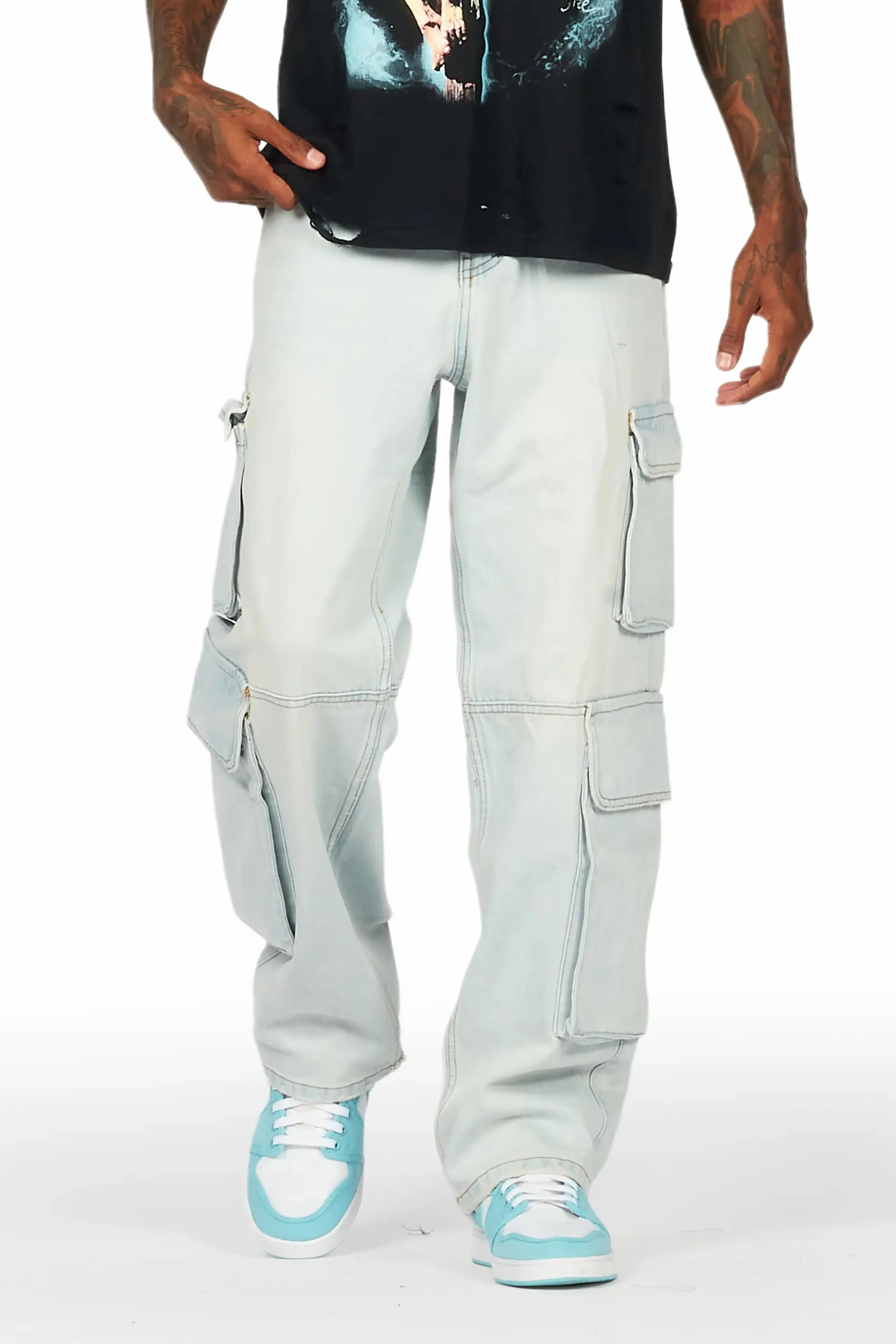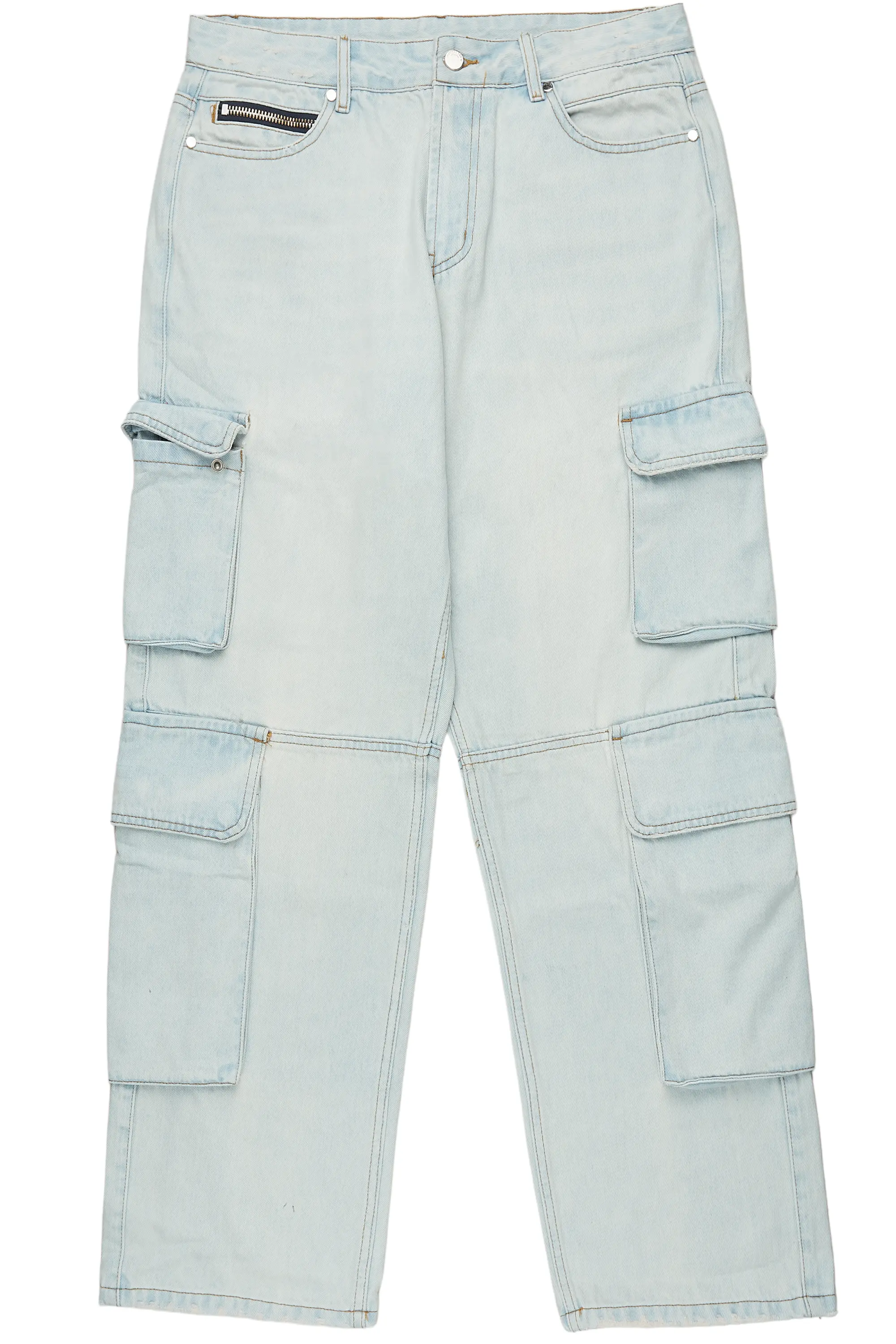 Lake White/Blue T-Shirt/Stacked Flare Cargo Jean Bundle