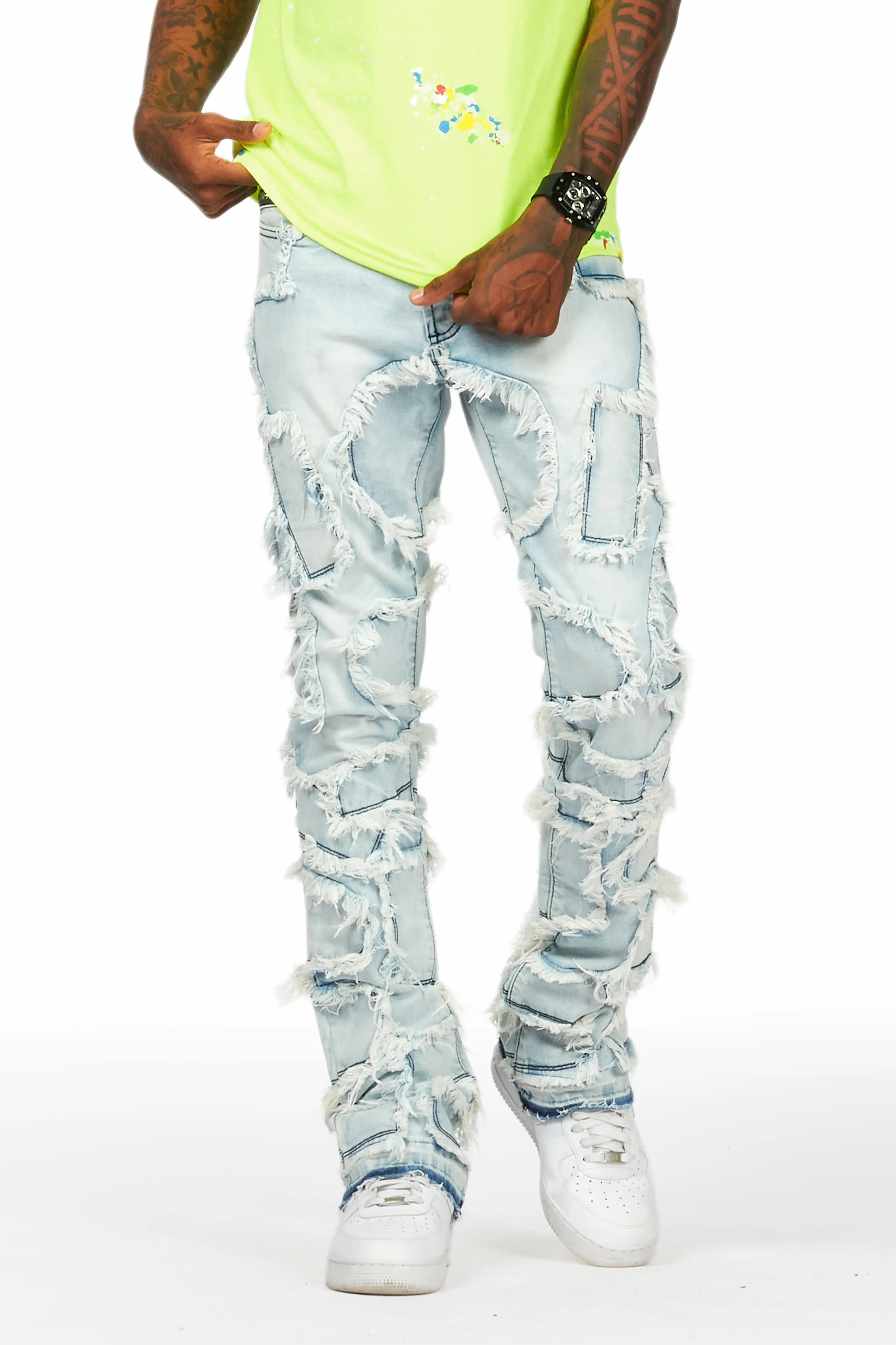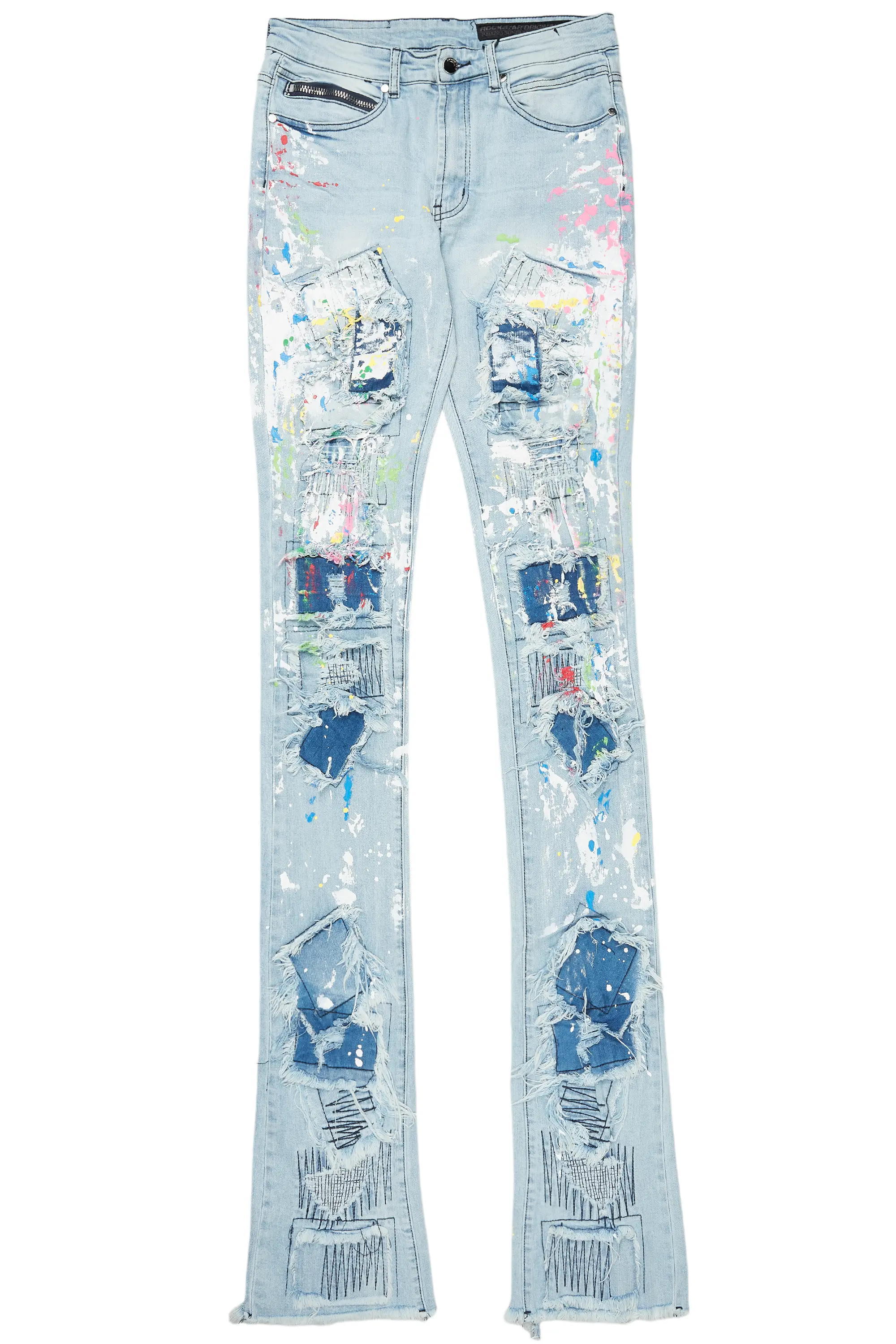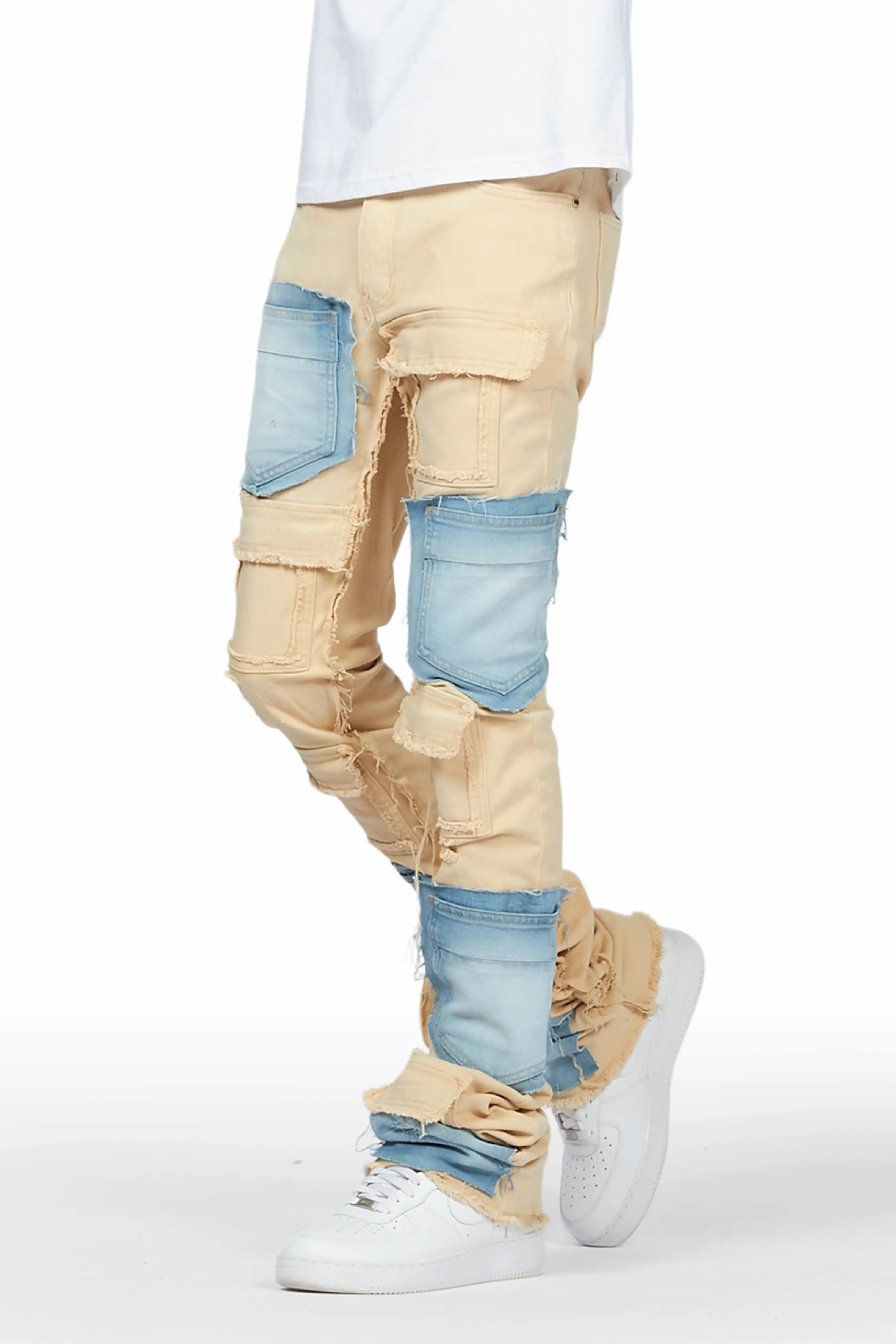 Heath Beige/Blue Patchwork Super Stacked Flare Jean