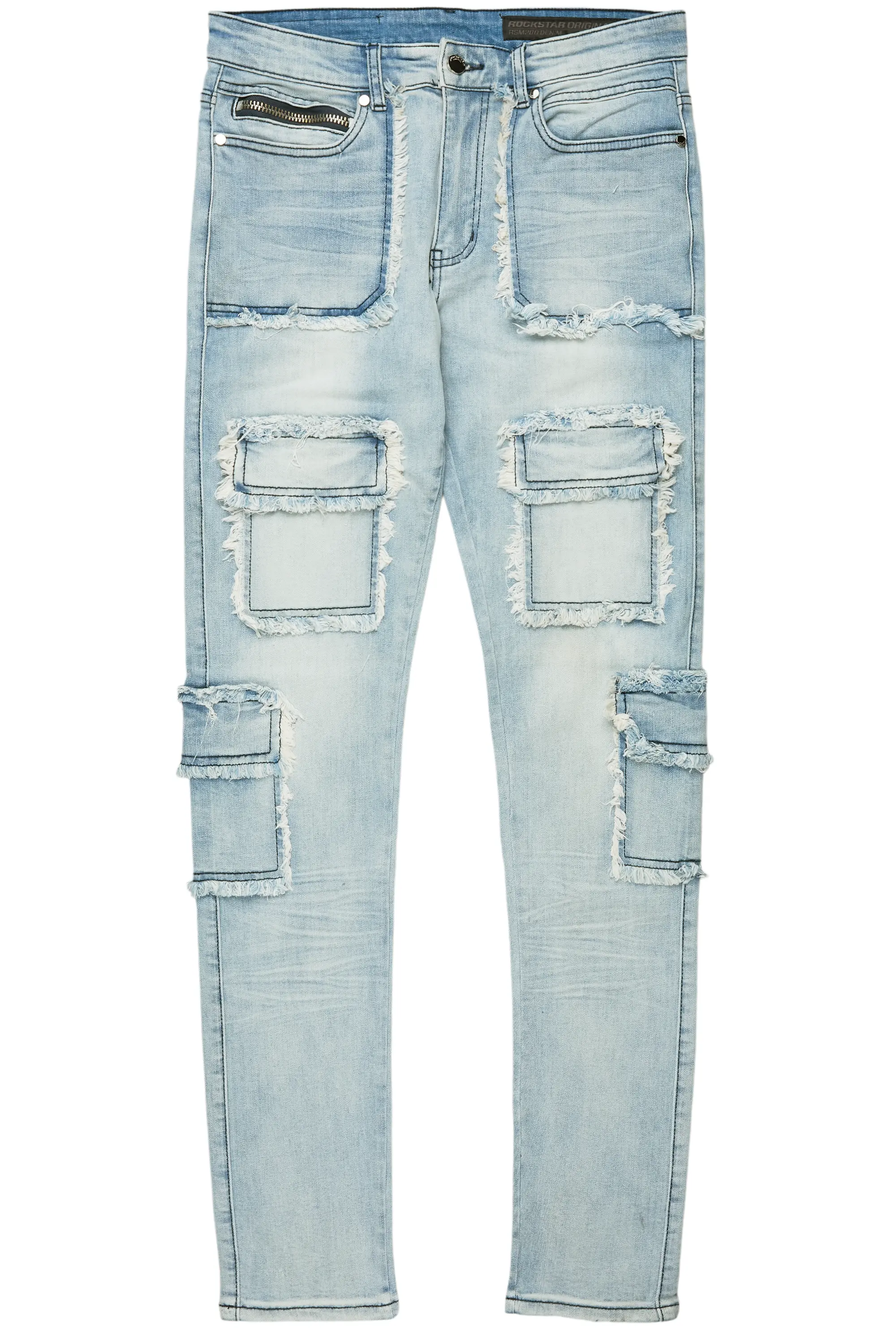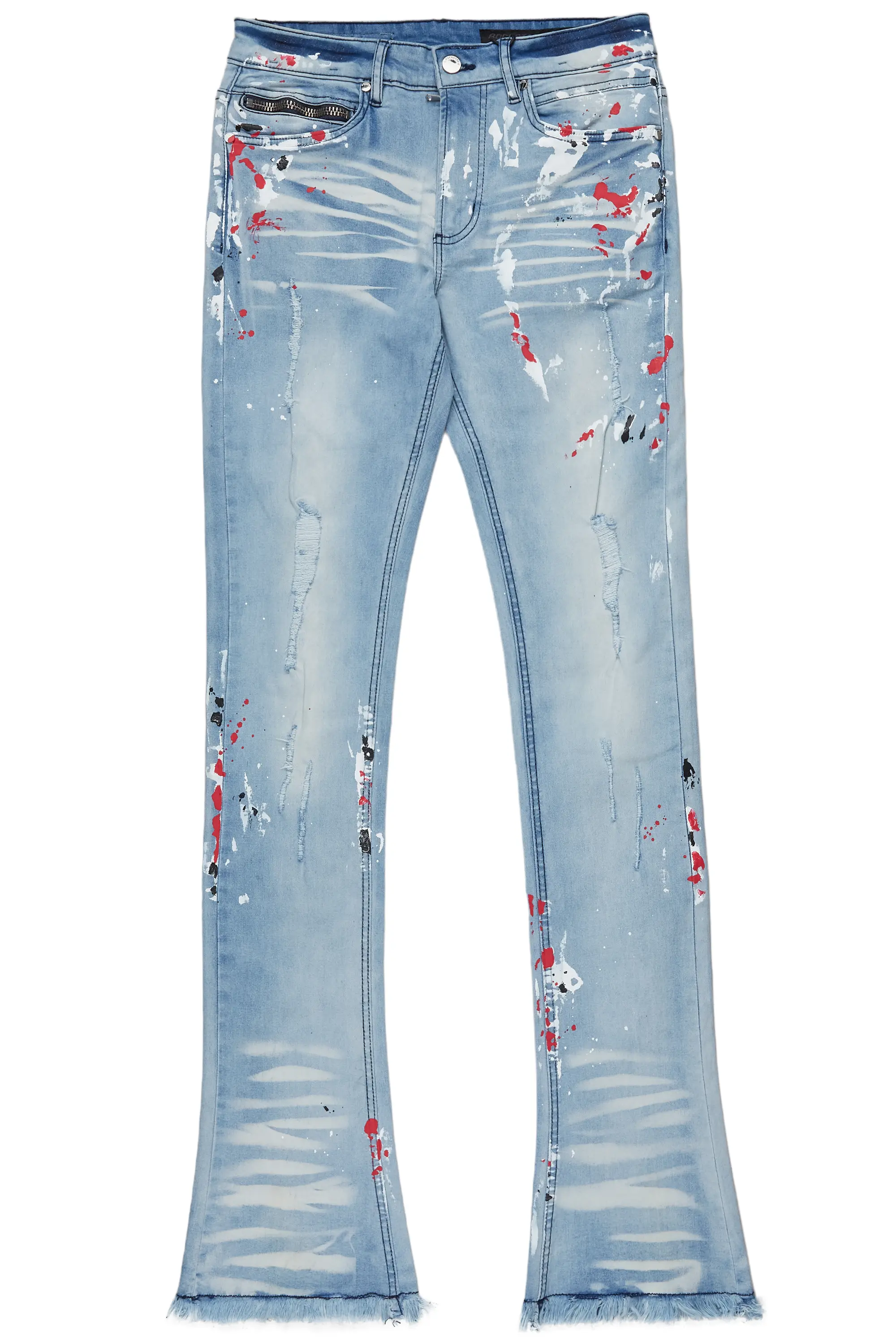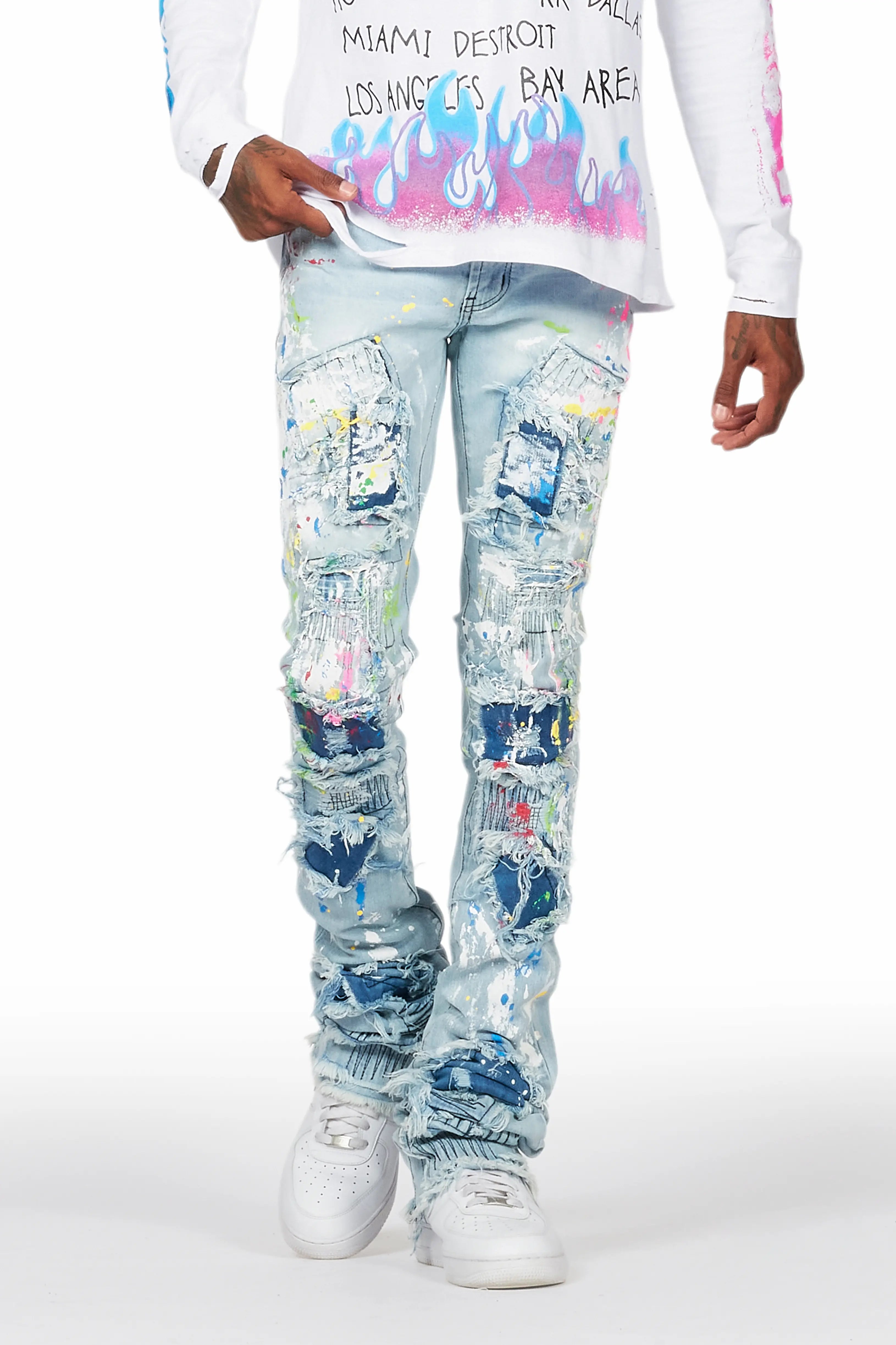 Heath Beige/Blue Patchwork Super Stacked Flare Jean