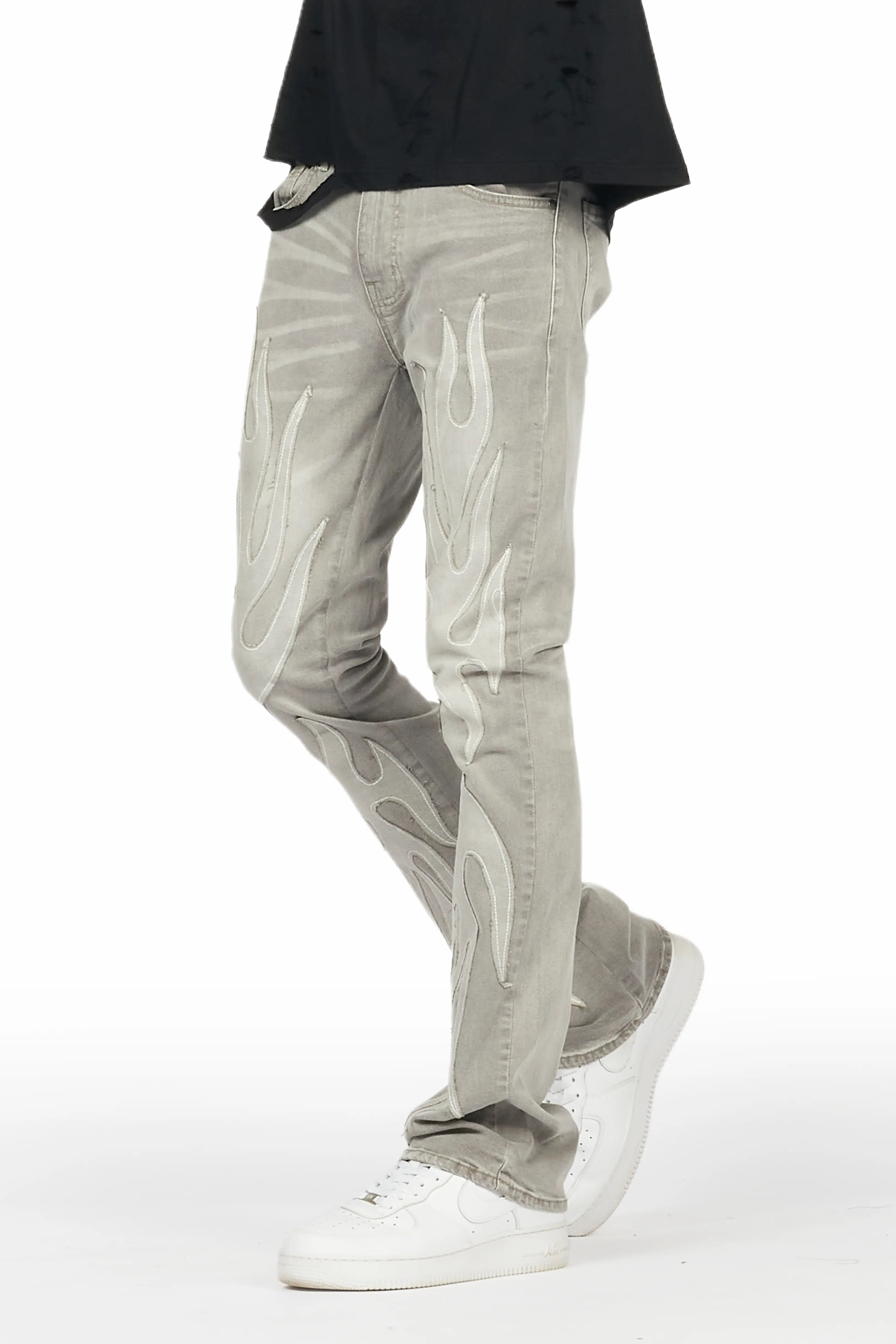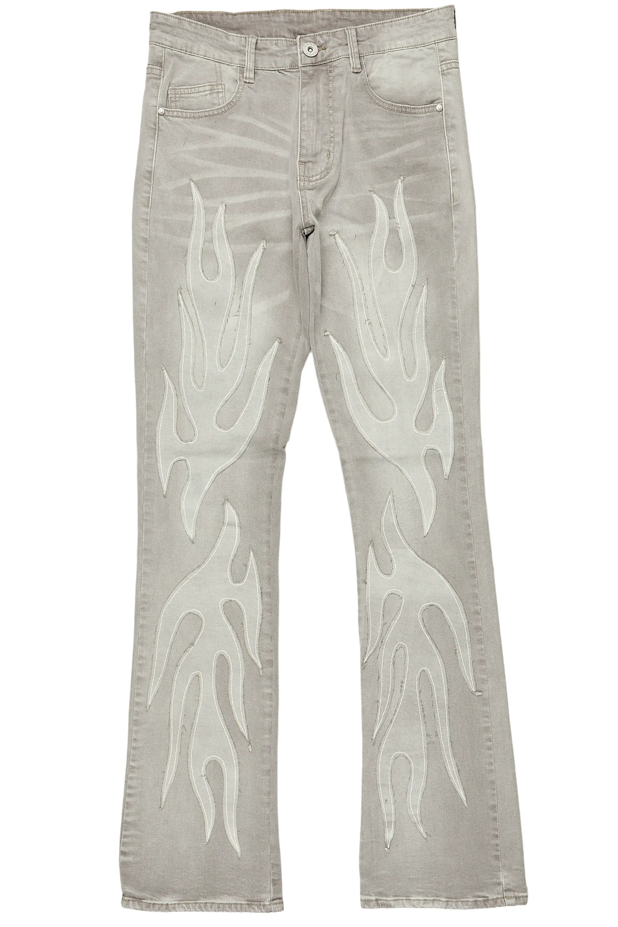 Ebbos Grey Flame Patched Skinny Flare Jean