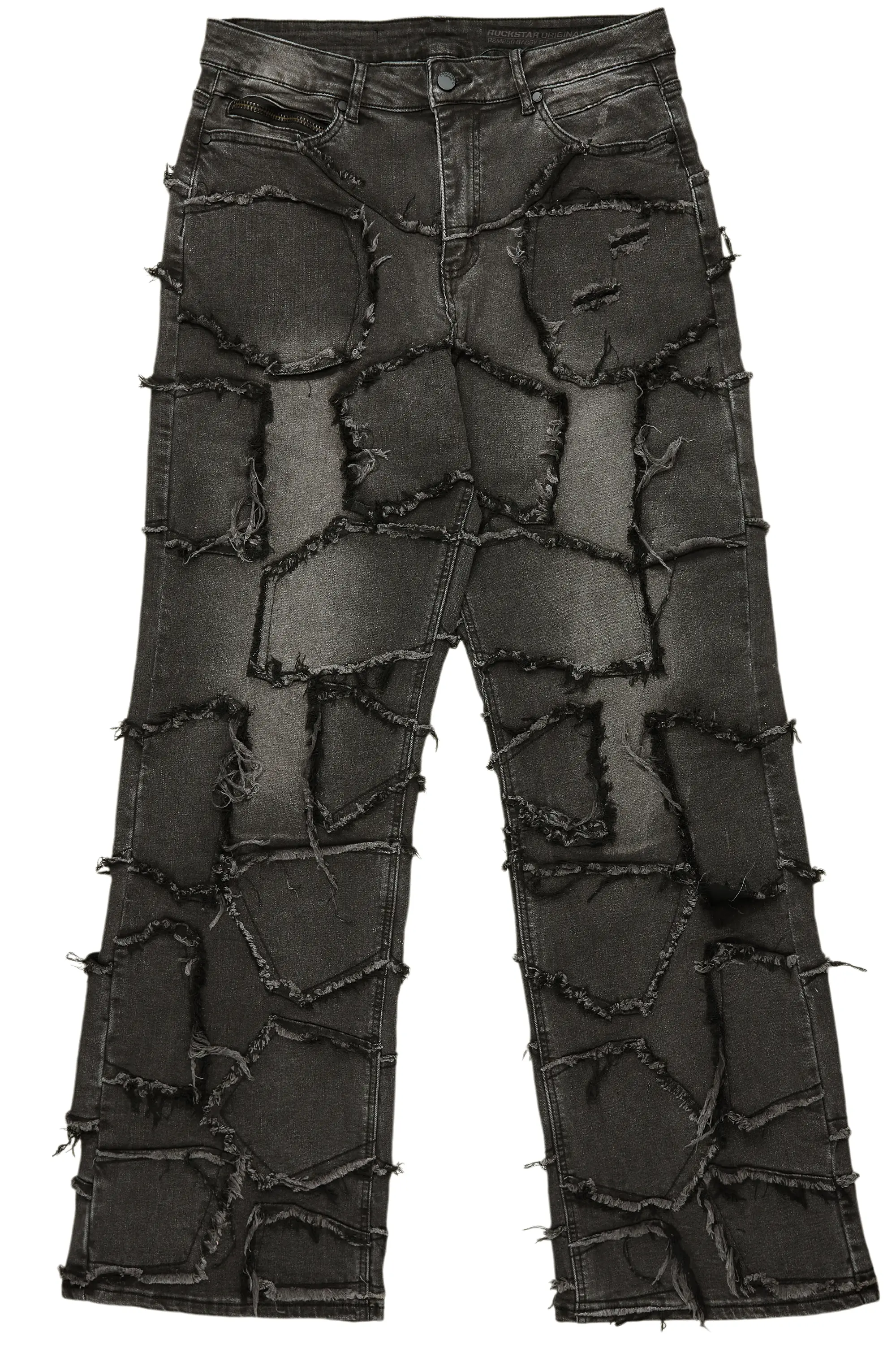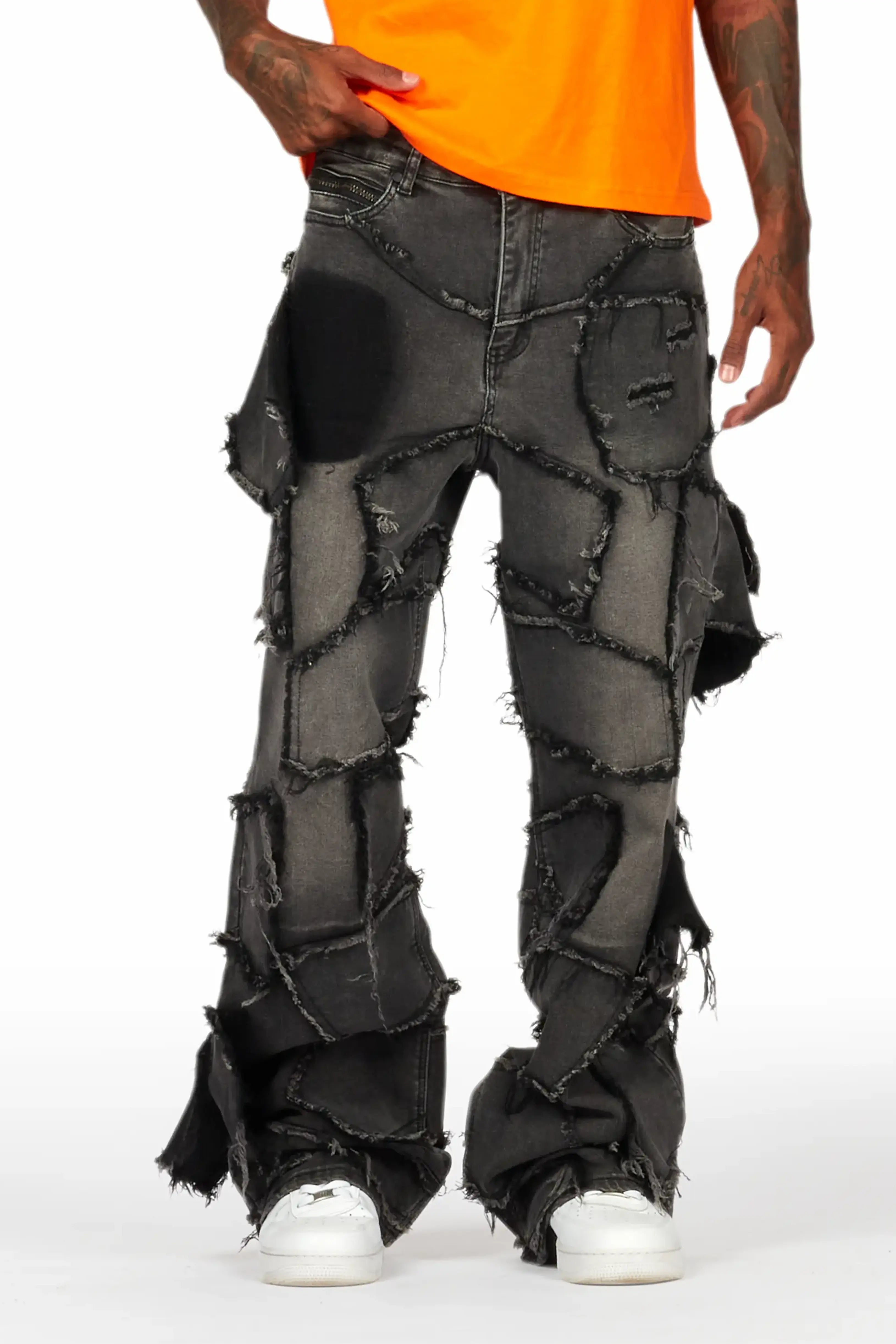 Vinson Dark Grey Patchwork Super Stacked Flare Jean