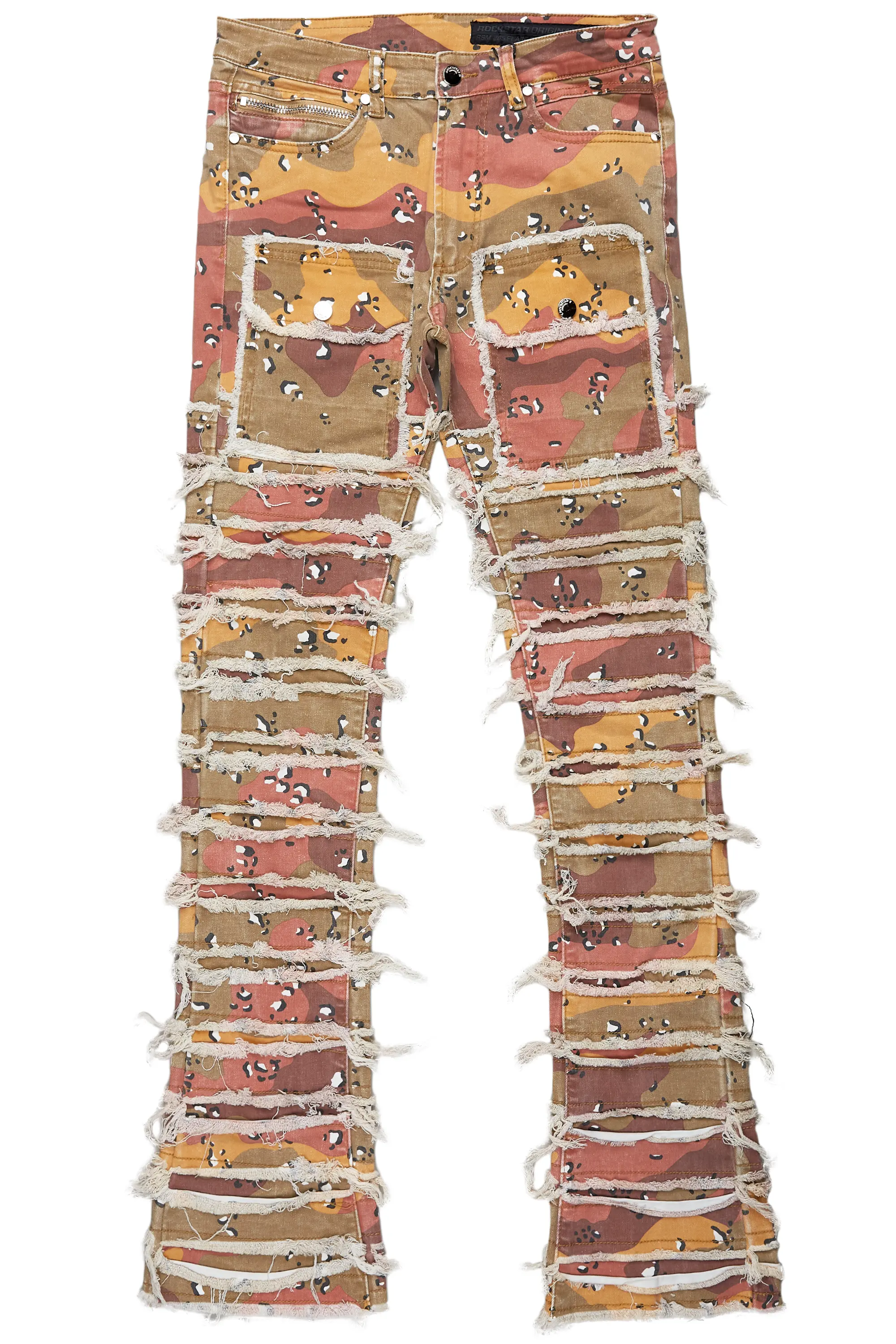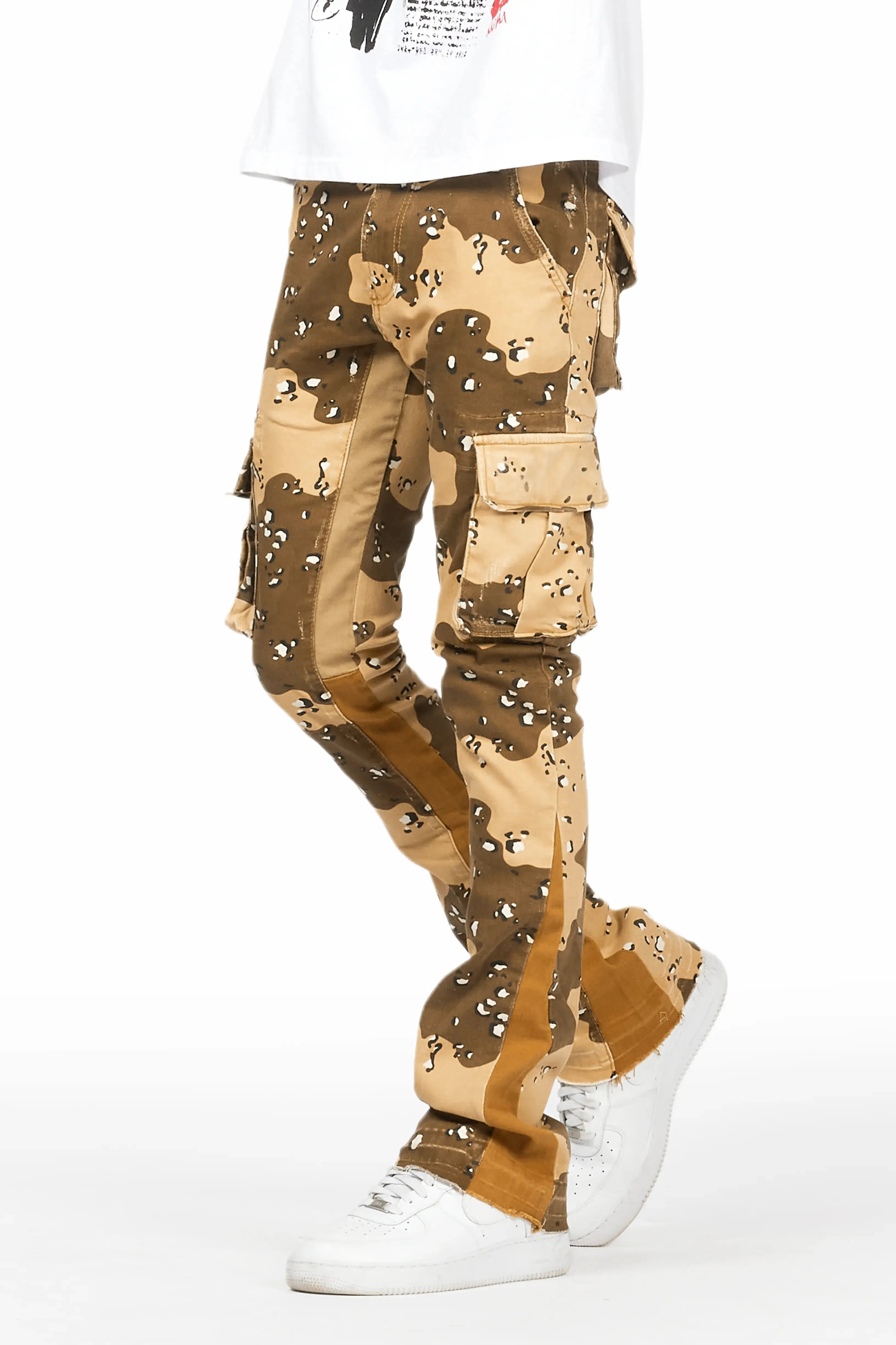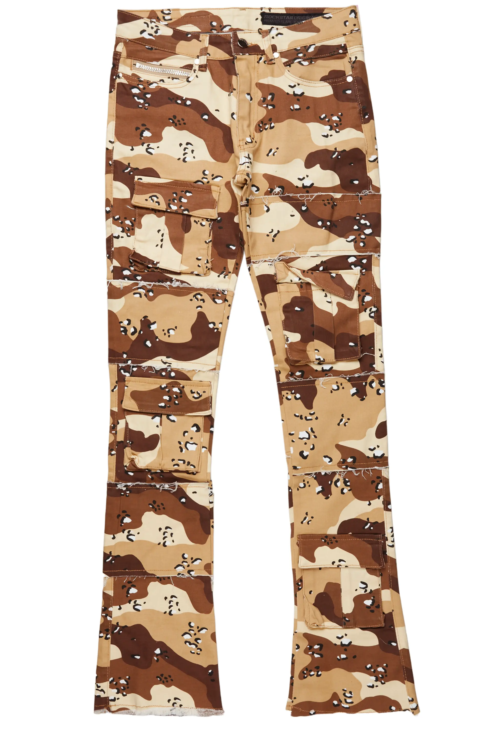 Duggar Beige Camo Cargo Stacked Flare Jean