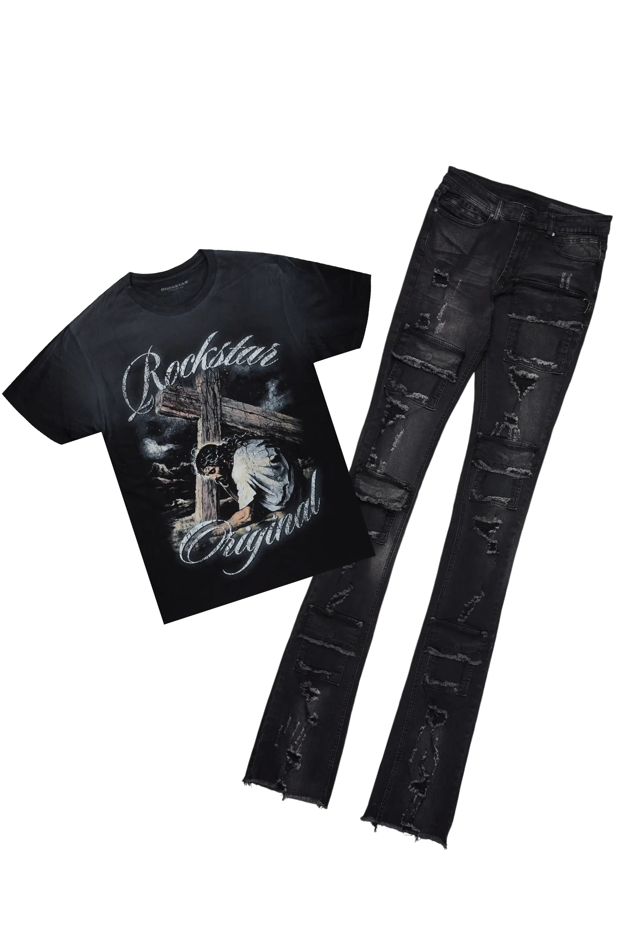 Ojas Black T-Shirt & Petrus Super Stacked Flare Jean Bundle