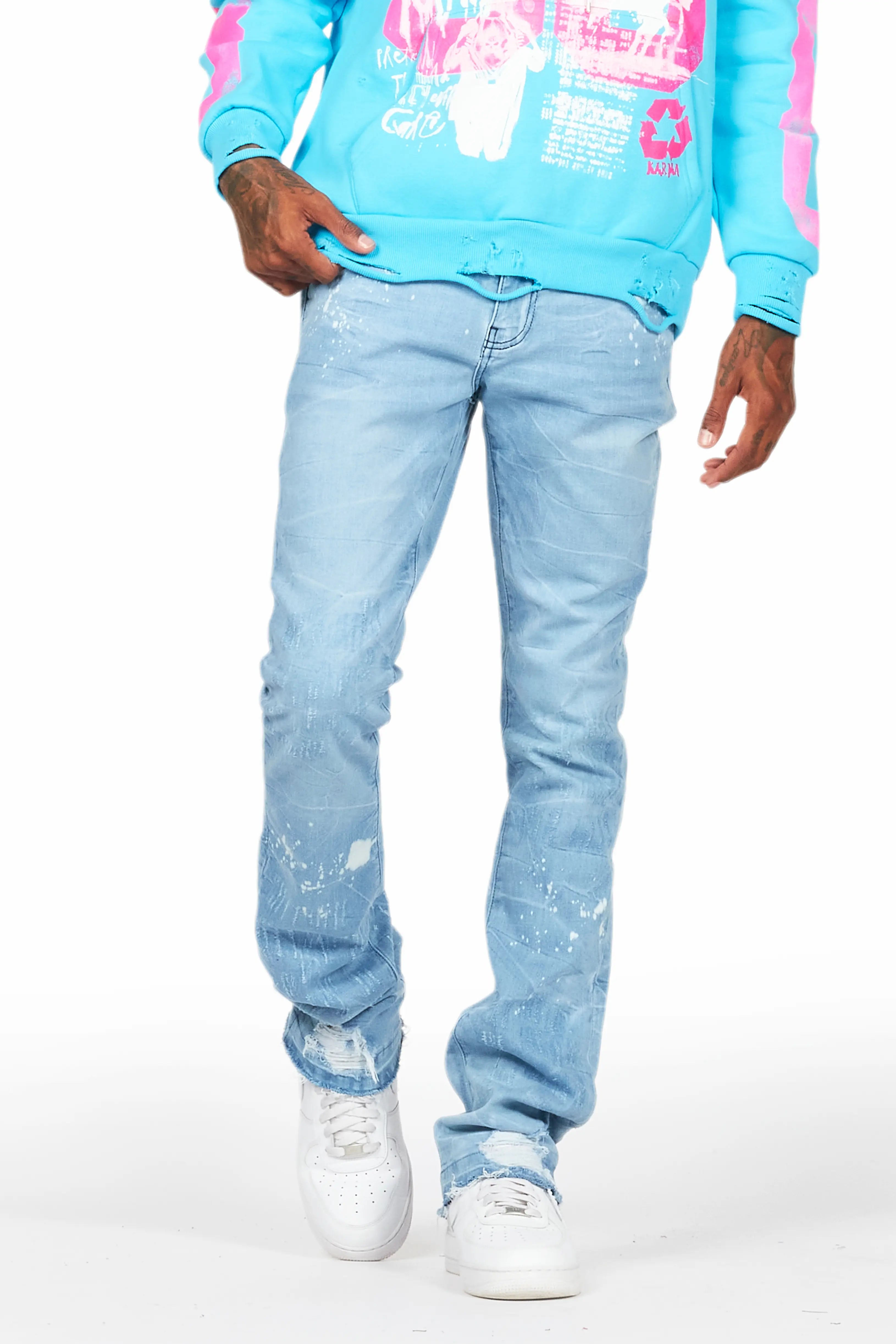 Neige Blue/ Black Graphic Stacked Flare Jean