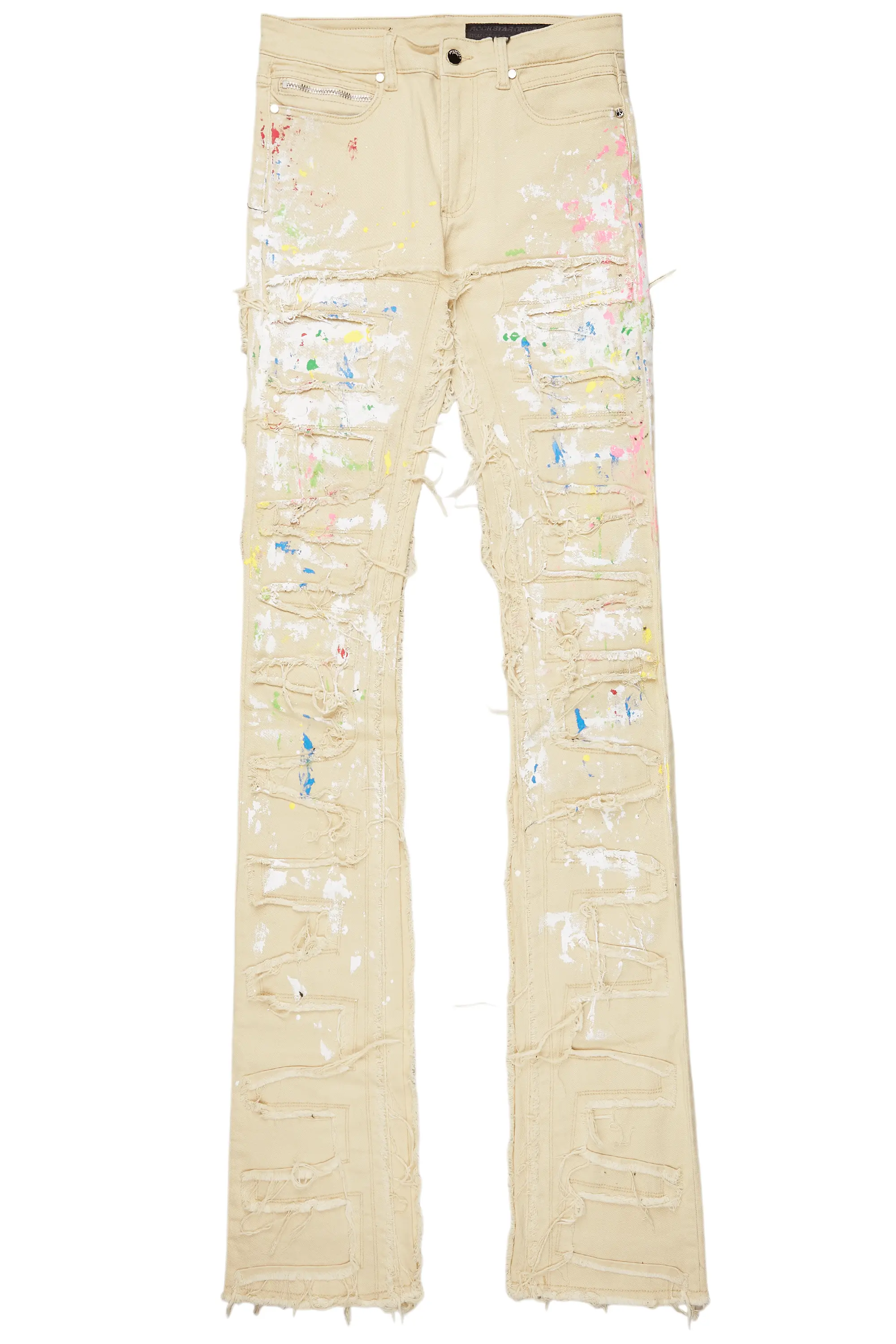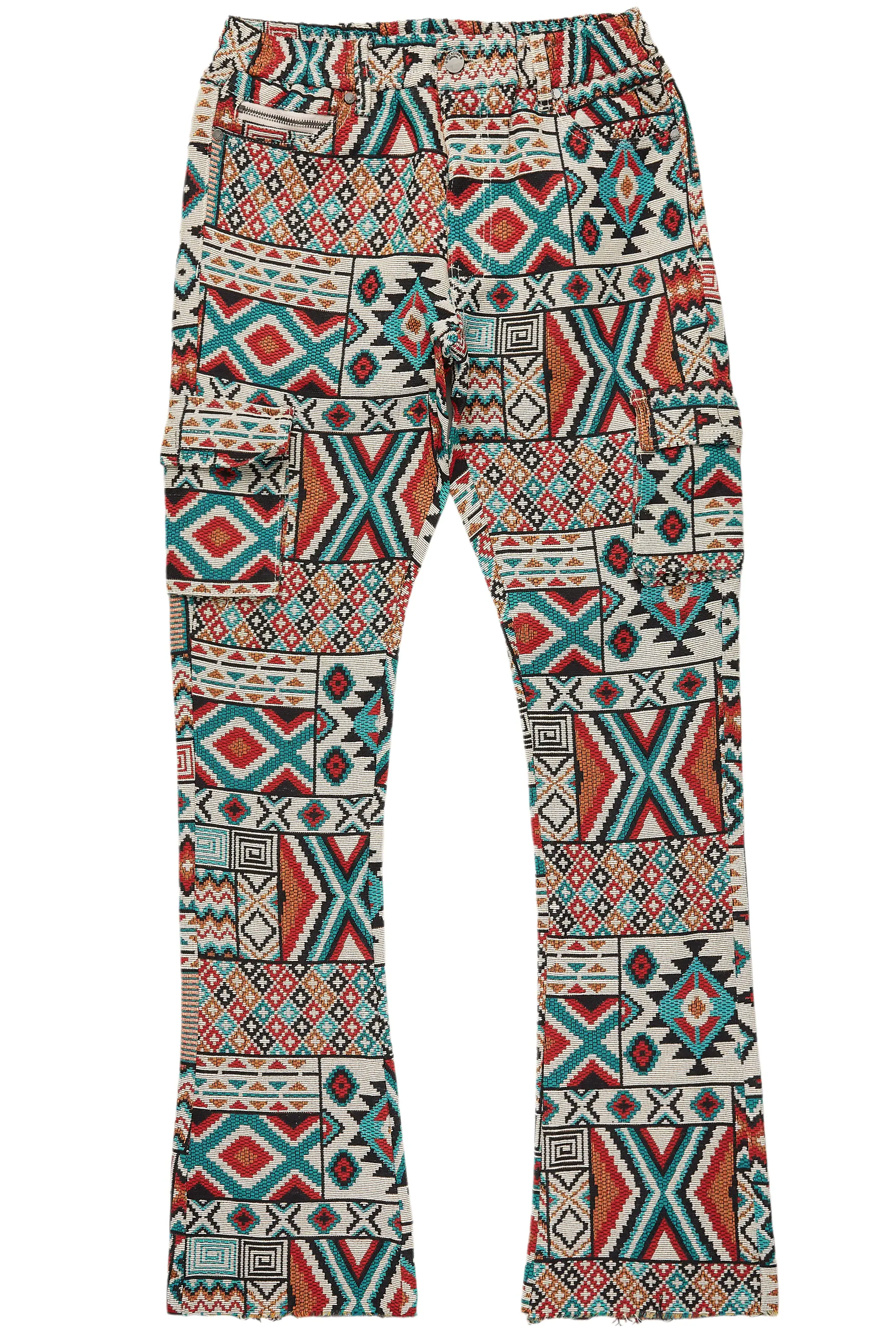 Nard Beige Multi Tapestry Stacked Flare Jean
