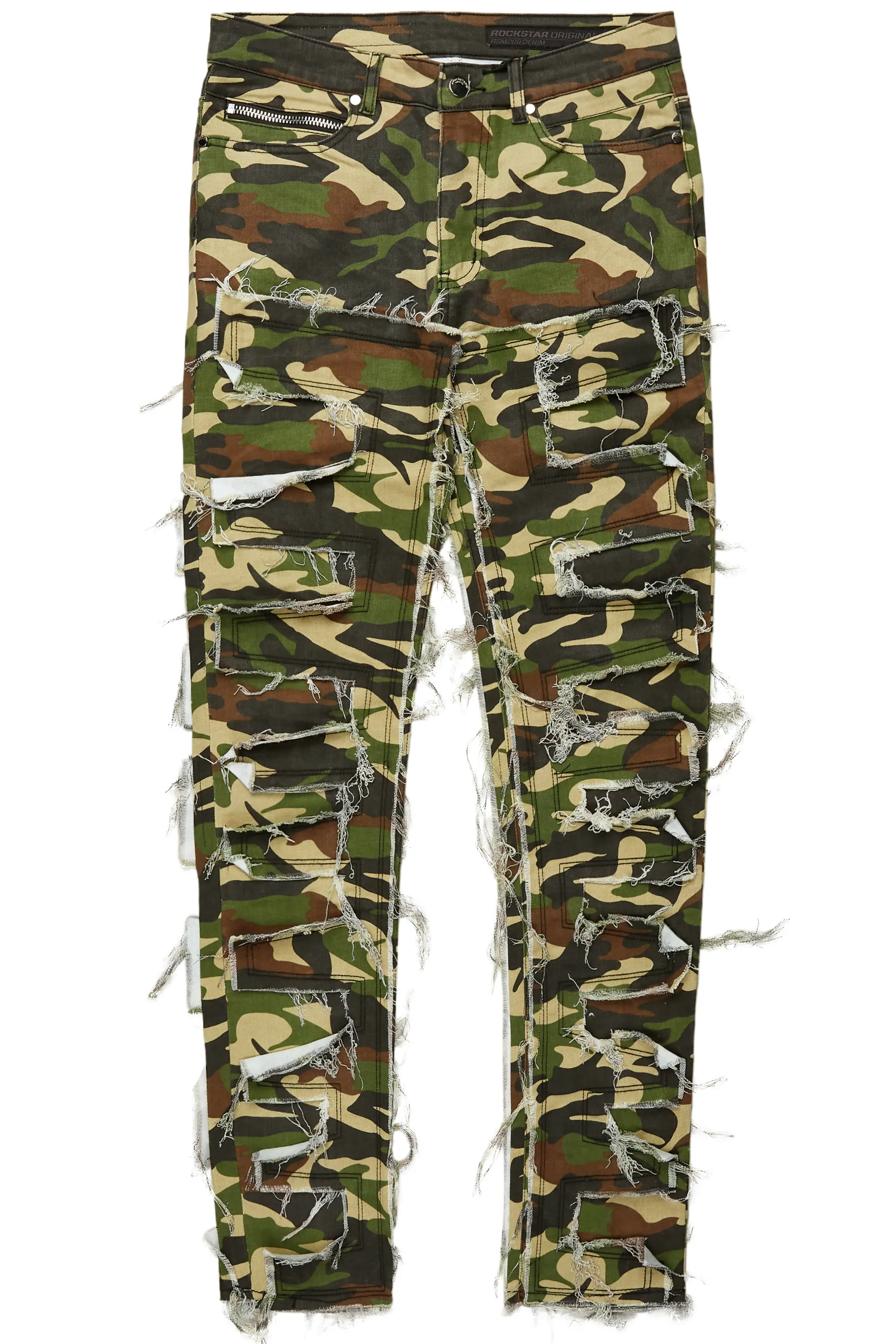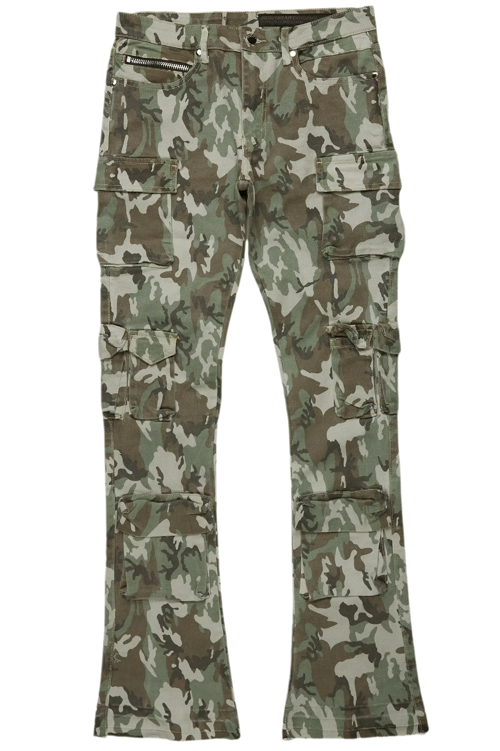 Piet Green Camo Cargo Super Stacked Flare Jean