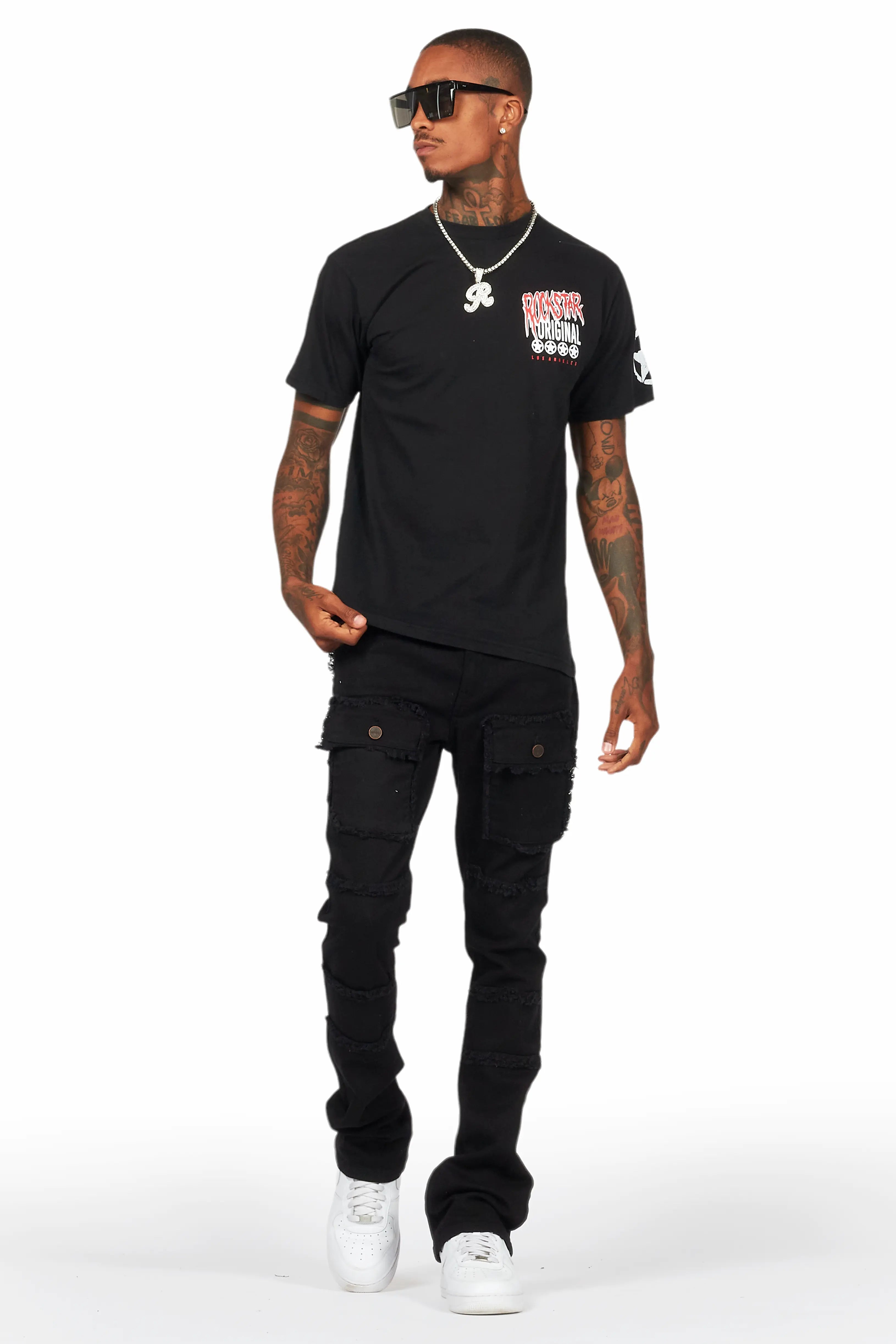 Wizzurd Black T-Shirt/Stacked Flare Cargo Jean Bundle
