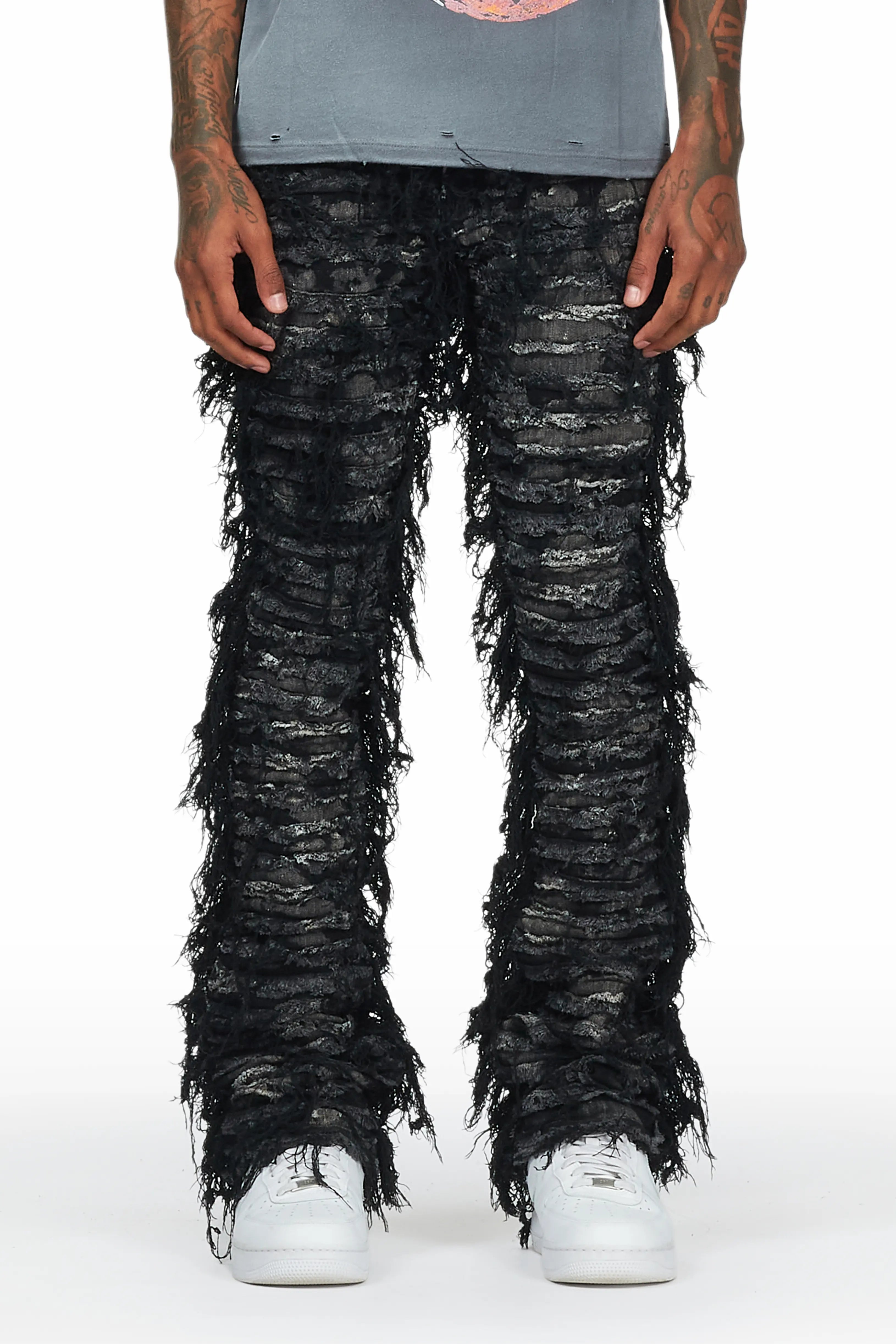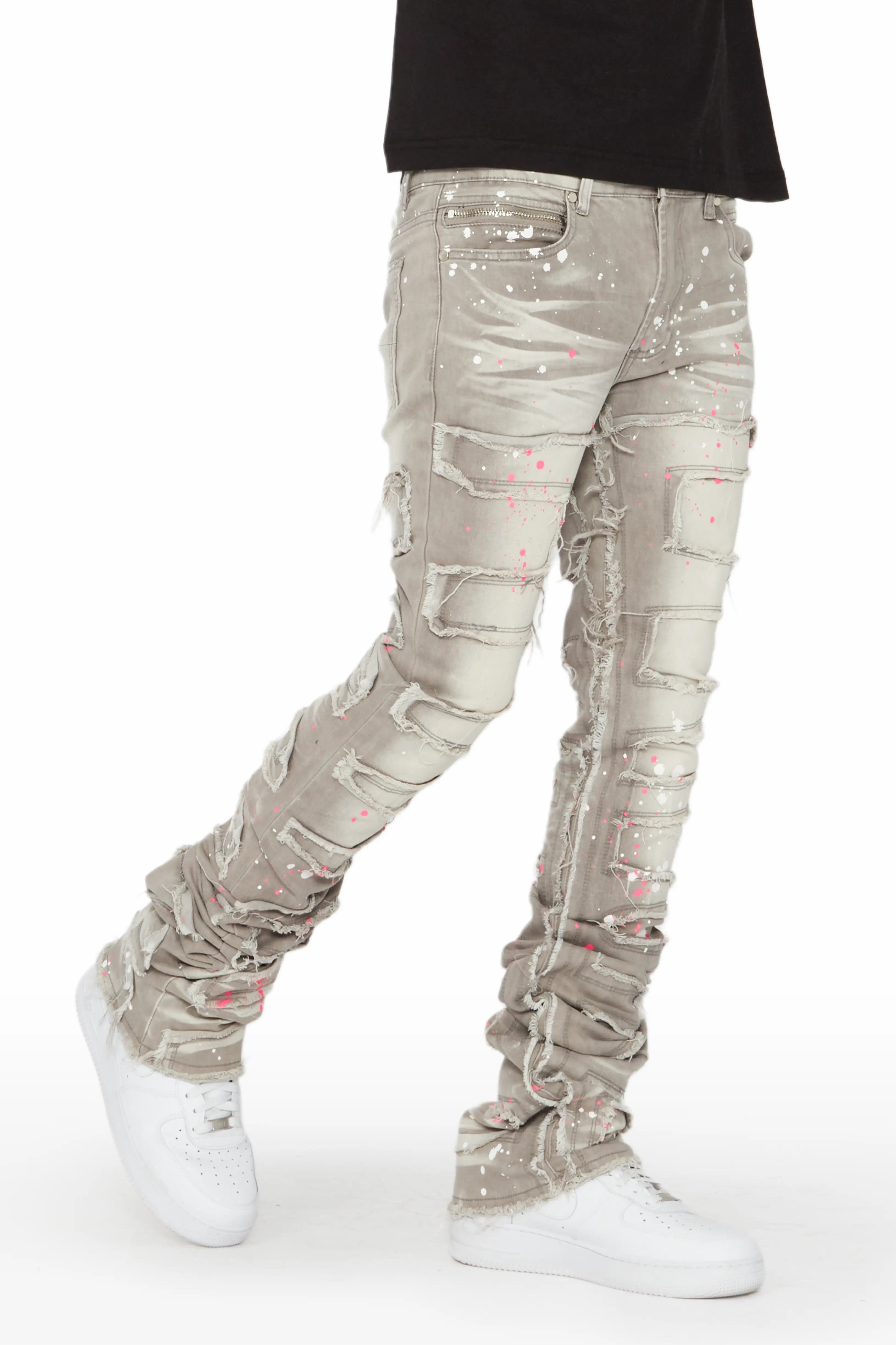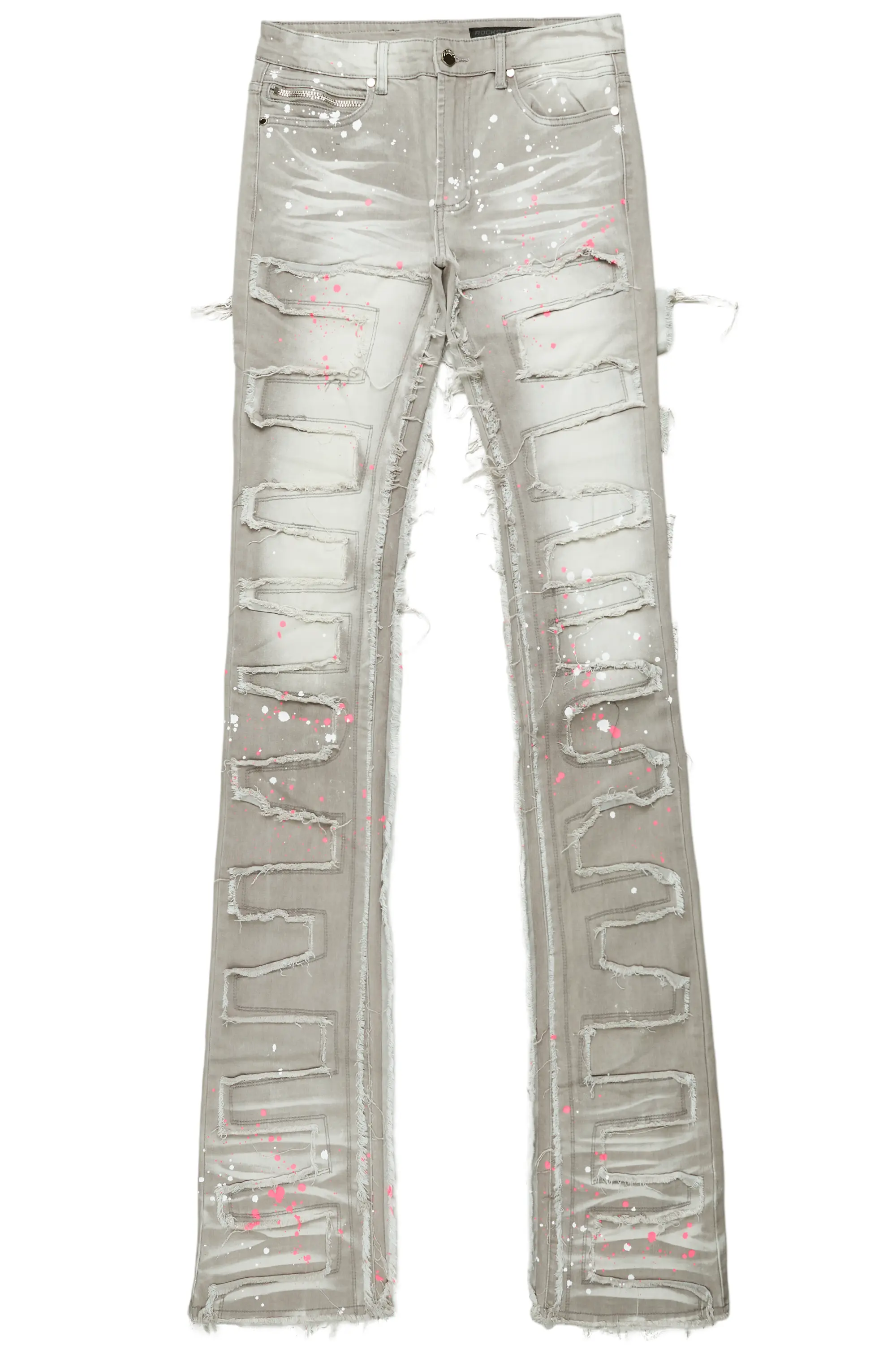 Ayan Dark Grey Distressed Stacked Flare Jeans