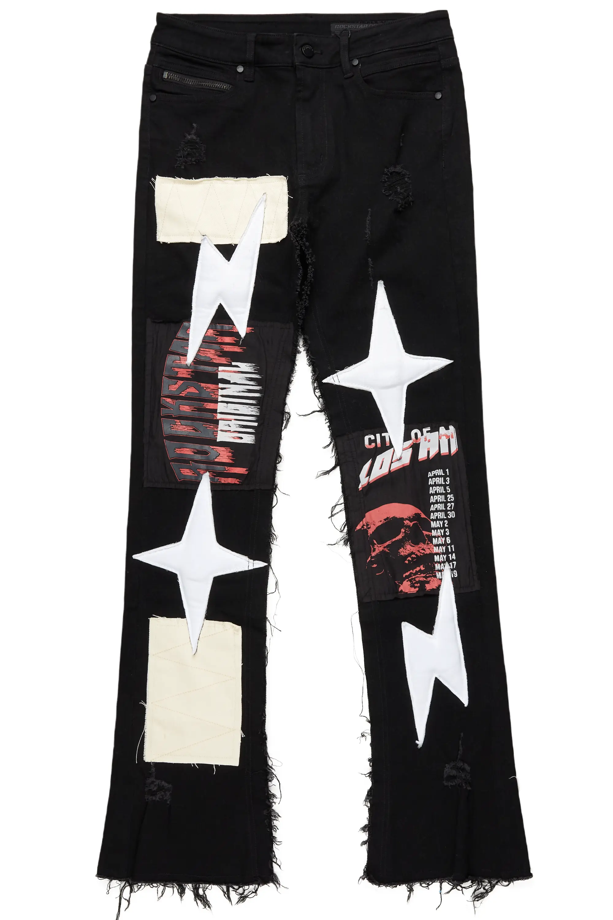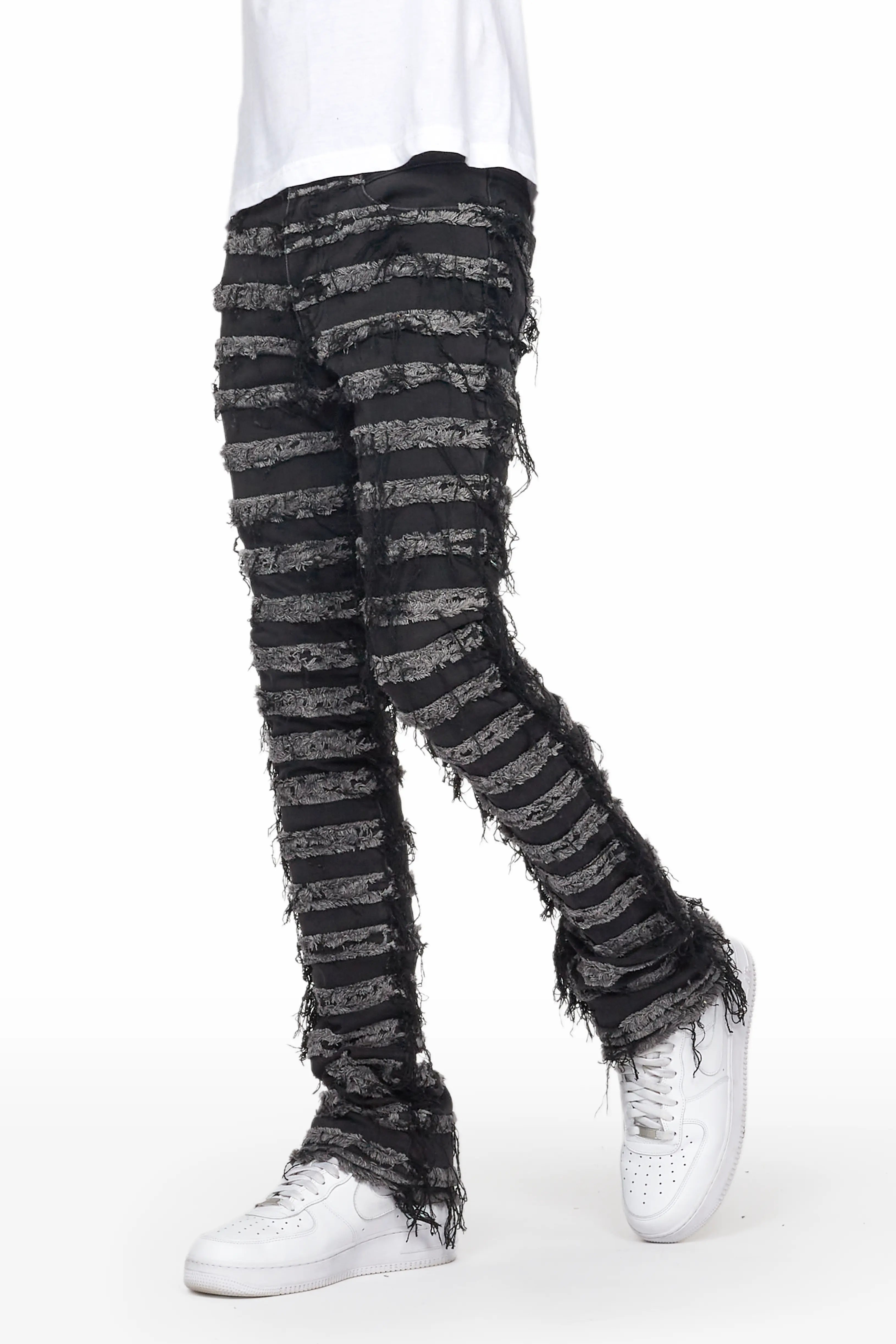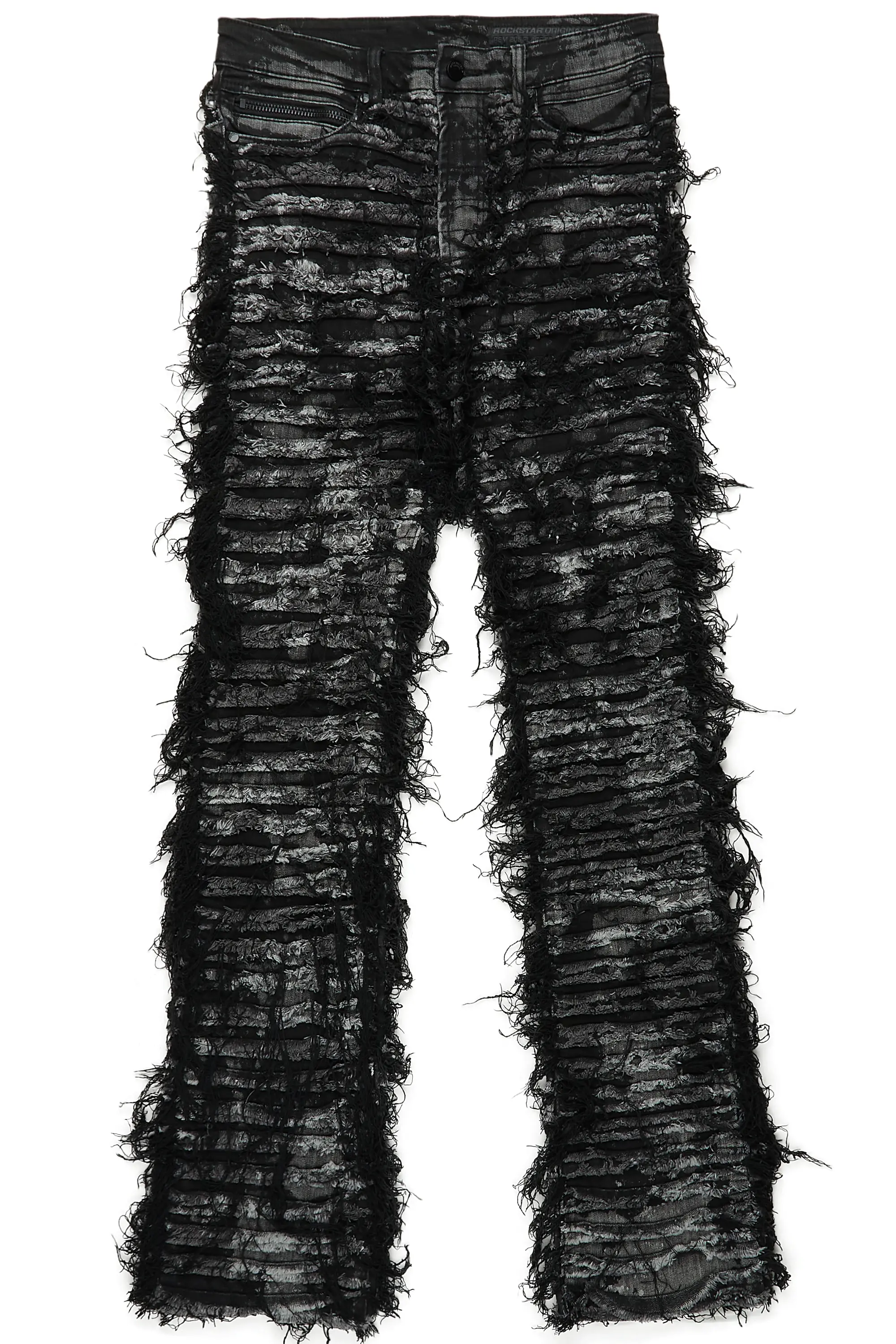 Ayan Dark Grey Distressed Stacked Flare Jeans