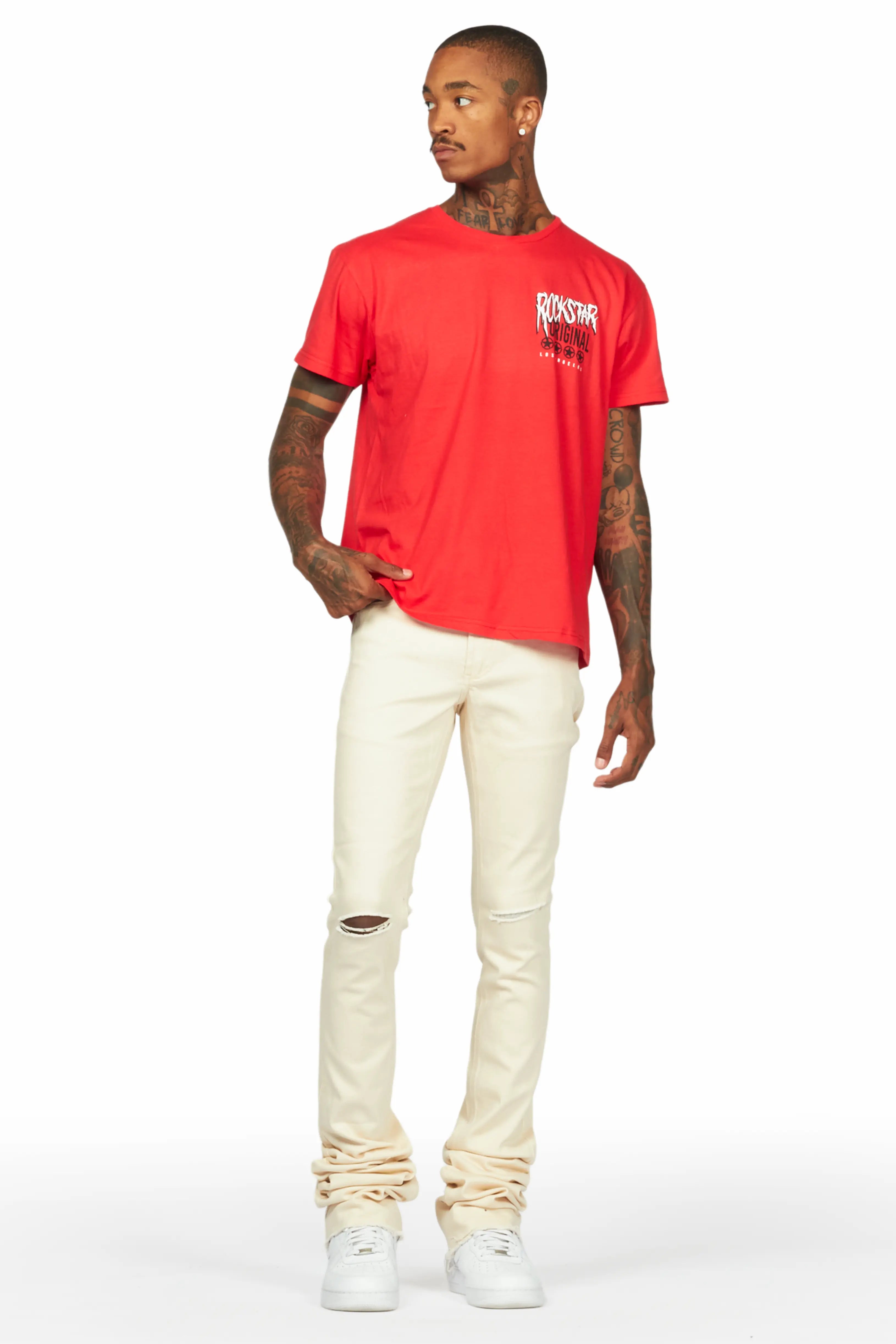 Wizzurd Red T-Shirt & Josiah Beige Super Stacked Flare Jean Bundle
