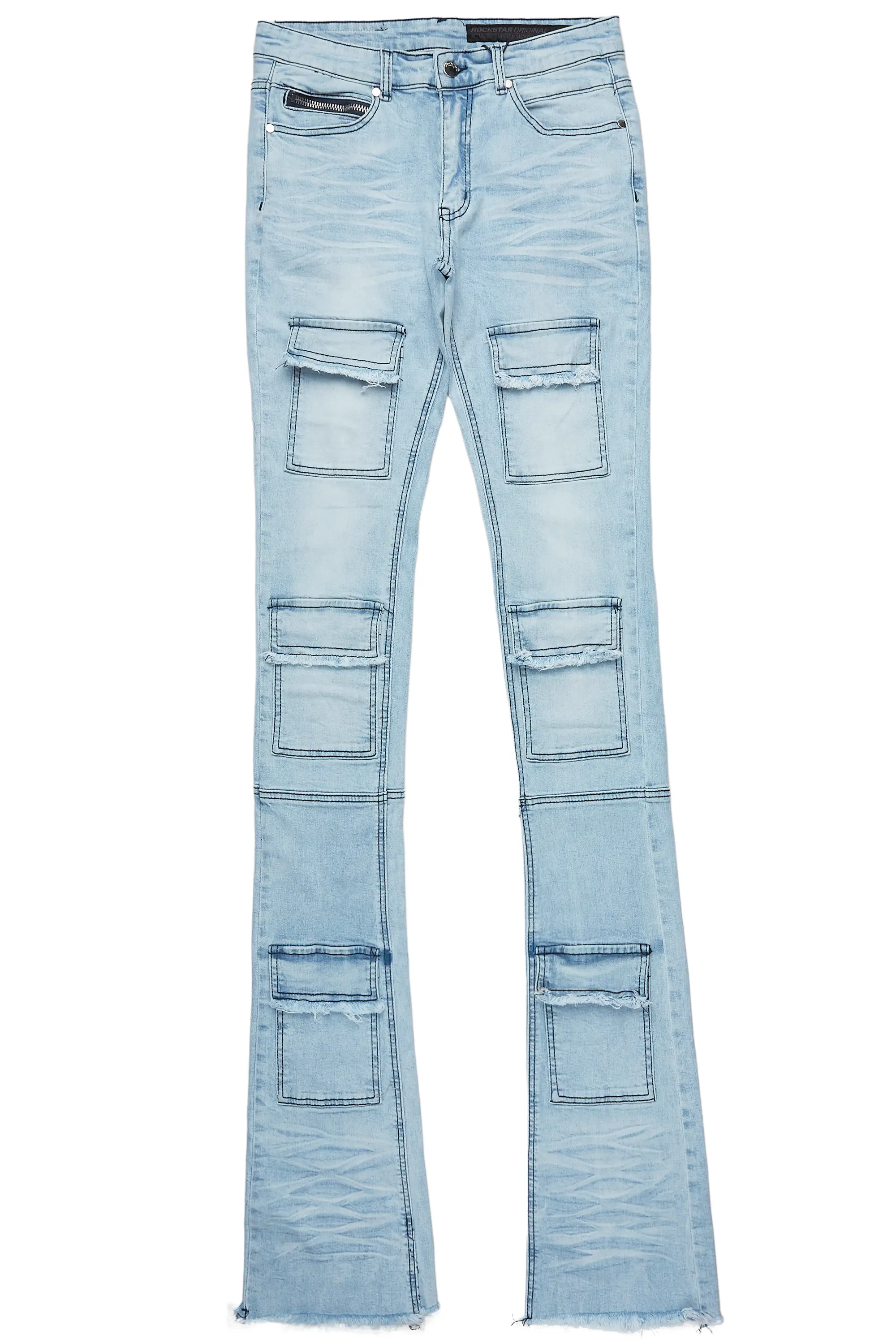 Piet Light Blue Cargo Super Stacked Flare Jean