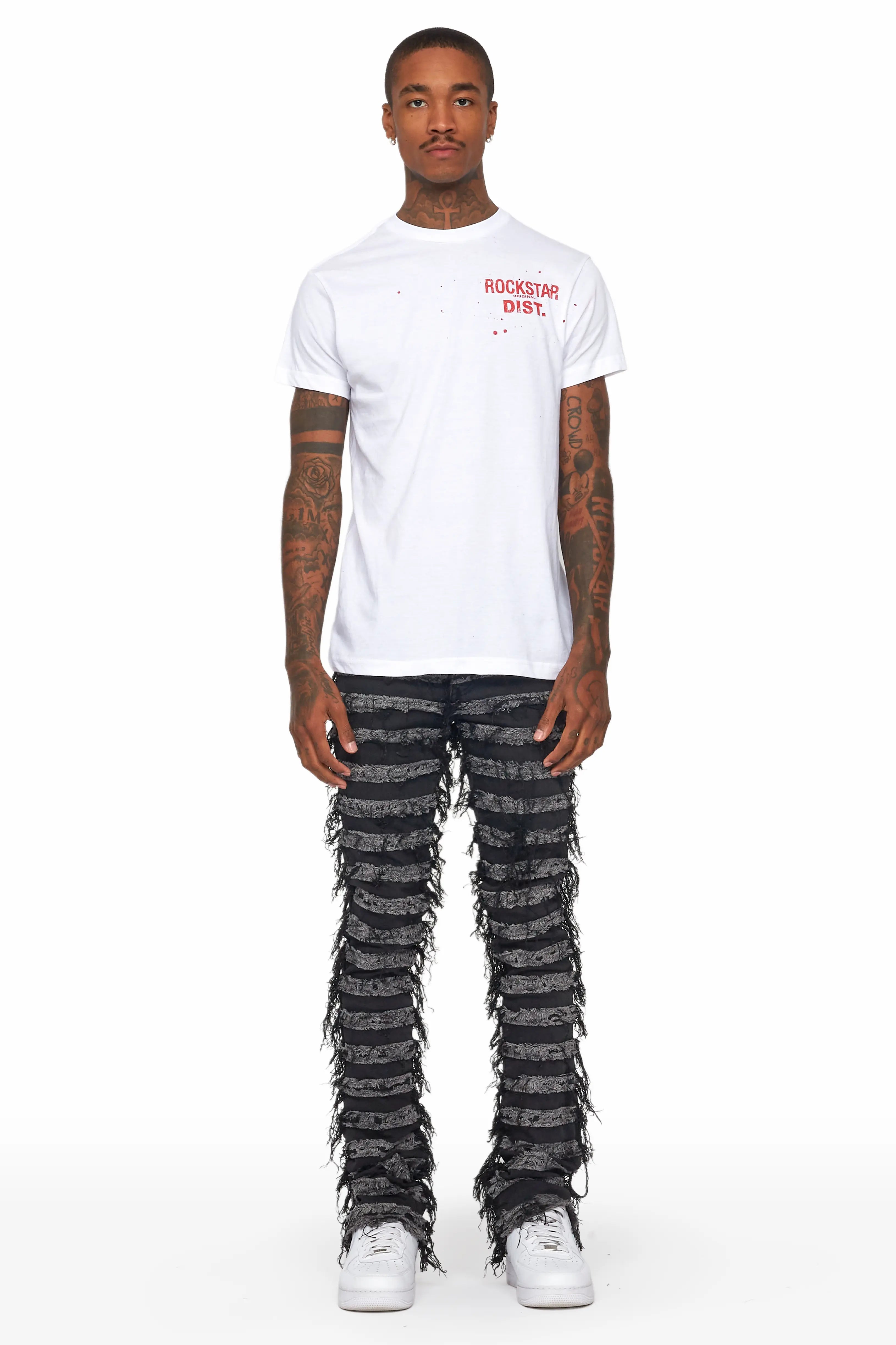 Bloke White/Blue T-Shirt/Stacked Flare Jean Set