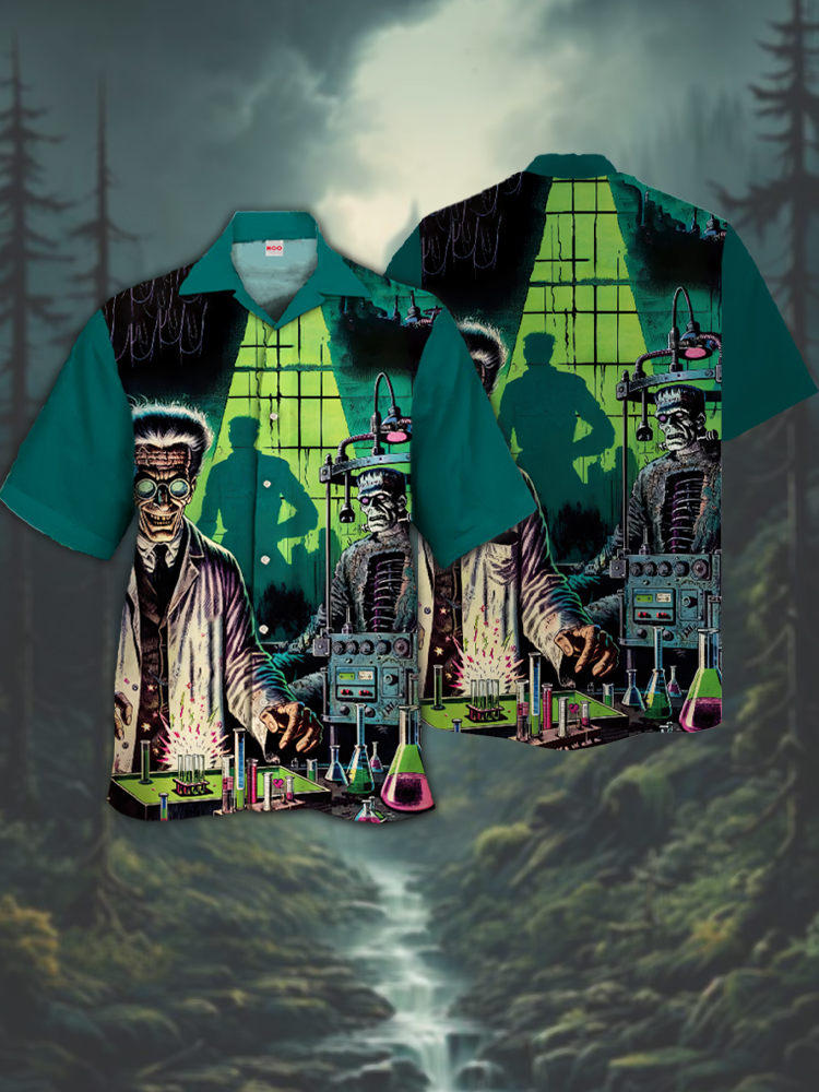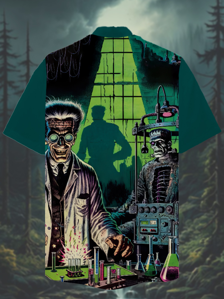 • Eye-Catching Classic Horror Character Experimental Madman Printing Cuban Collar Hawaiian Short Sleeve Shirt
