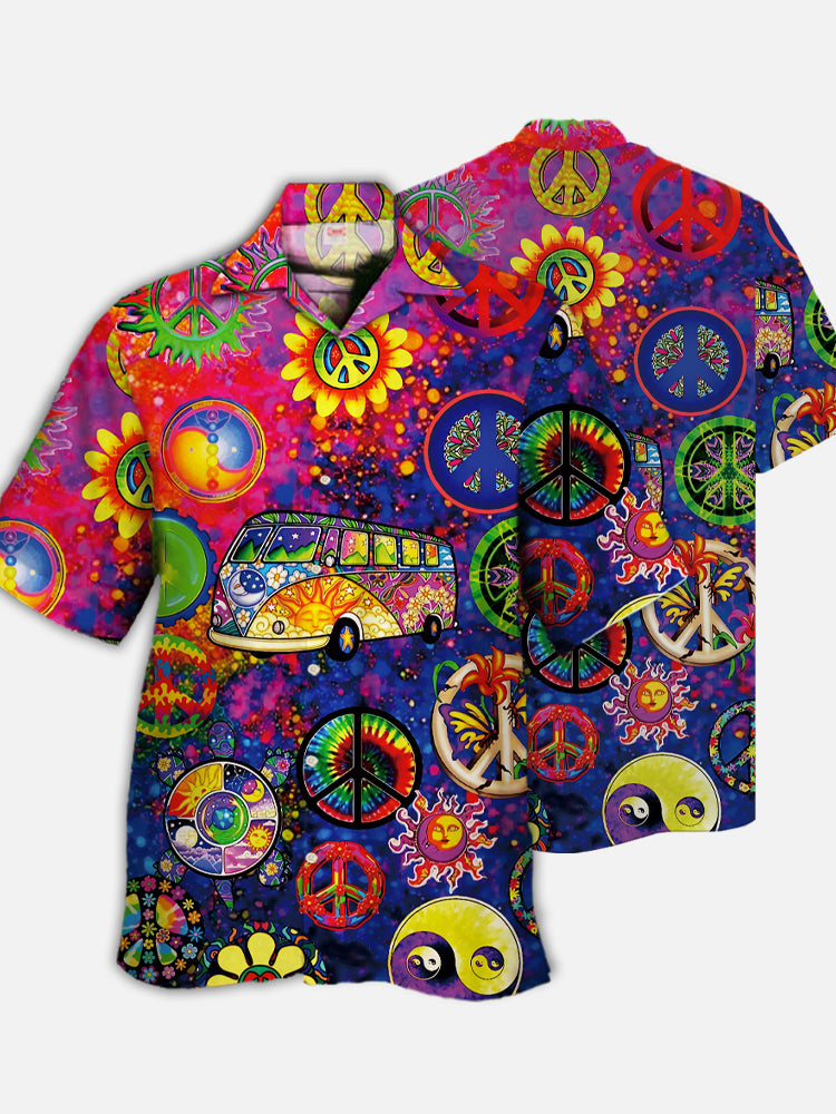 • Eye-Catching Amazing Style Hippie Bus Hawaiian Cuban Collar Short Sleeve Shirt