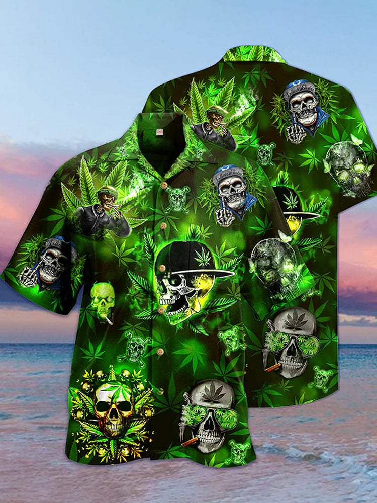 • Eye-Catching Psychedelic Amazing Style Hippie Skull Printing Cuban Collar Hawaiian Short Sleeve Shirt