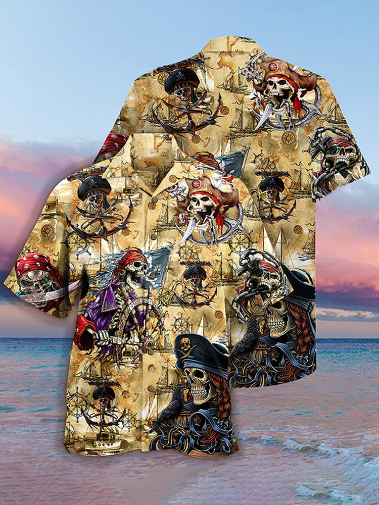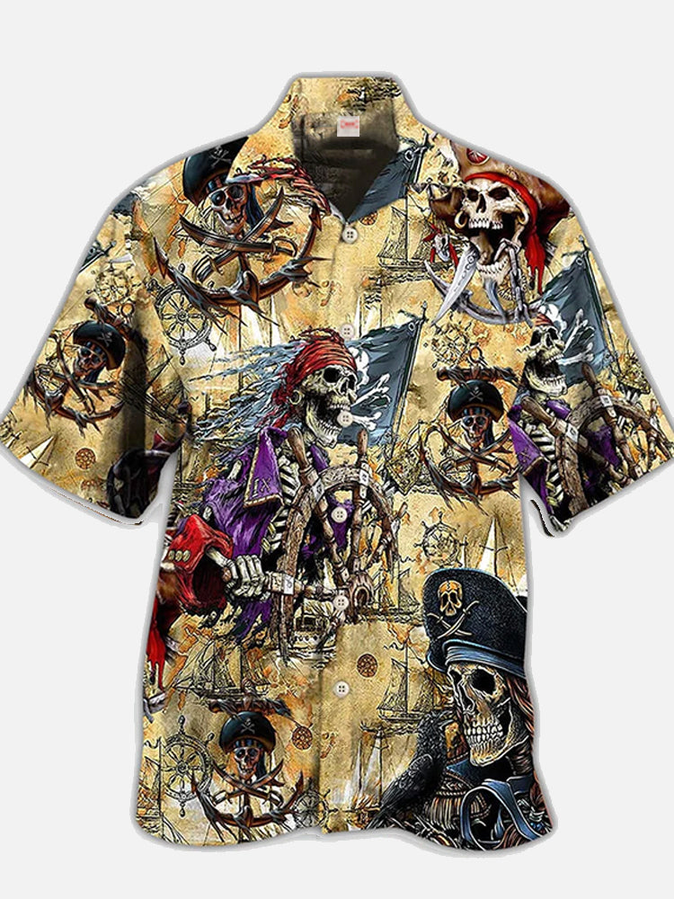 • Eye-Catching Amazing Style Ghost Pirate Printing Cuban Collar Hawaiian Short Sleeve Shirt