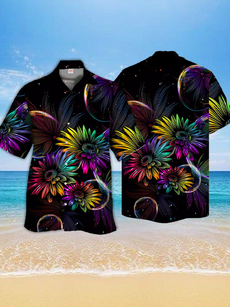 • Eye-Catching Psychedelic Rainbow Flower Of Night Printing Cuban Collar Hawaiian Short Sleeve Shirt