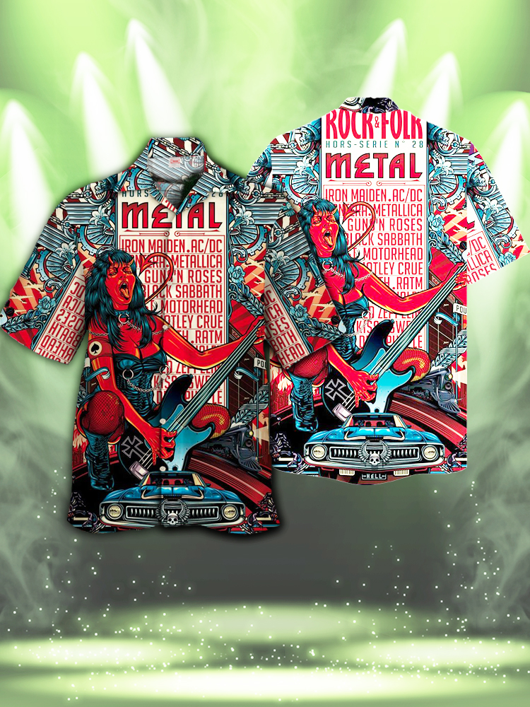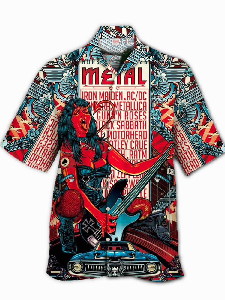 • Eye-Catching Green Rock Folk Printing Cuban Collar Hawaiian Short Sleeve Shirt