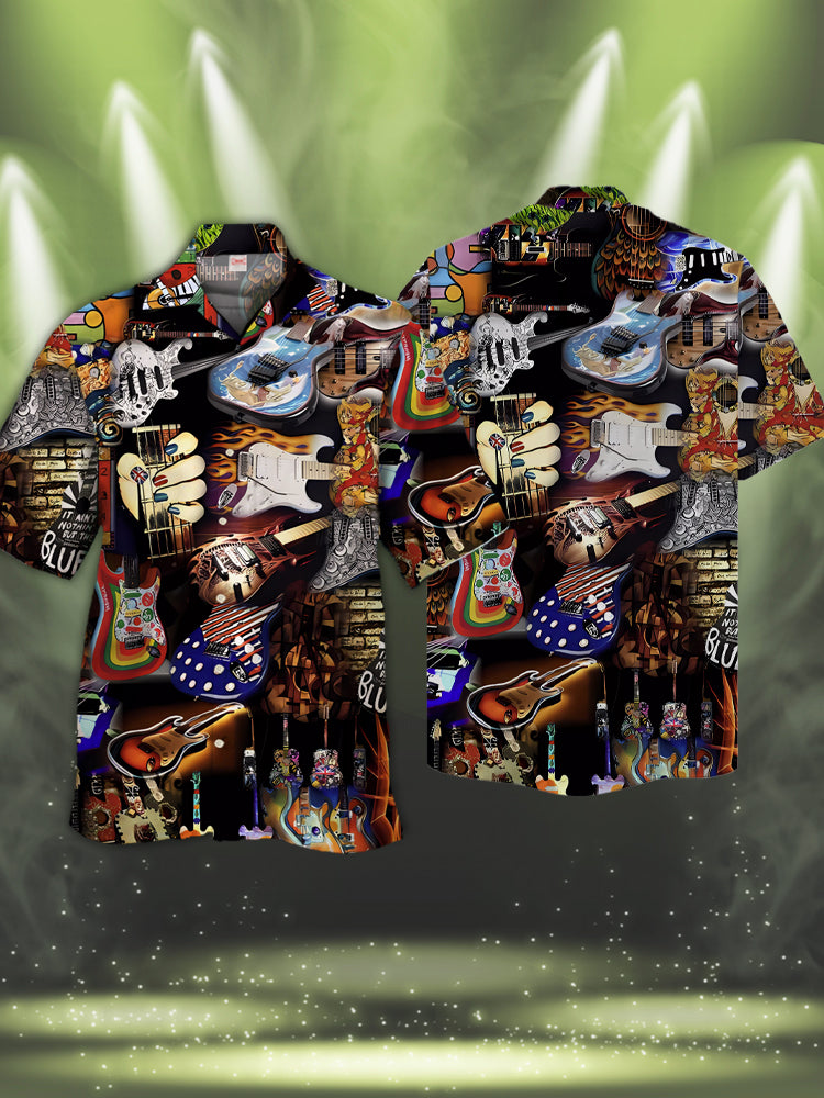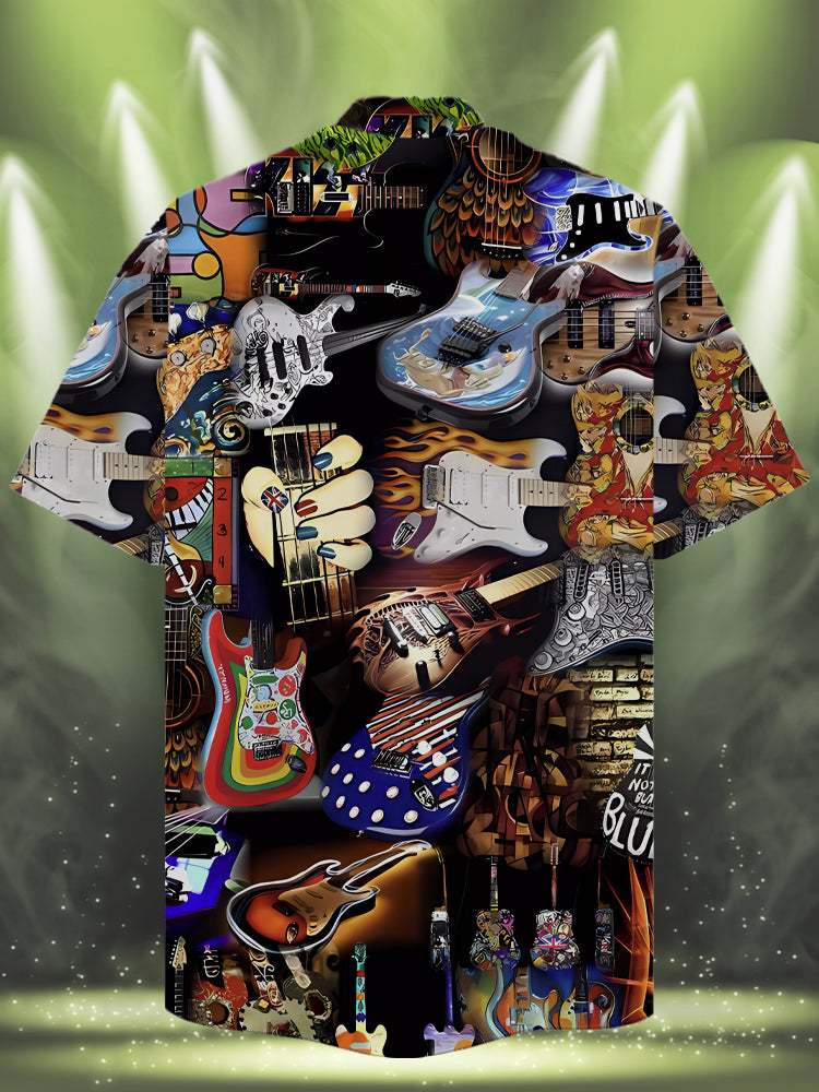 • Eye-Catching Music Enthusiast Guitar Collection Printing Cuban Collar Hawaiian Short Sleeve Shirt