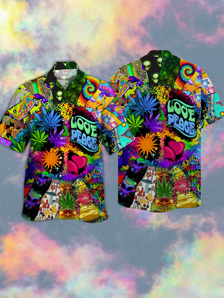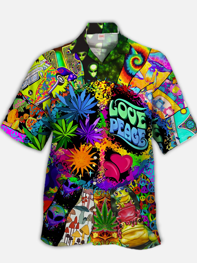 • Eye-Catching Psychedelic Neon Colorful Multi-Element Splicing Cuban Collar Hawaiian Short Sleeve Shirt