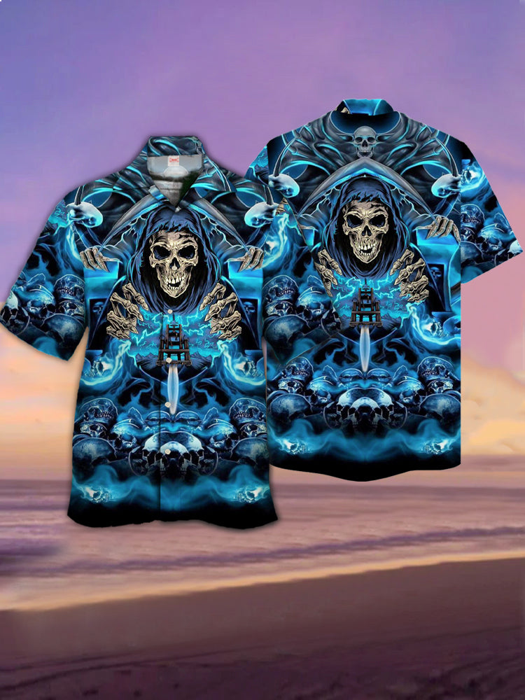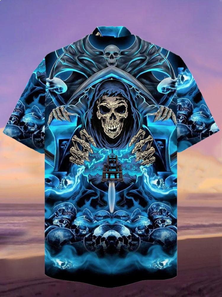 • Eye-Catching Fantasy Lightning Grim Reaper Printing Cuban Collar Hawaiian Short Sleeve Shirt