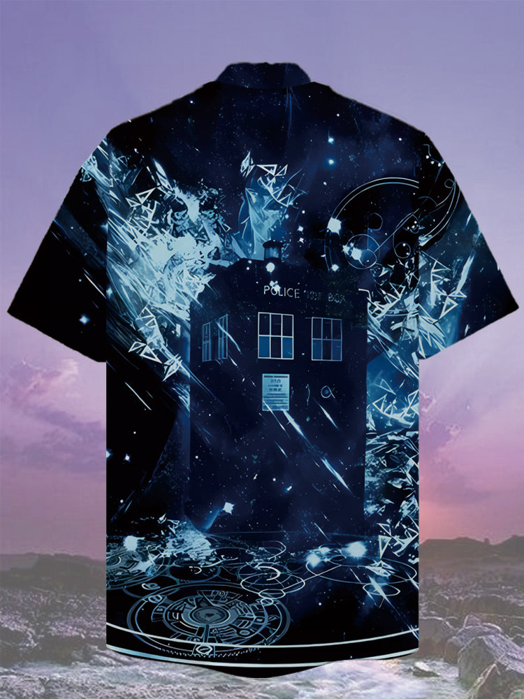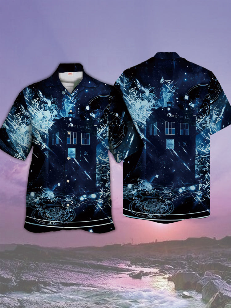 • Eye-Catching Mysterious Astrolabe And Time Travel Box Printing Cuban Collar Hawaiian Short Sleeve Shirt
