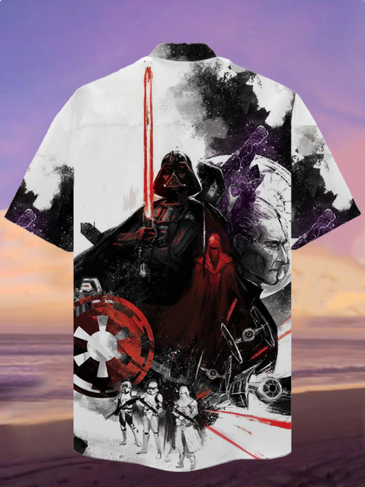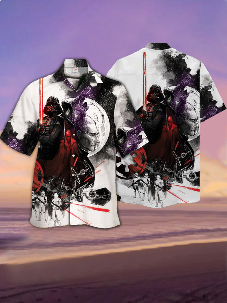 • Eye-Catching Shocking Space Warrior Partner Printing Cuban Collar Hawaiian Short Sleeve Shirt