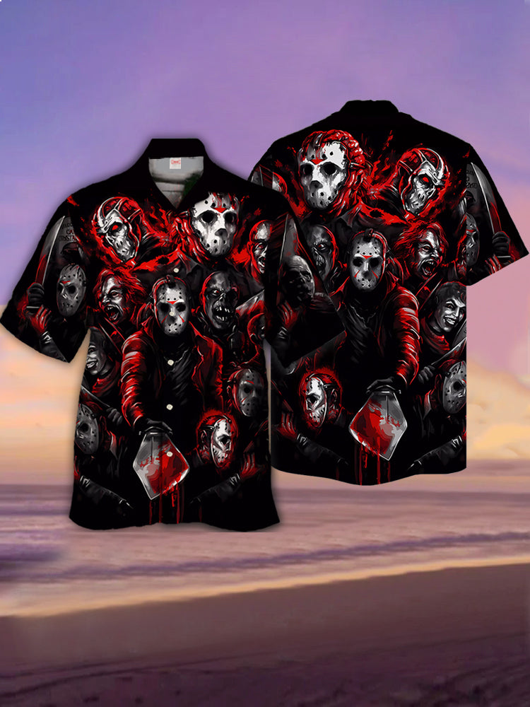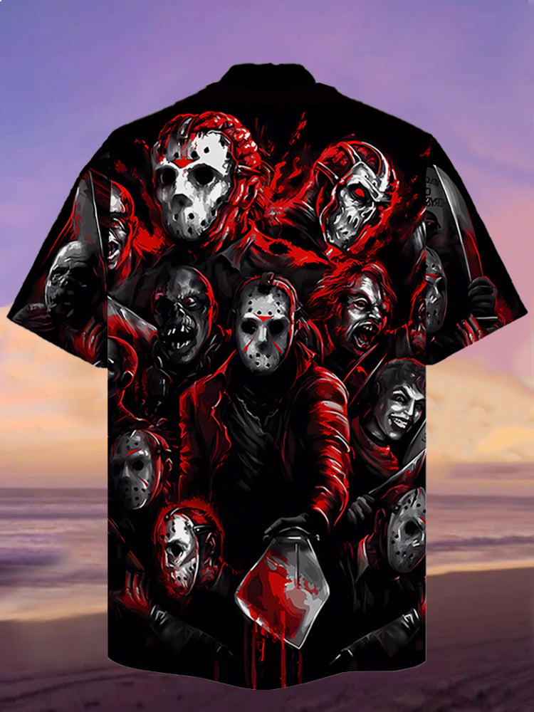 • Eye-Catching Halloween Horror Movie Characters Blood Scary Night Printing Cuban Collar Hawaiian Short Sleeve Shirt