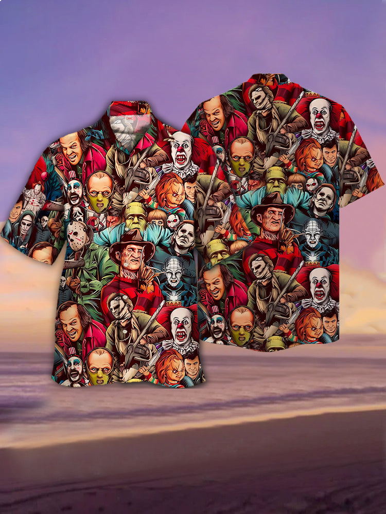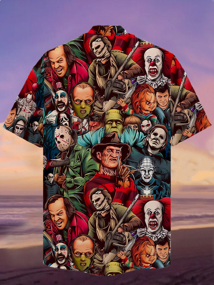 Eye-Catching Horror Halloween Movie Characters Printing Cuban Collar Hawaiian Short Sleeve Shirt