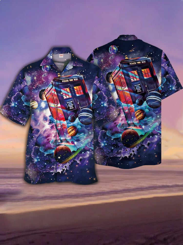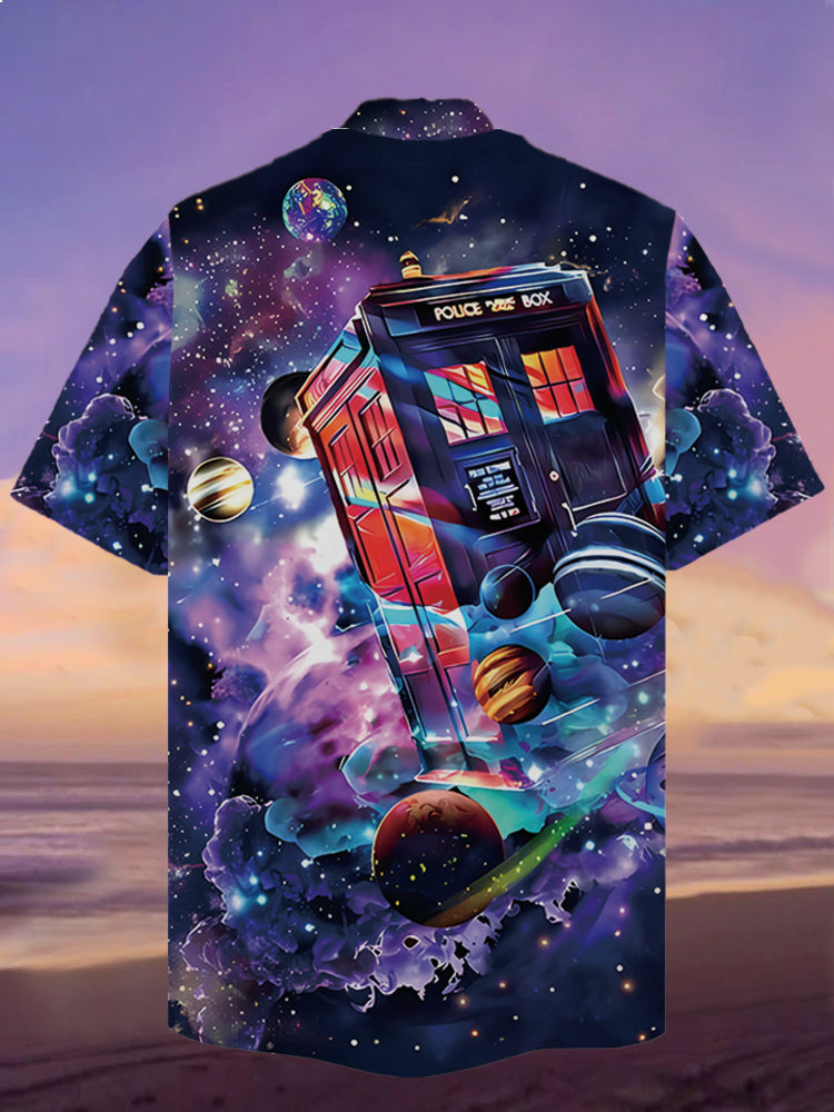 • Eye-Catching Fantasy Purple Space Galaxy Planets And Time Travel Box Printing Cuban Collar Hawaiian Short Sleeve Shirt