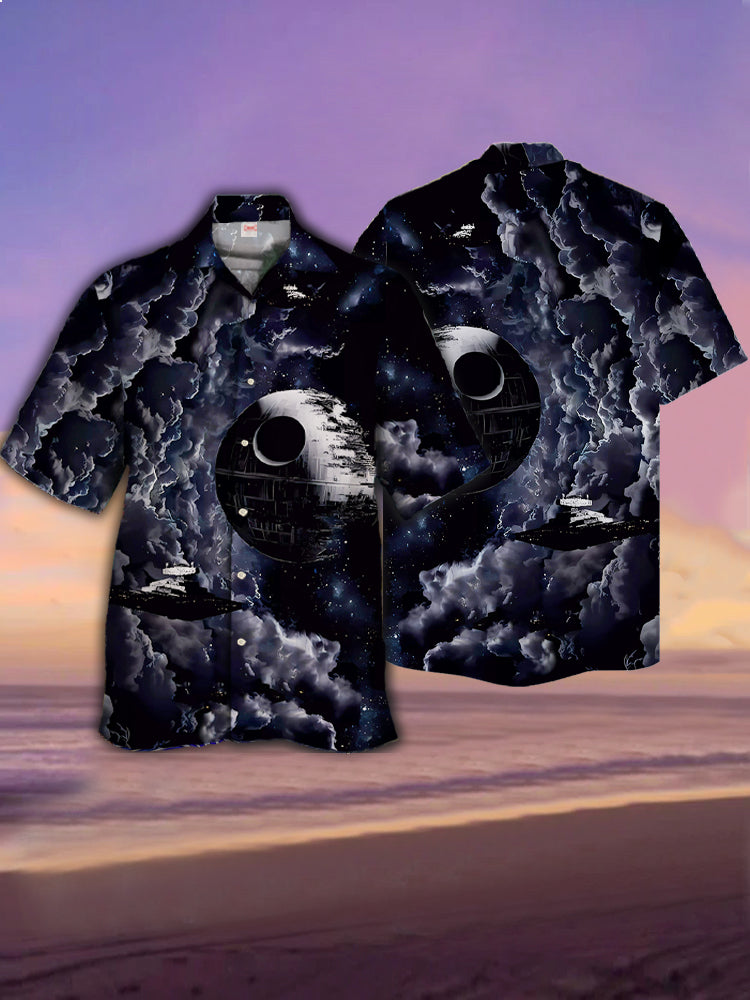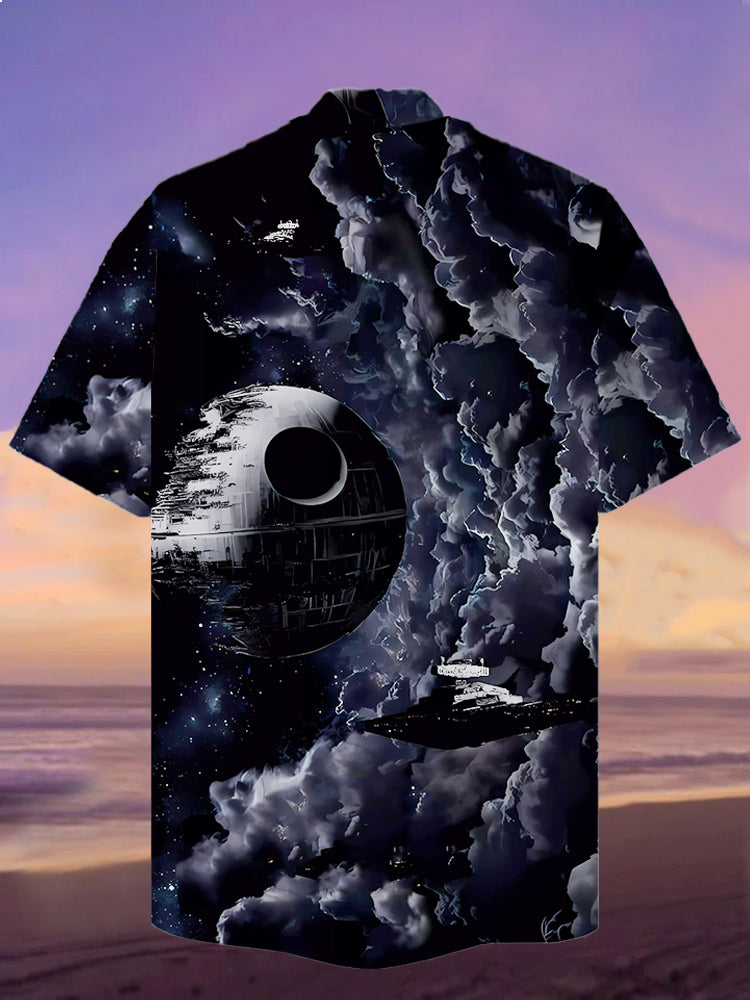 • Eye-Catching Fashionable Sci-Fi Nebula And Mysterious Planet Printing Cuban Collar Hawaiian Short Sleeve Shirt