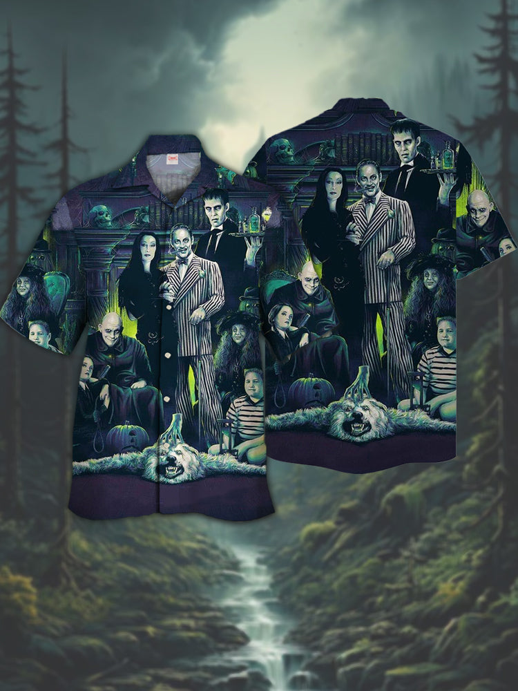 Eye-Catching Thriller Style Horror Characters Family Photo Printing Cuban Collar Hawaiian Short Sleeve Shirt