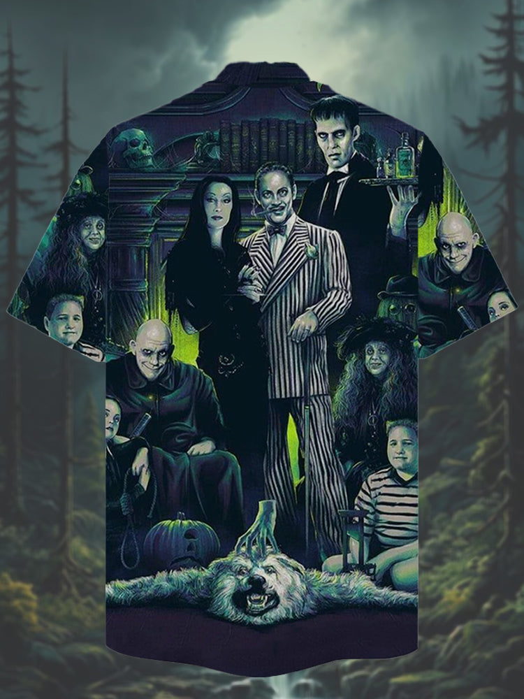 • Eye-Catching Thriller Style Horror Characters Family Photo Printing Cuban Collar Hawaiian Short Sleeve Shirt
