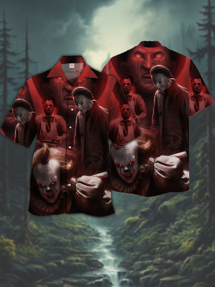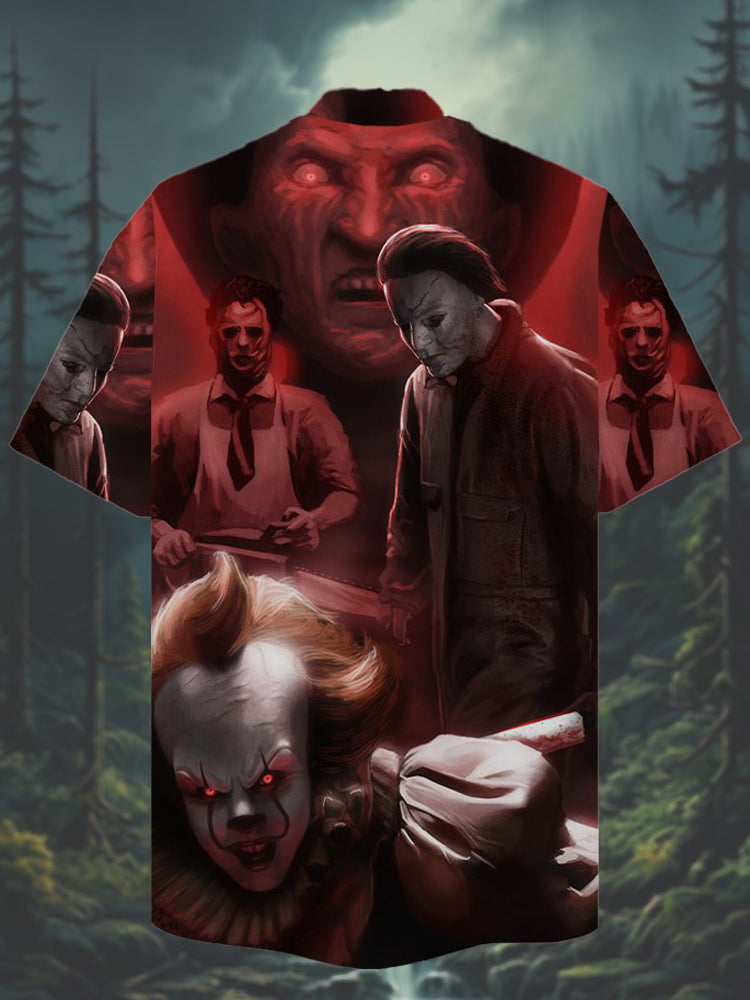 • Eye-Catching Red Horror Villain Party Printing Cuban Collar Hawaiian Short Sleeve Shirt