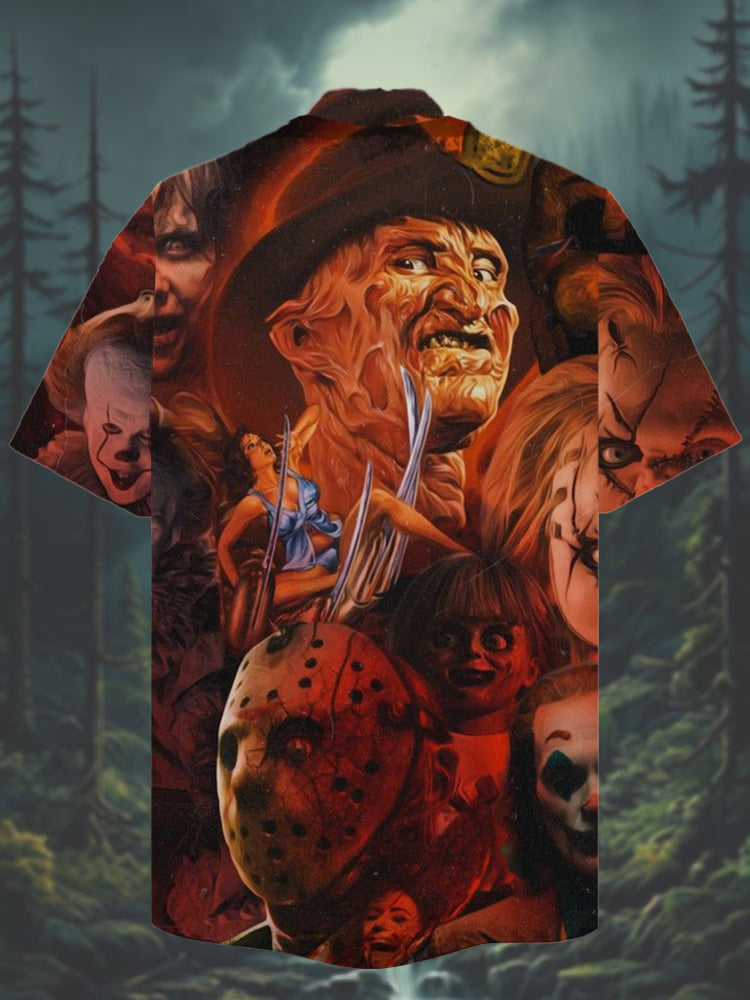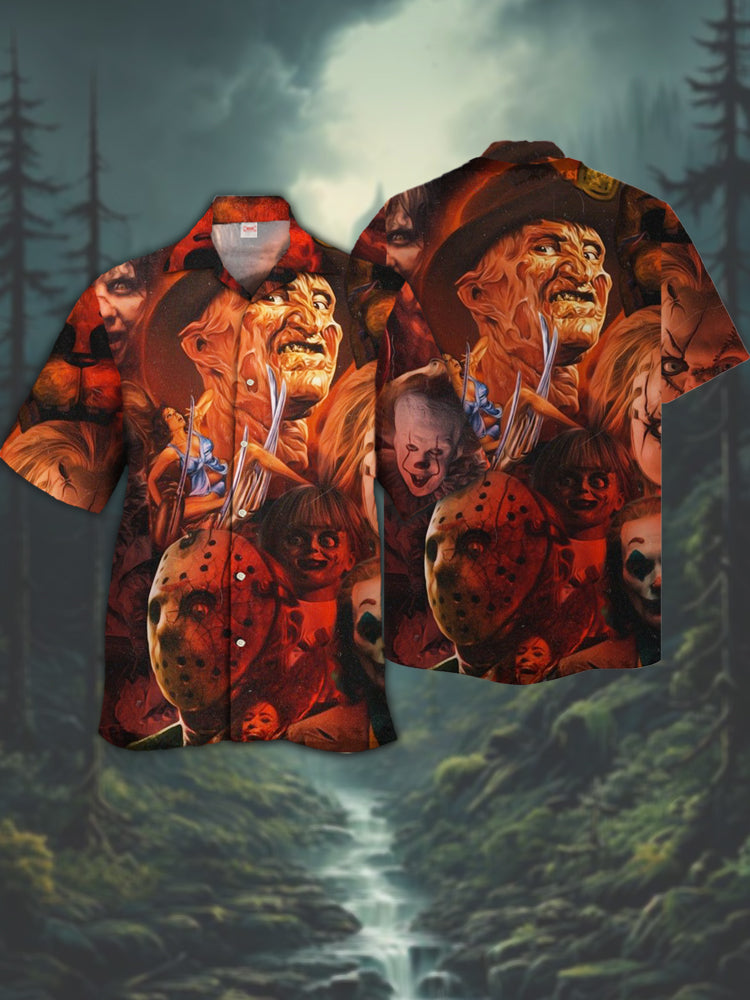 • Eye-Catching Stunning Style Surprised Horror Characters Printing Cuban Collar Hawaiian Short Sleeve Shirt