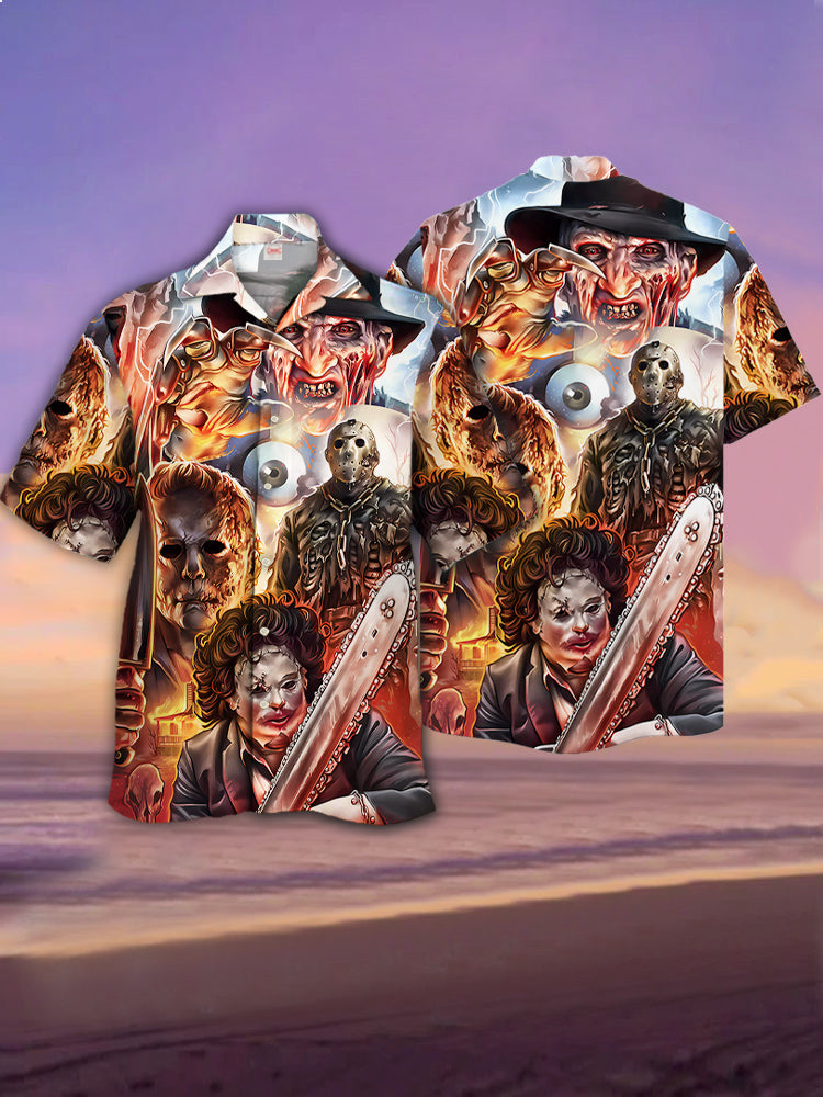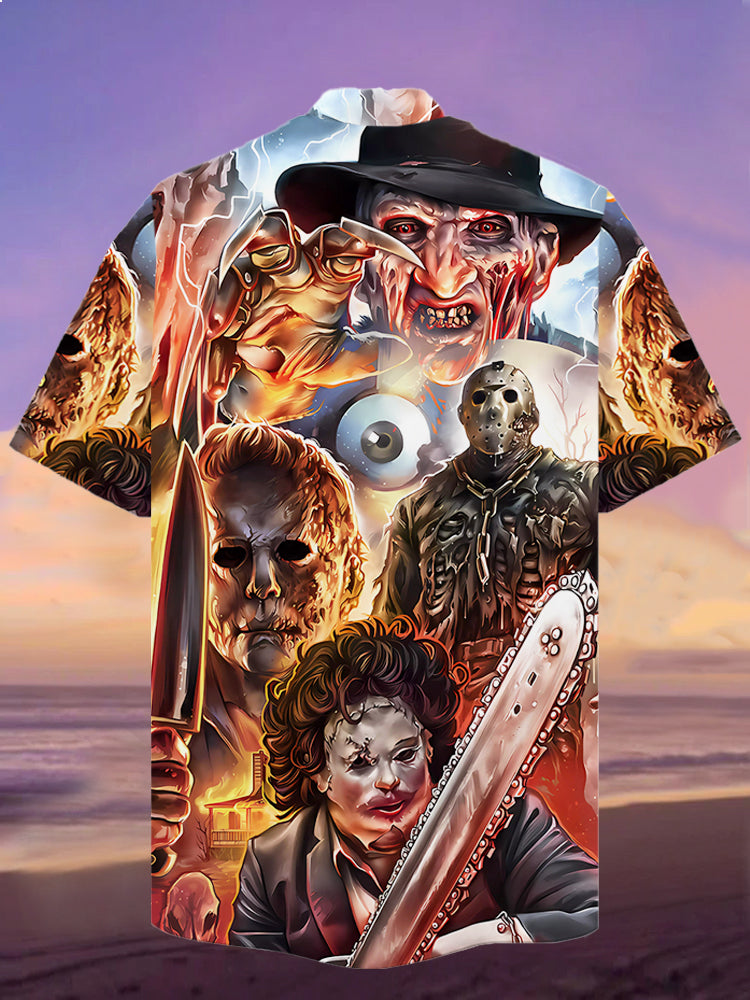 • Eye-Catching Stunning Style Horror Characters Killer Printing Cuban Collar Hawaiian Short Sleeve Shirt